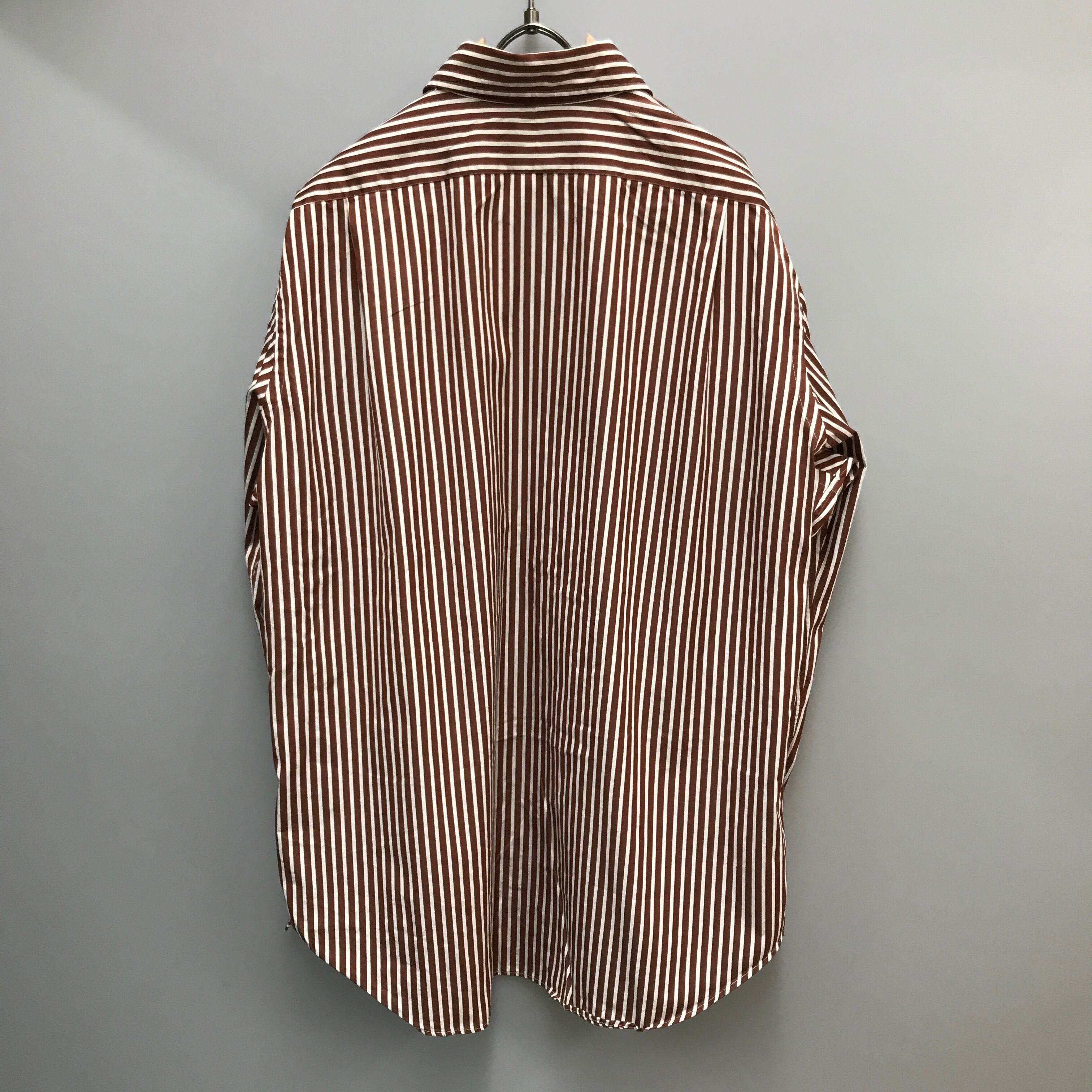 90年代 ラルフローレン Ralph Lauren SHIRTS CLASSIC FIT コットン長袖 ワンポイント ロゴ 刺繍 旧タグ US-M サイズ ブラウン ストライプ
