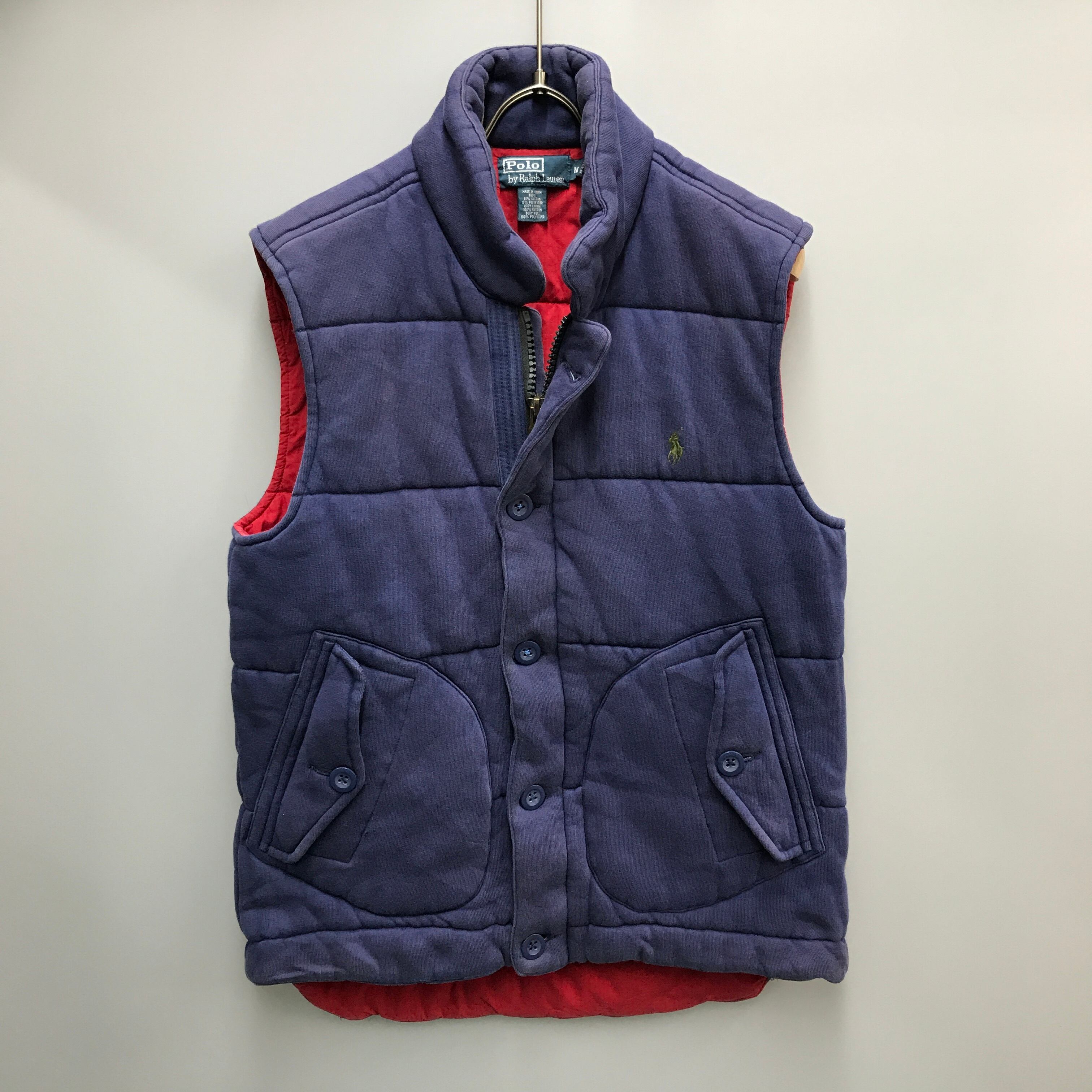 "80〜90年代 POLO by RALPH LAURENポロ ラルフローレン スウェット 中綿 ベスト M ワンポイント ポニー 刺繍 ネイビー"
