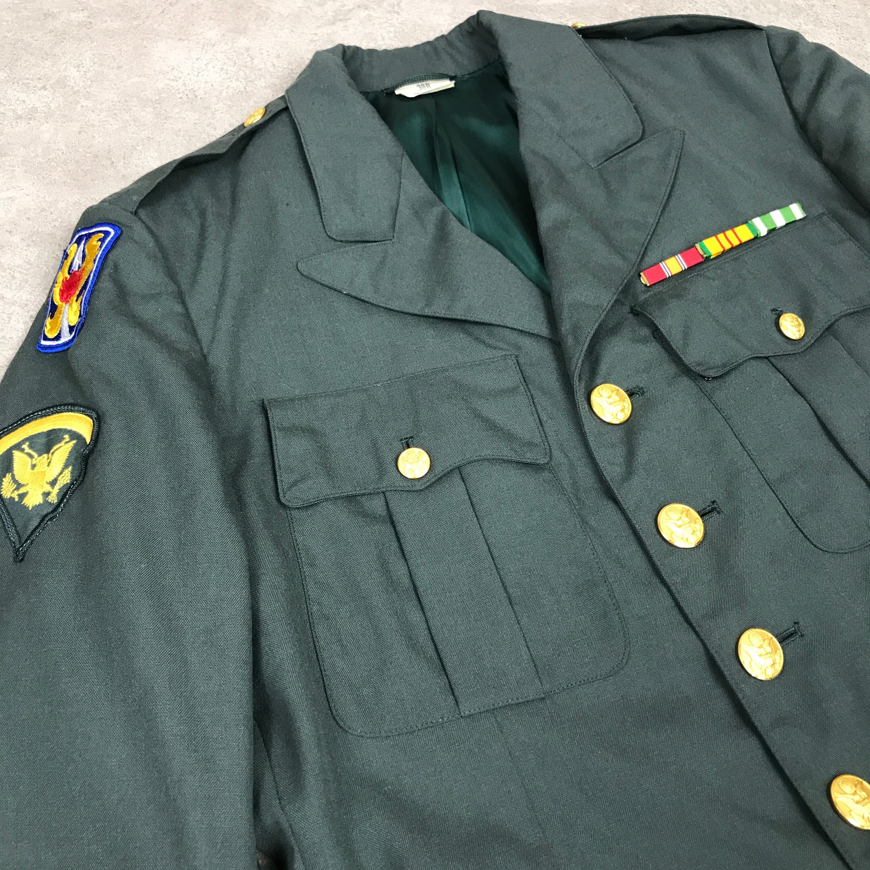60年代 ヴィンテージ U.S.ARMY オフィサージャケット 米陸軍 ベトナム戦争 ユニフォーム 制服 金ボタン モスグリーン AG-344 CLASS 3 DSA 100 67 C size 36R