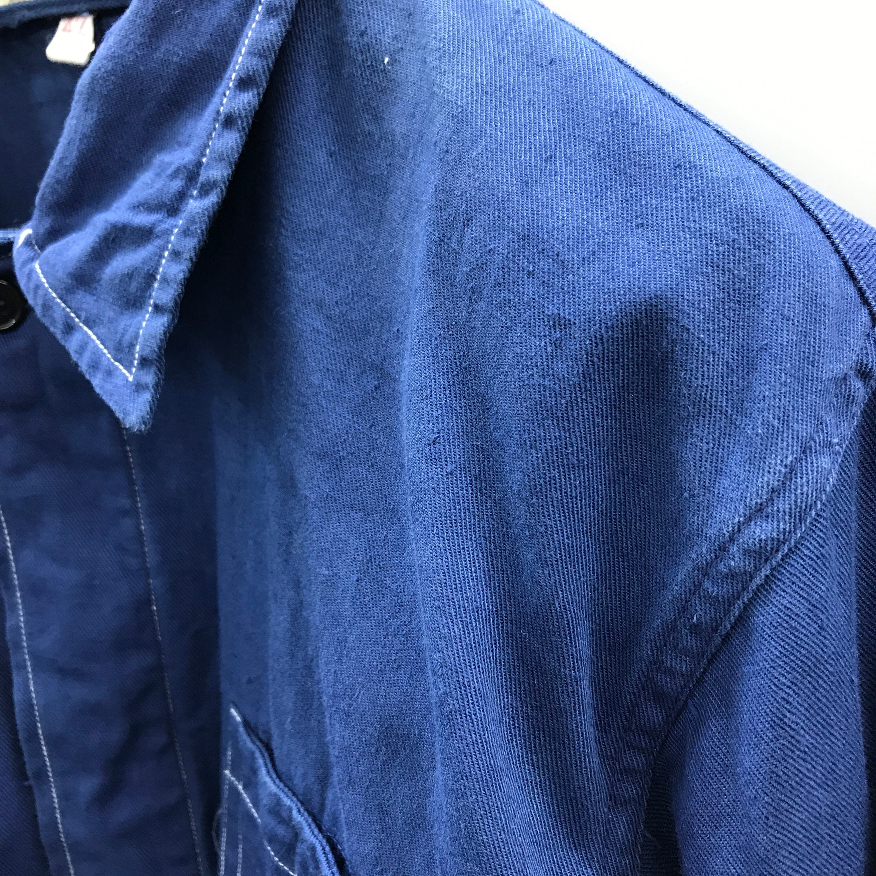 70年代ごろのベトナム製フレンチワークジャケットで。フレンチチャイナワークジャケットよりチョイ古だと思います。企業プリントは入ったものは希少です。
