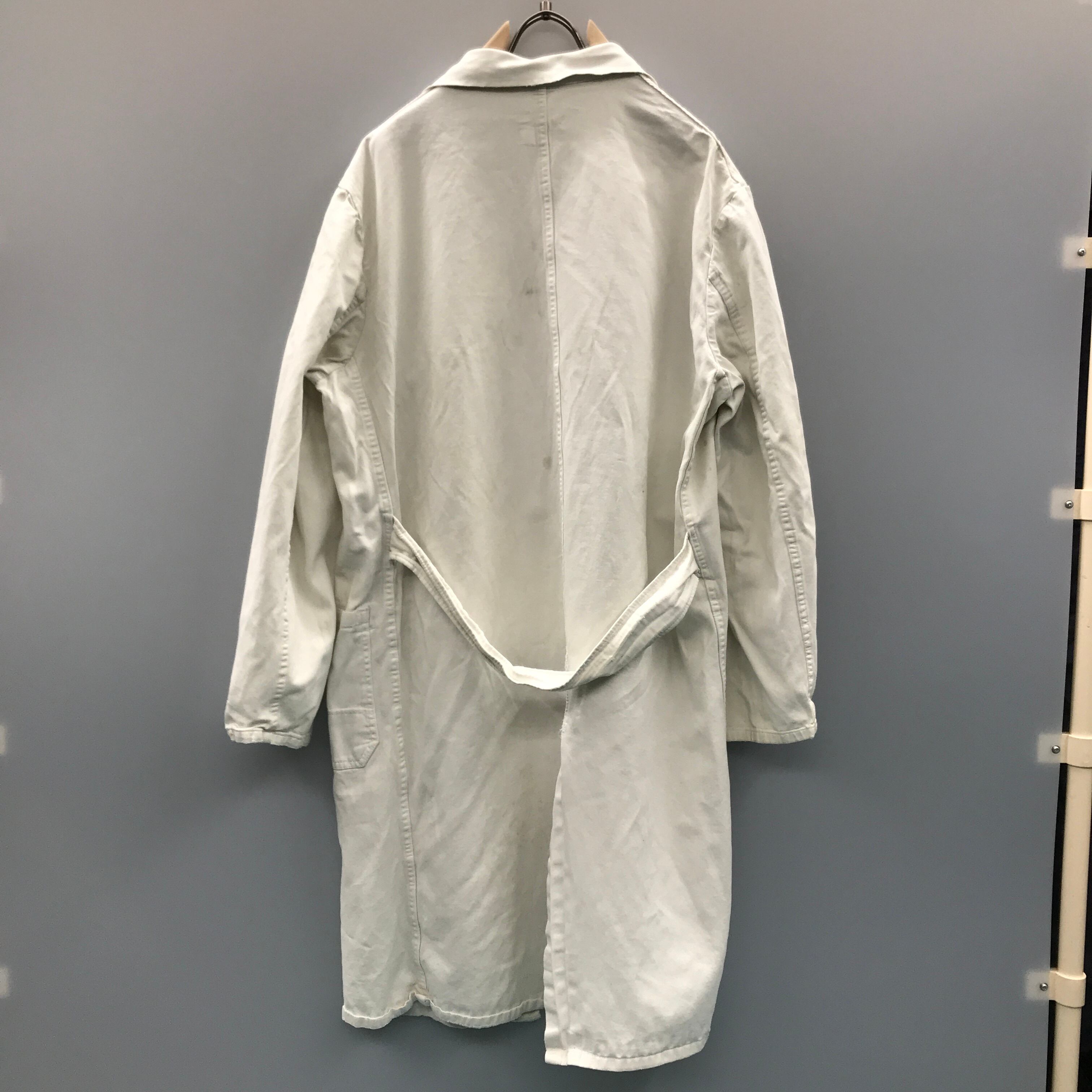 古き良き時代のヨーロッパのメディカルコートです。ポケットがワークジャケットの様で雰囲気がいいです。ボタン欠品、汚れ多、キズ多です。