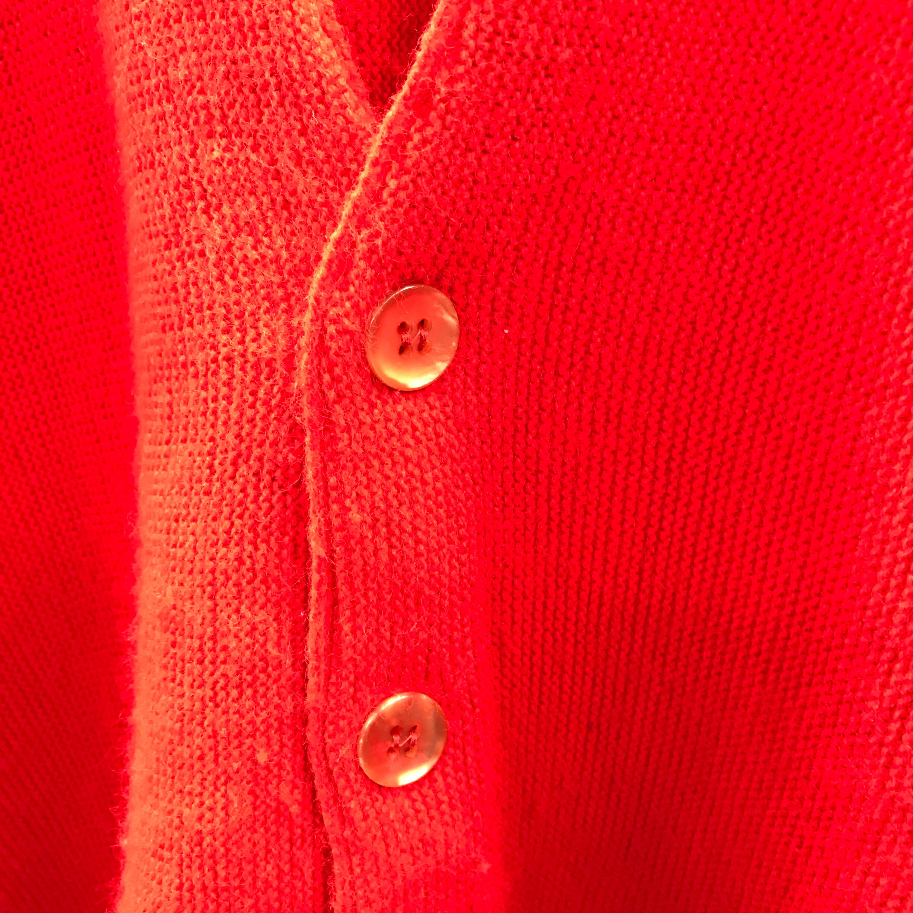 70年代のアクリルカーディガンです。発色の良い赤がかわいいです。毛羽立ち、毛玉あります。