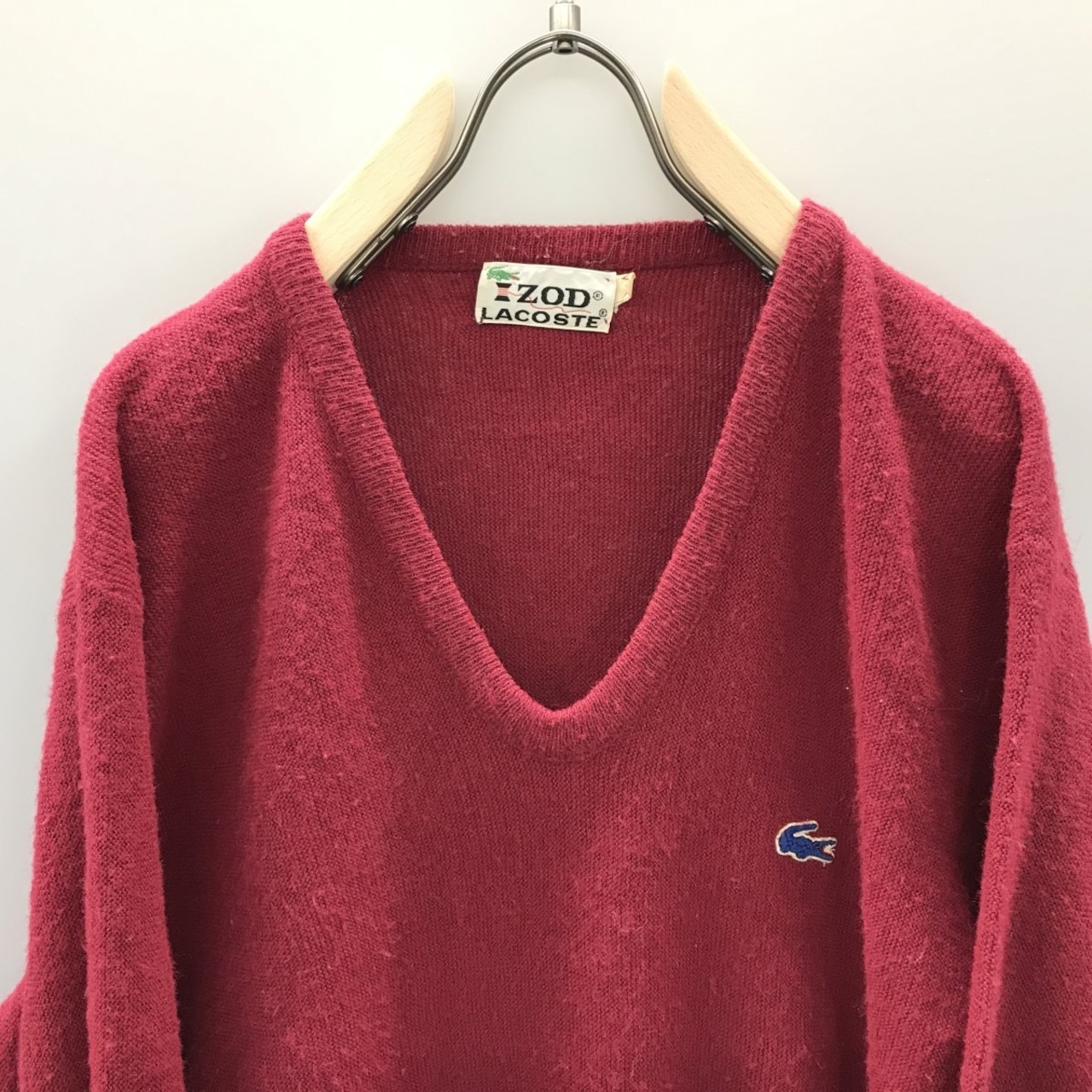 70年代 IZOD ラコステ 糸巻タグ バーガンディーカーディガン えんじ