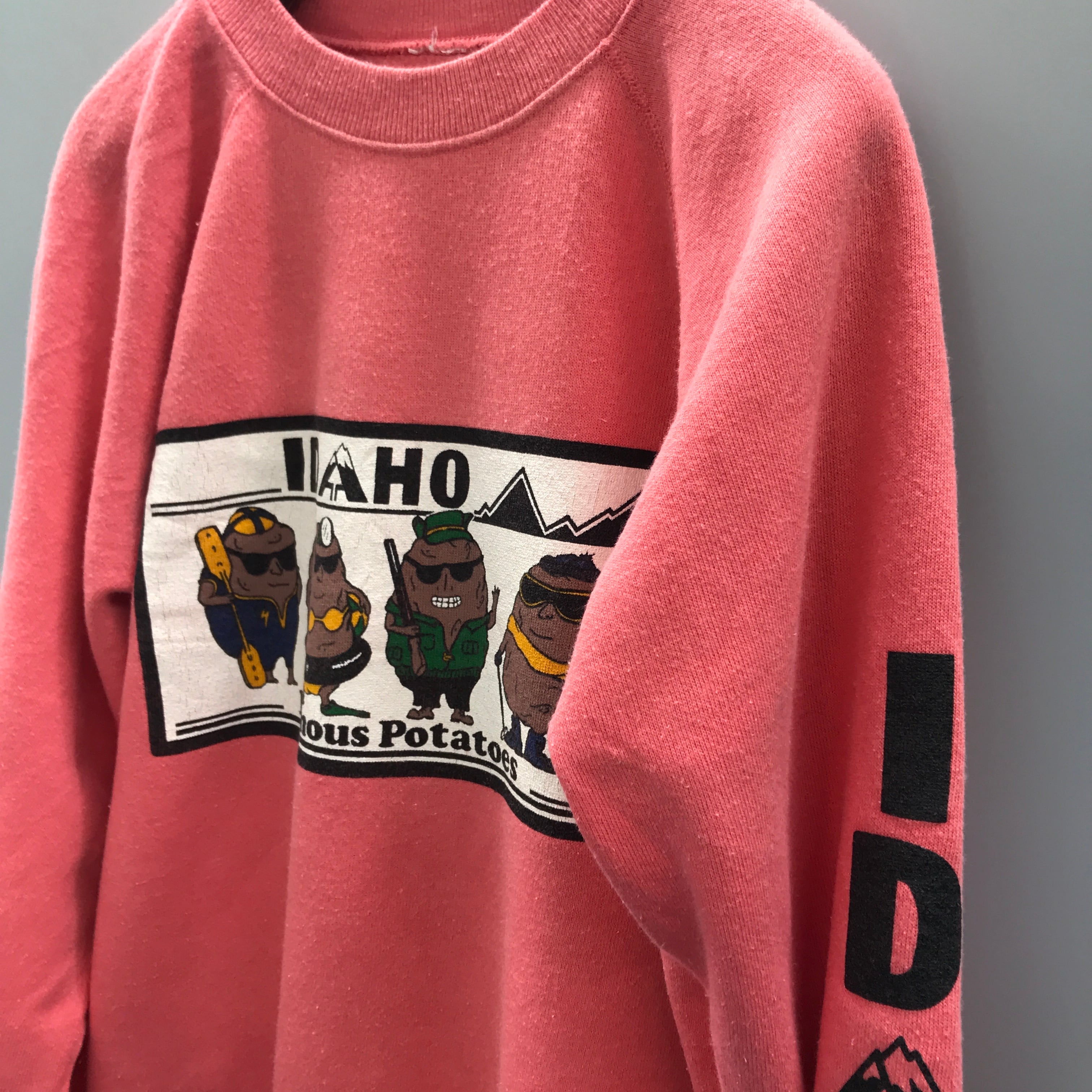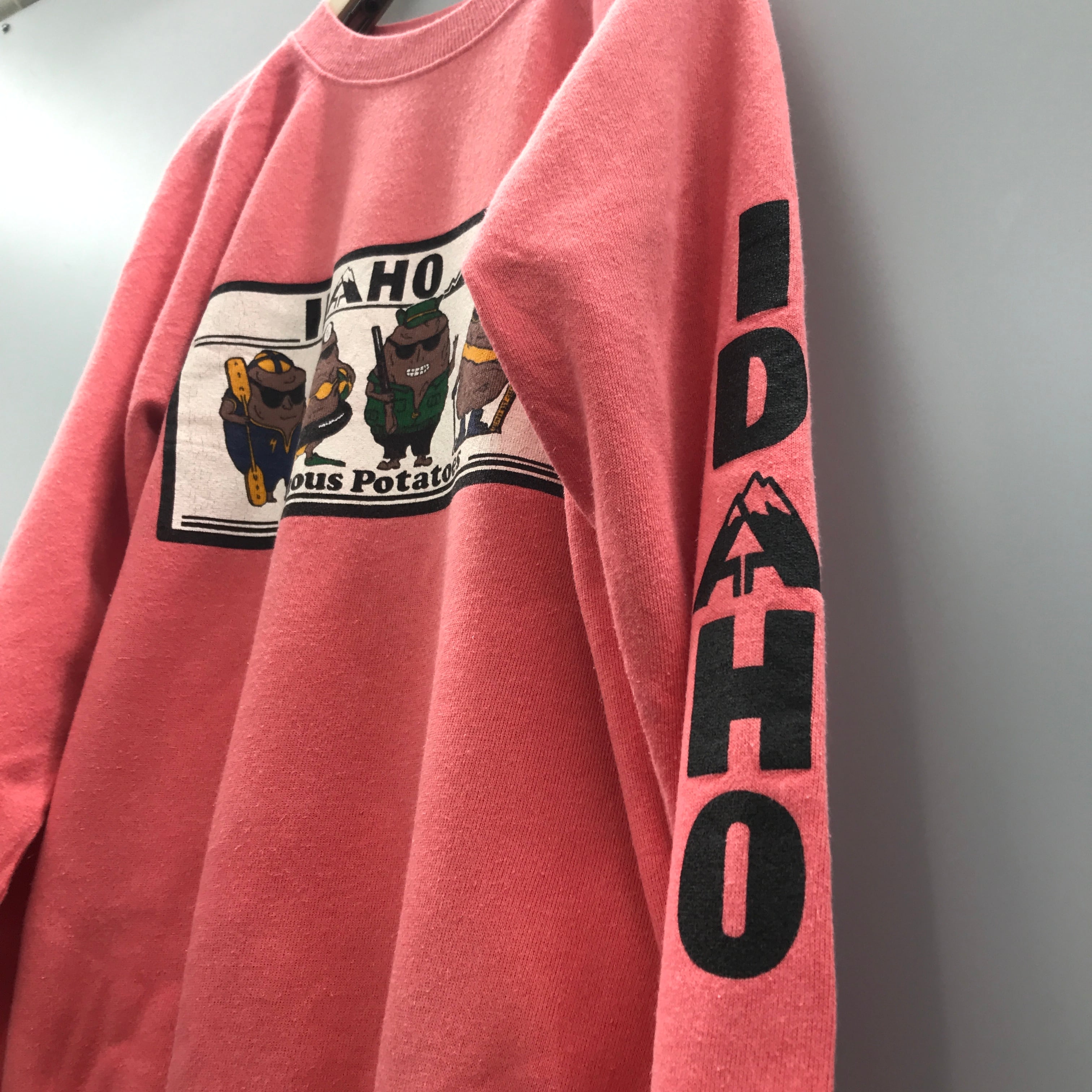80年代 ヴィンテージ ピンク の アイダホ ポテトプリント ラグランスウェット ピンク