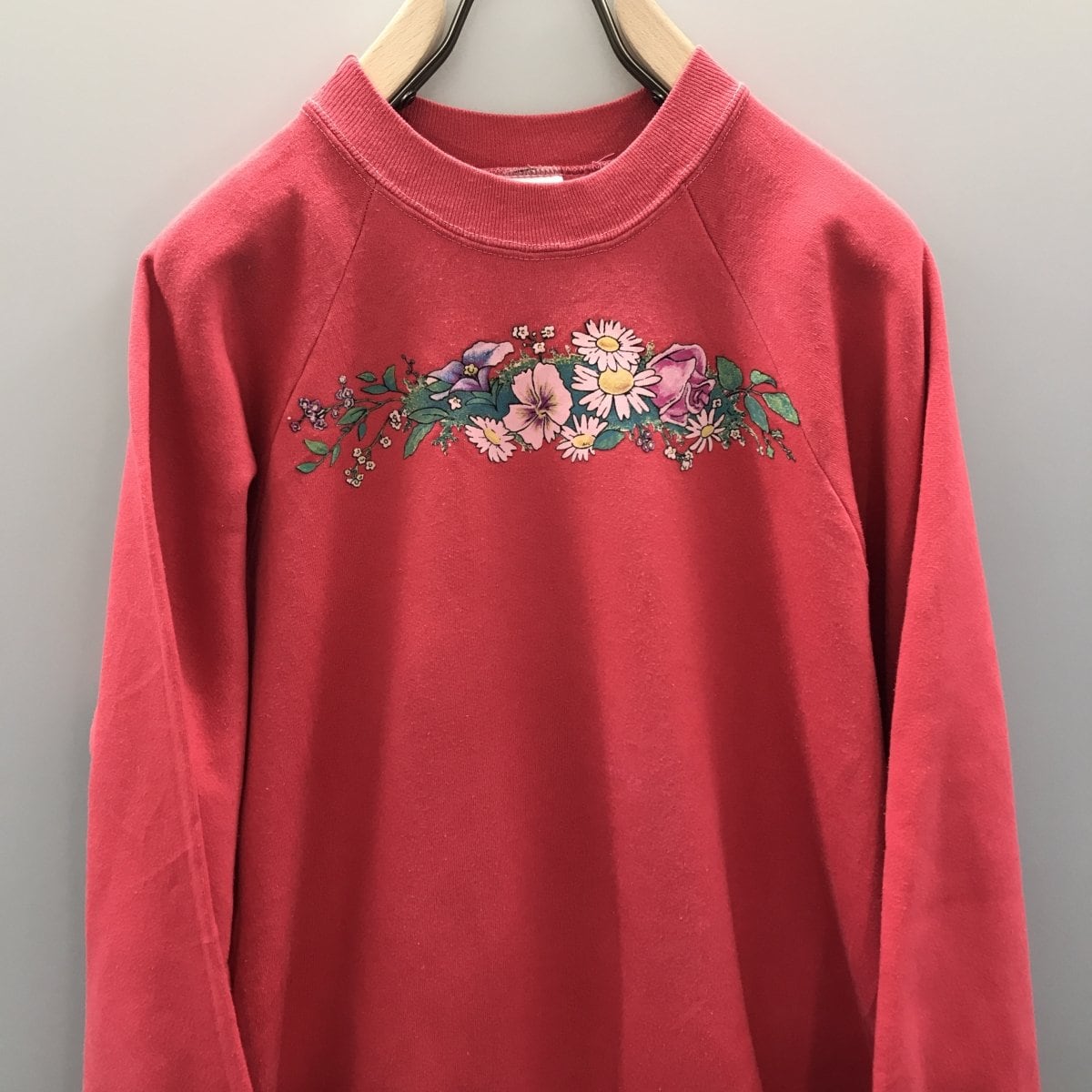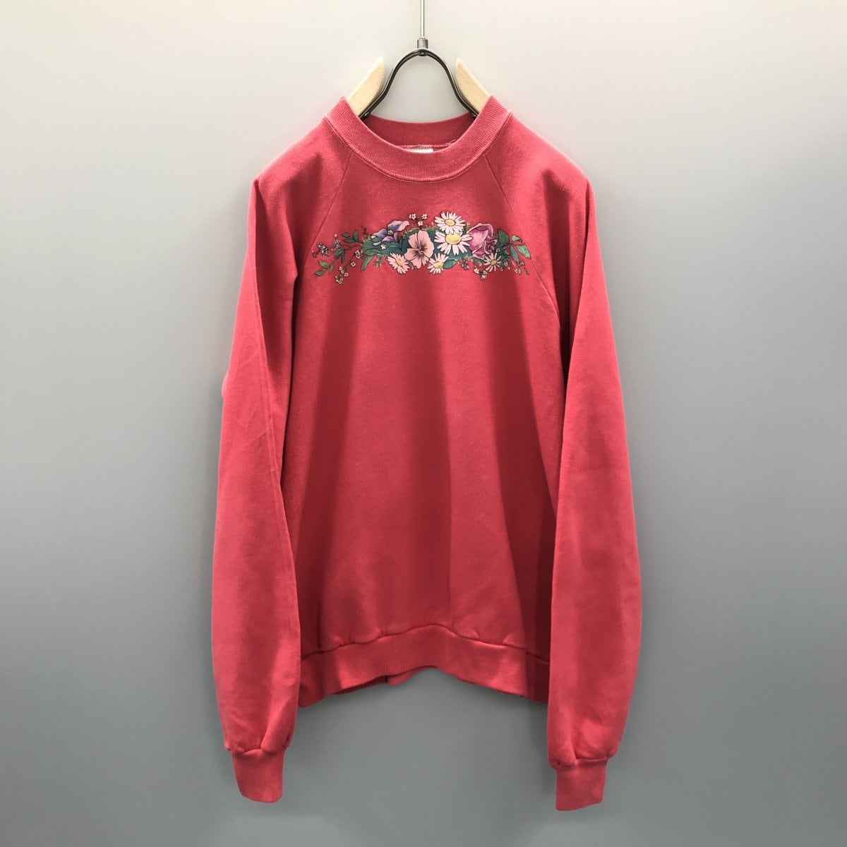80年代 米国製 SUNBELT SPORTS WEAR ラグランスウェットピンク 花花