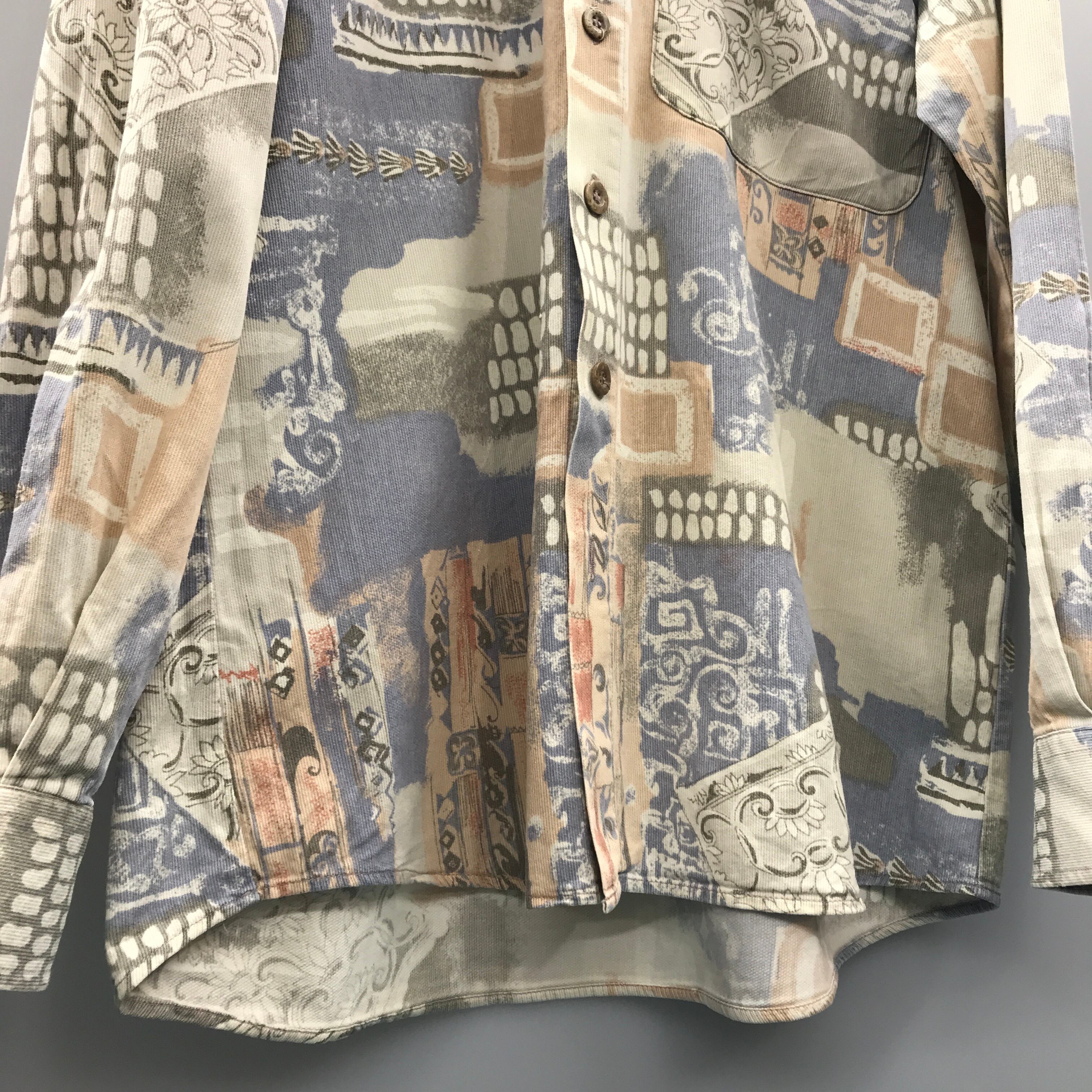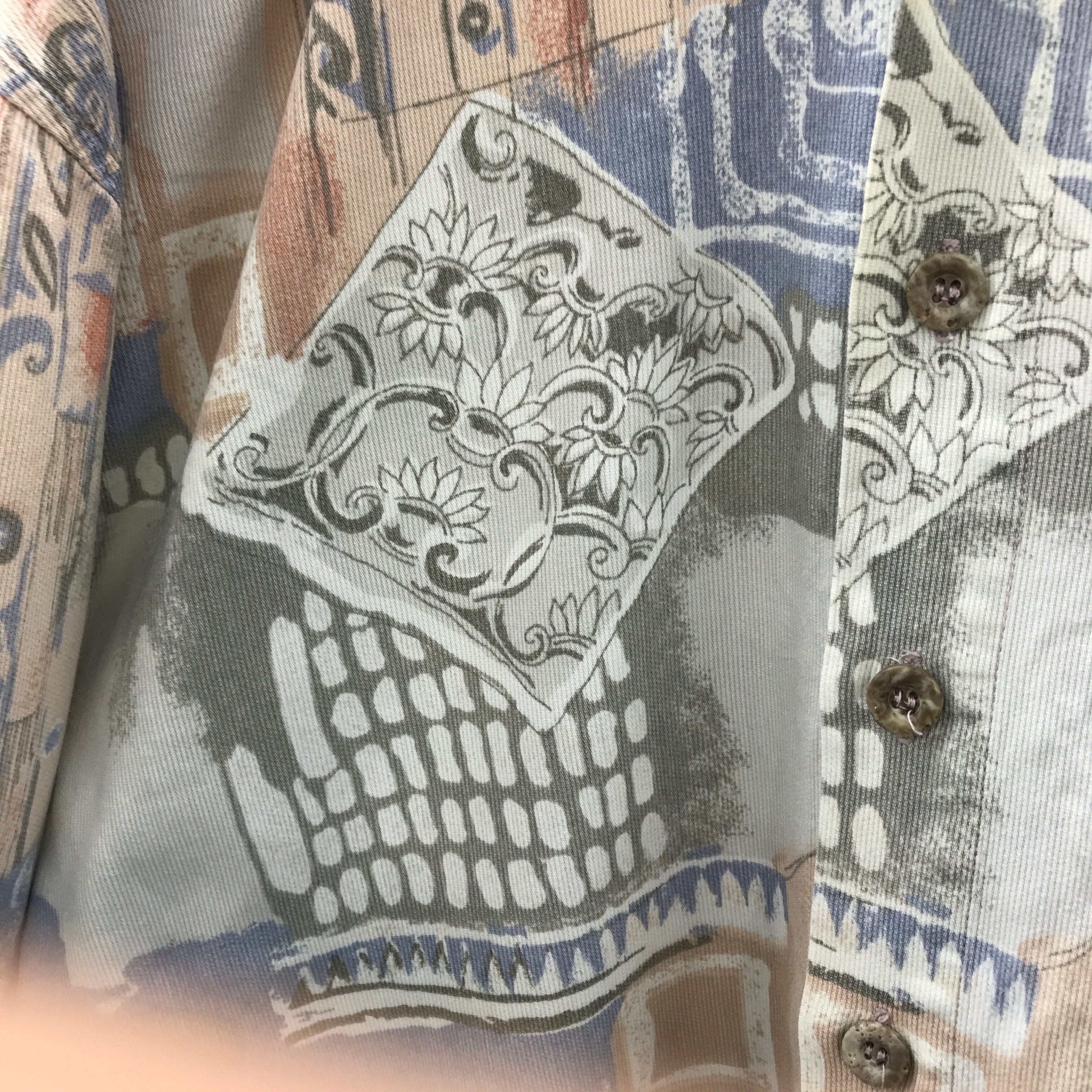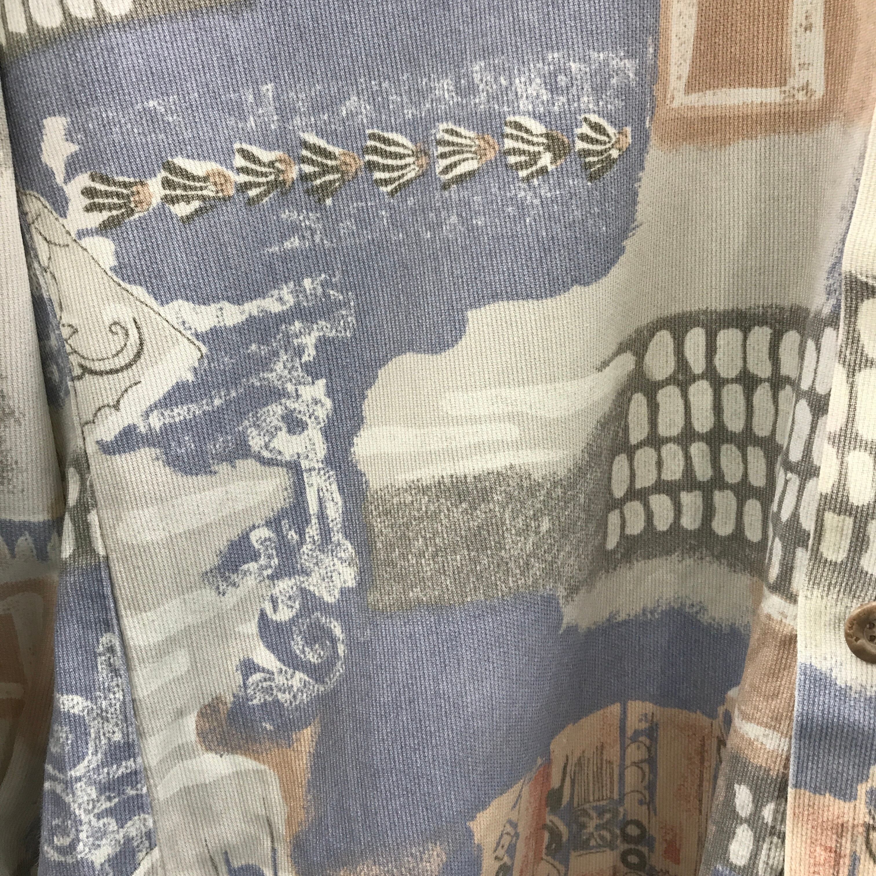 80〜90年代 パステル 淡色 ヨーロッパの街壁 柄シャツ