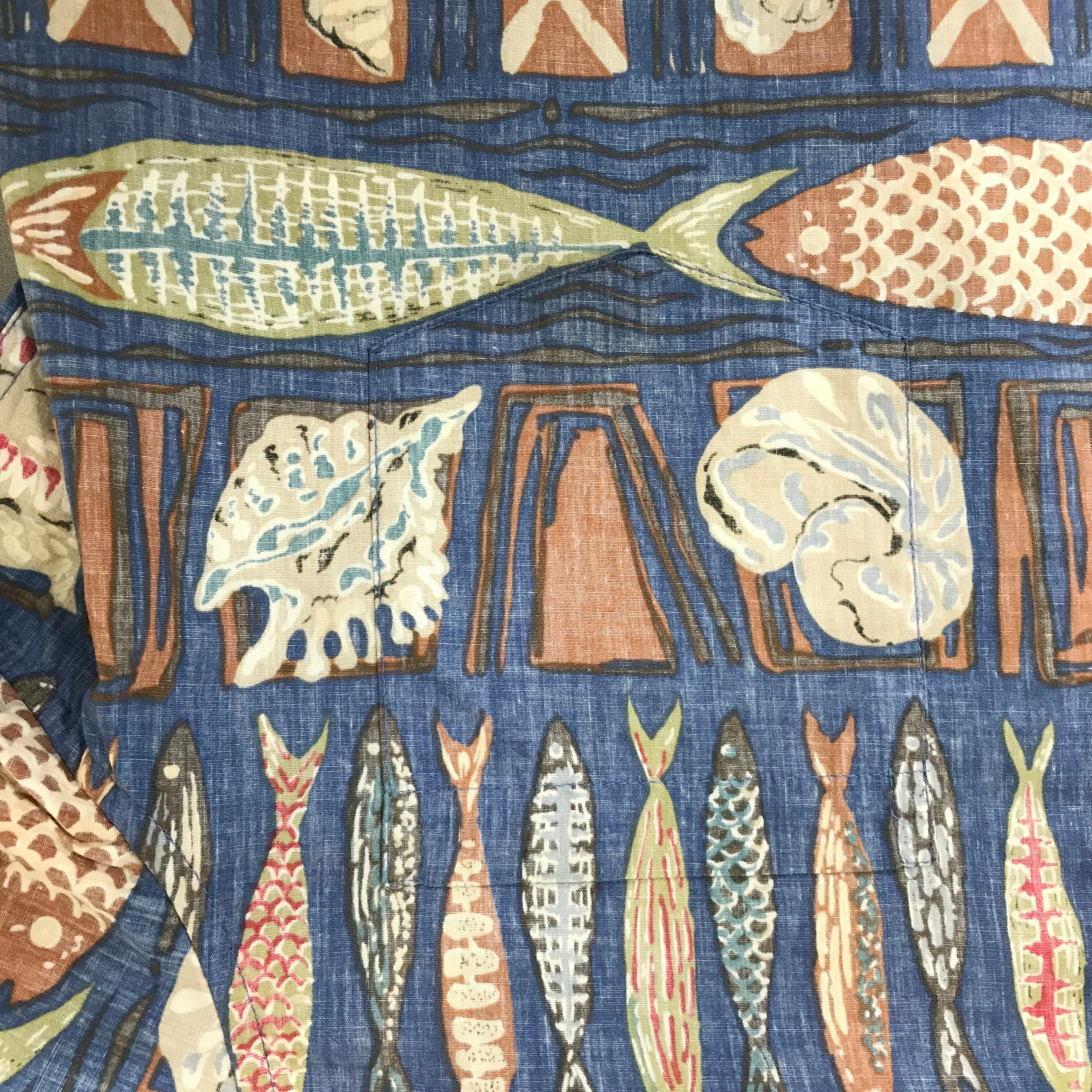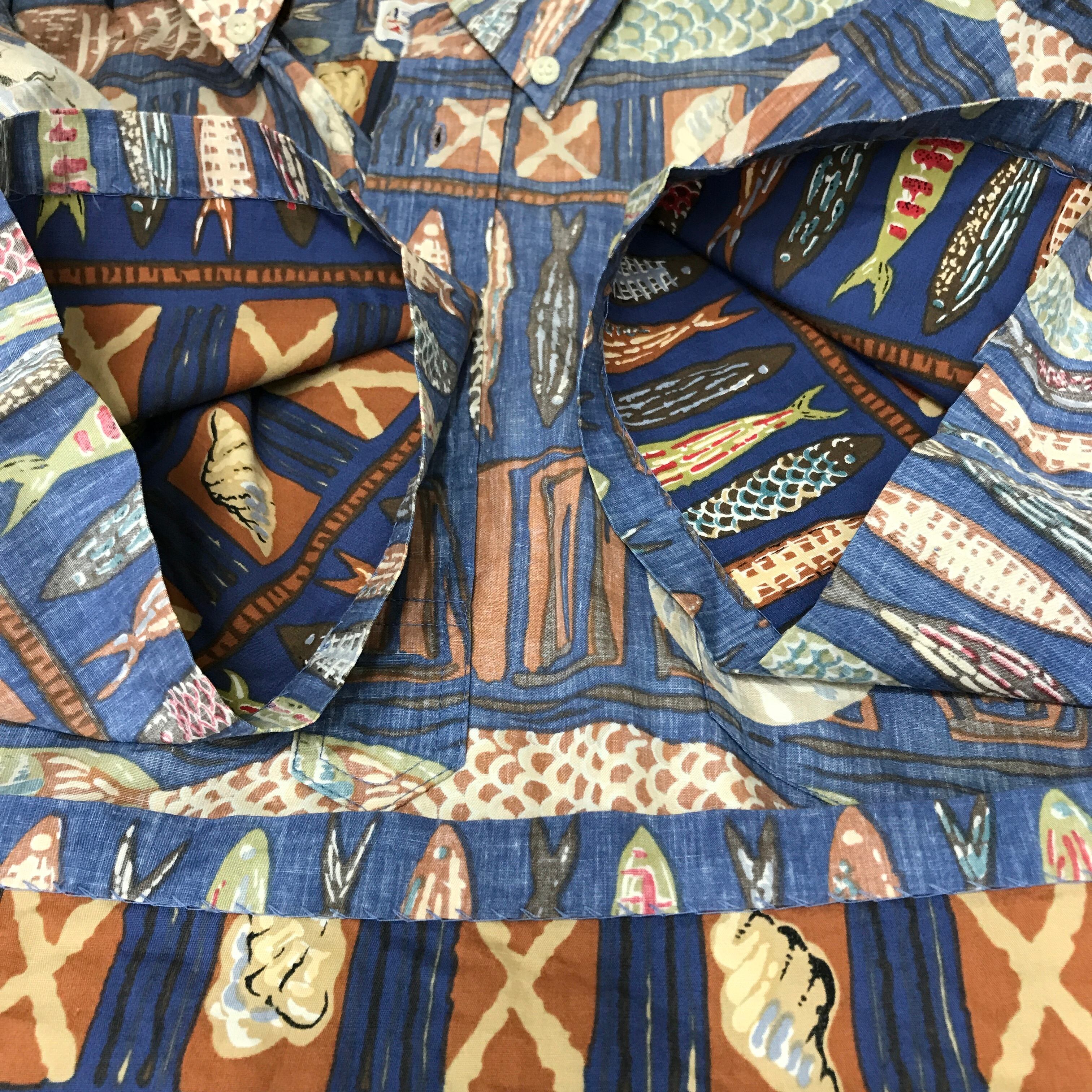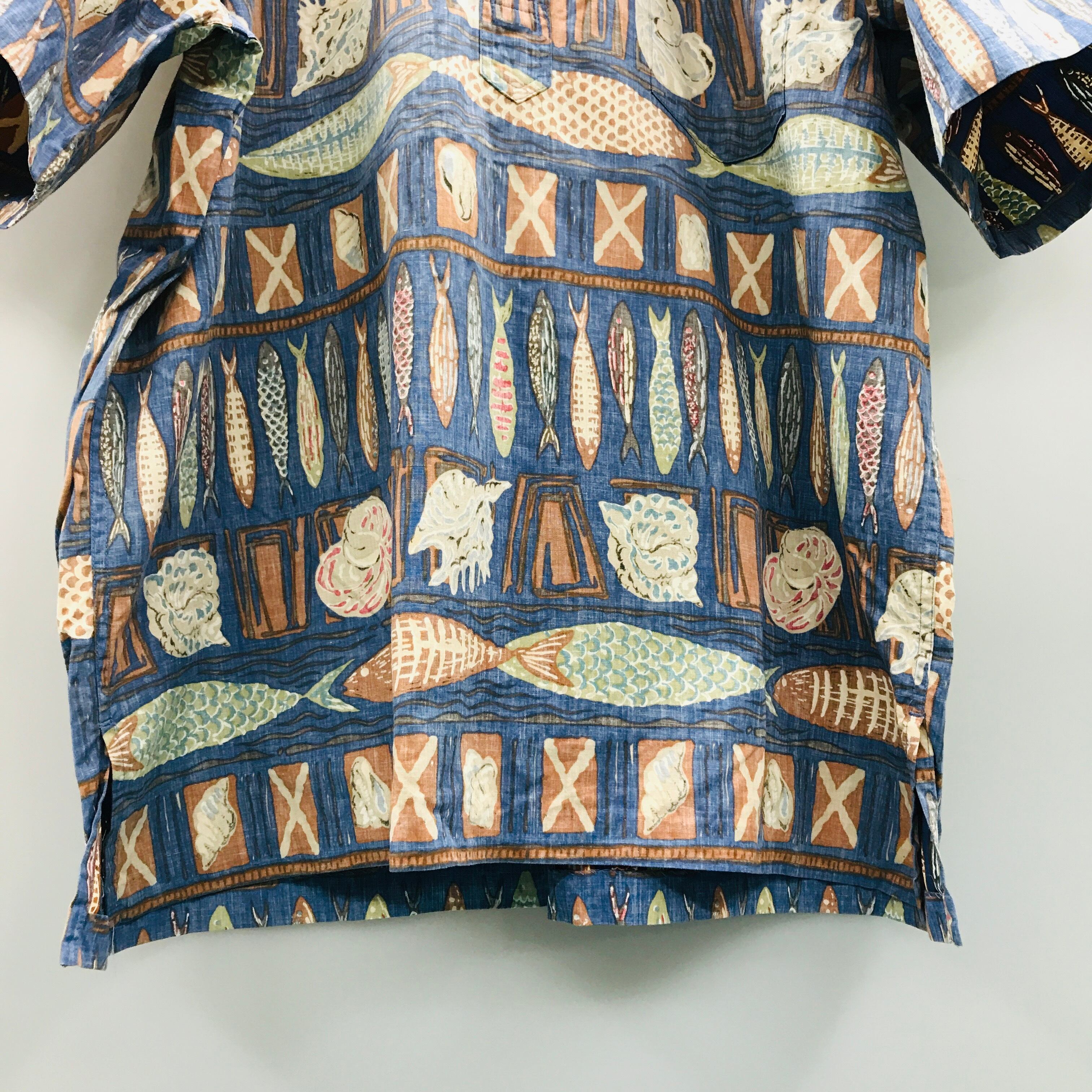 90年代 reyn spooneレインスプナー ビキニタグ 魚柄 ハワイアンシャツ