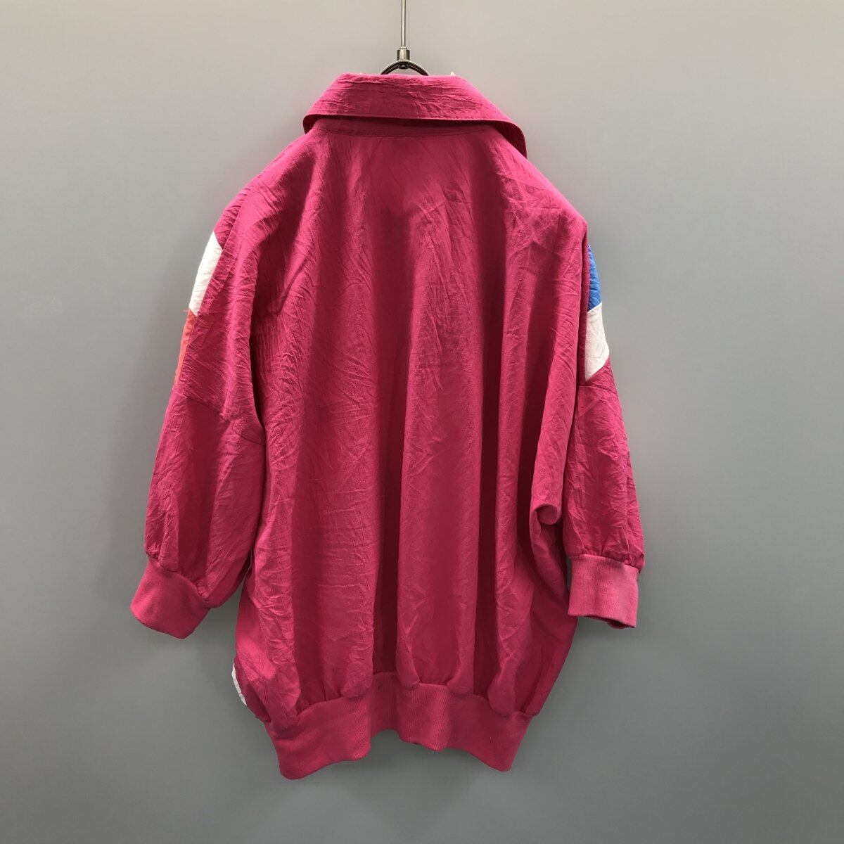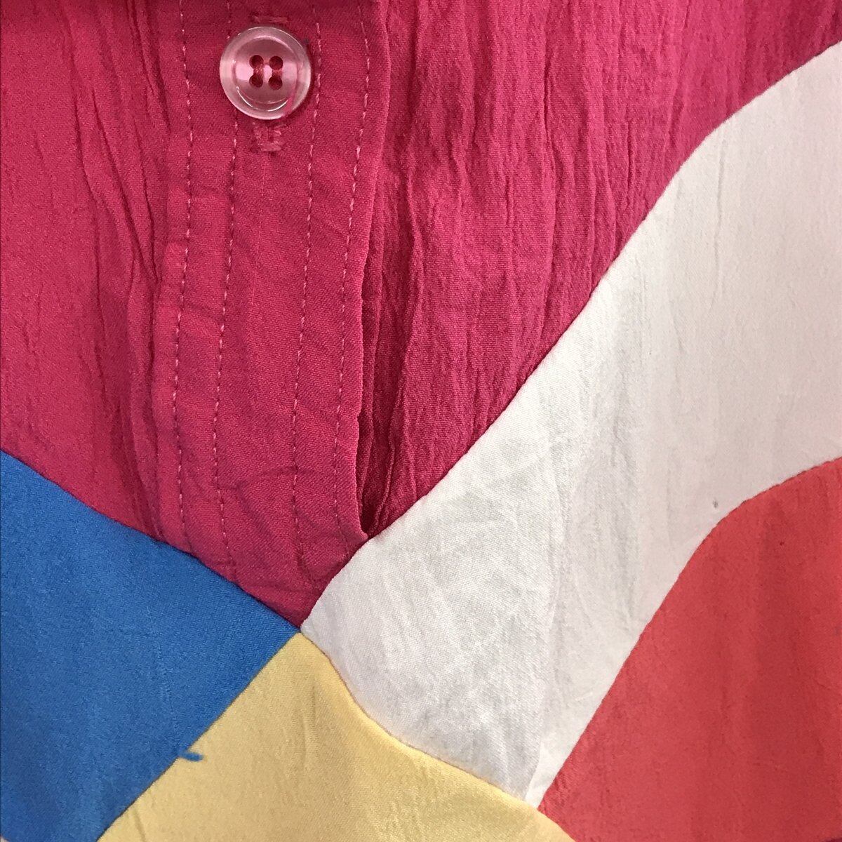 80年代 米国製 CORTINA シワ加工 PINK 切り替え マルチカラー 半袖 ポロブラウス