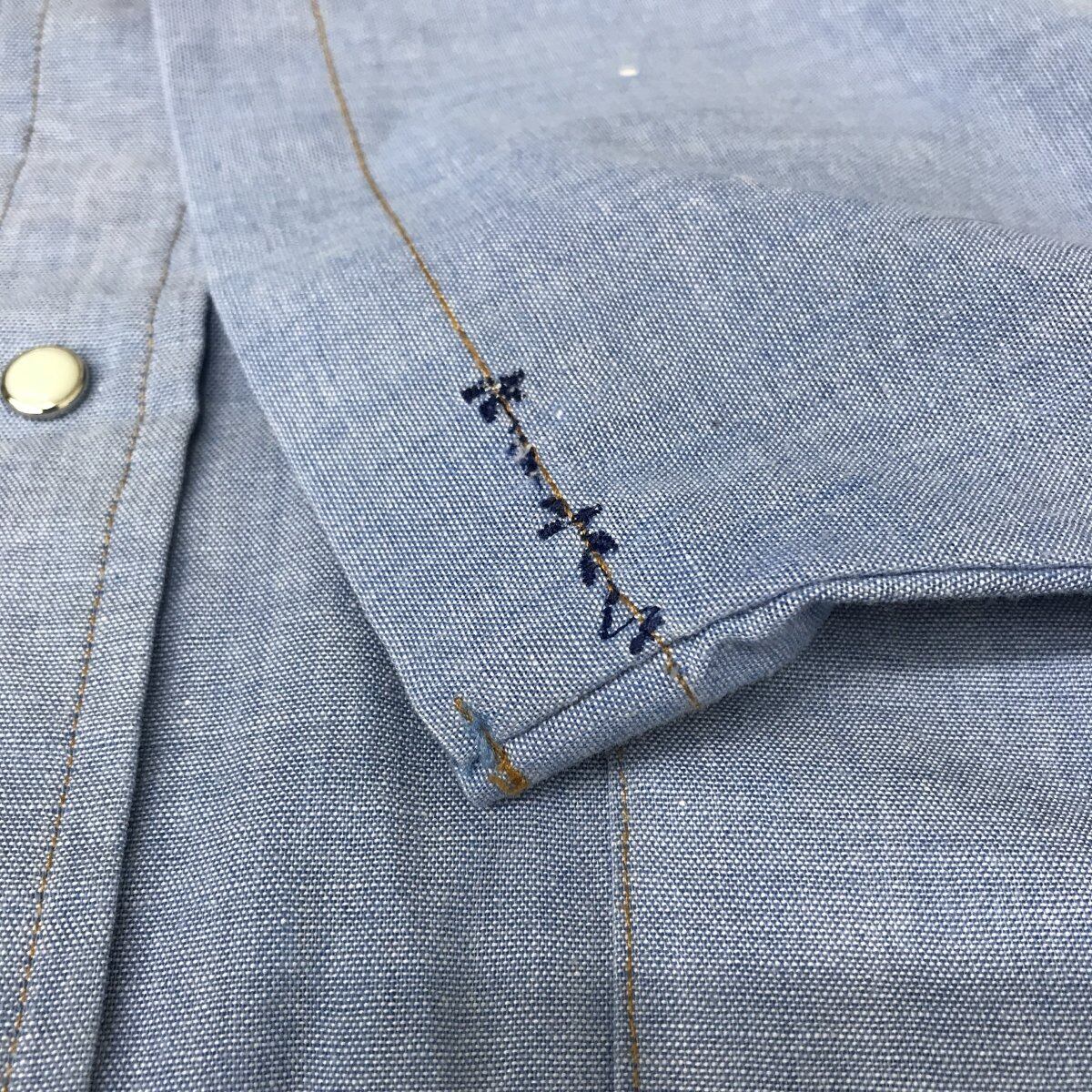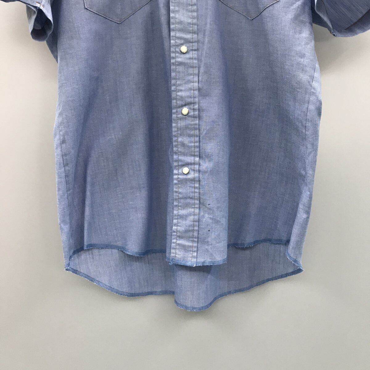 70〜80年代 wrangler 米国製 ヴィンテージ クロス 星条旗 アップリケ付き シャンブレー半袖 ウエスタンシャツ USA アメリカ