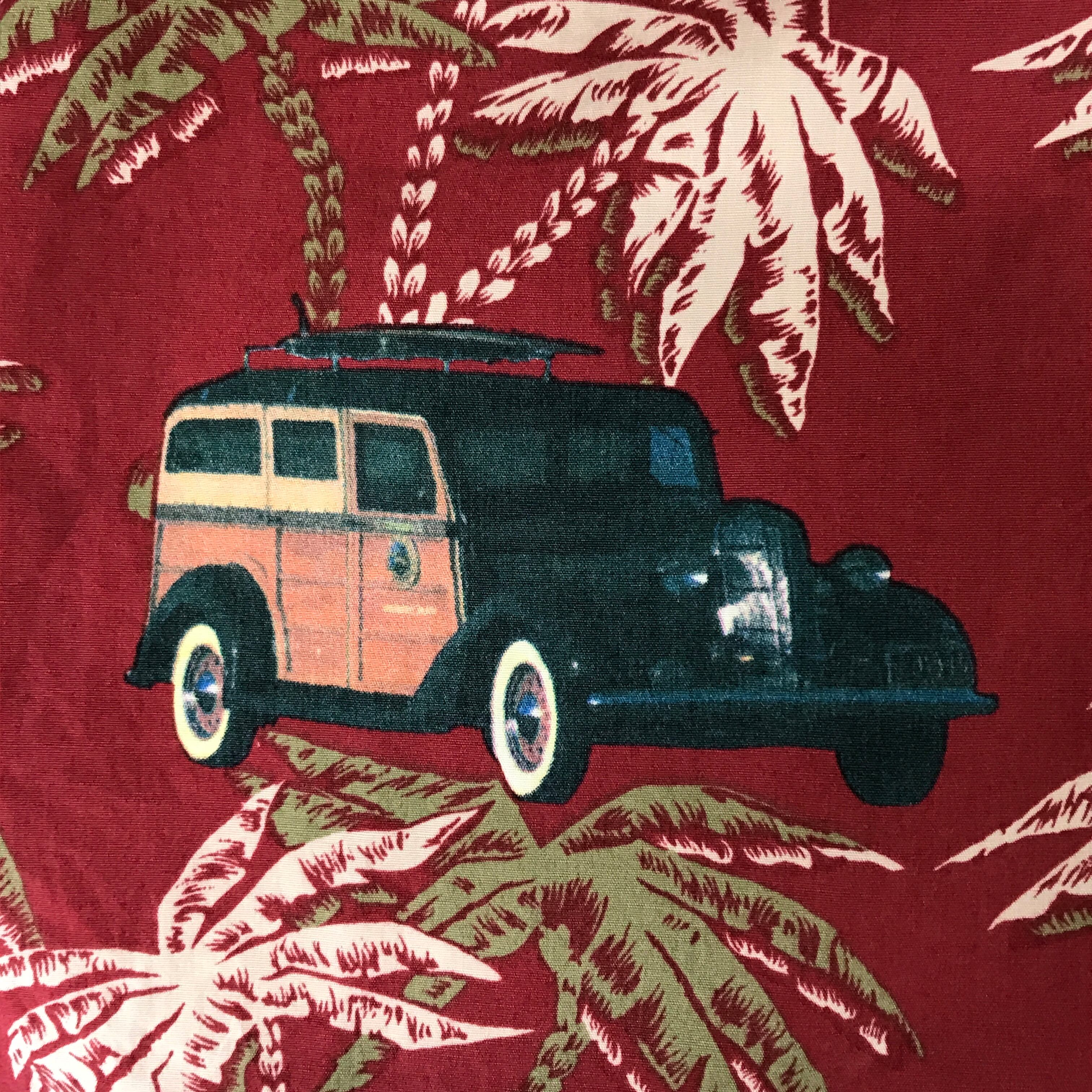 ハワイアンシャツ WOODY WAGON 柄 車柄 ワゴン柄 ヤシの木柄