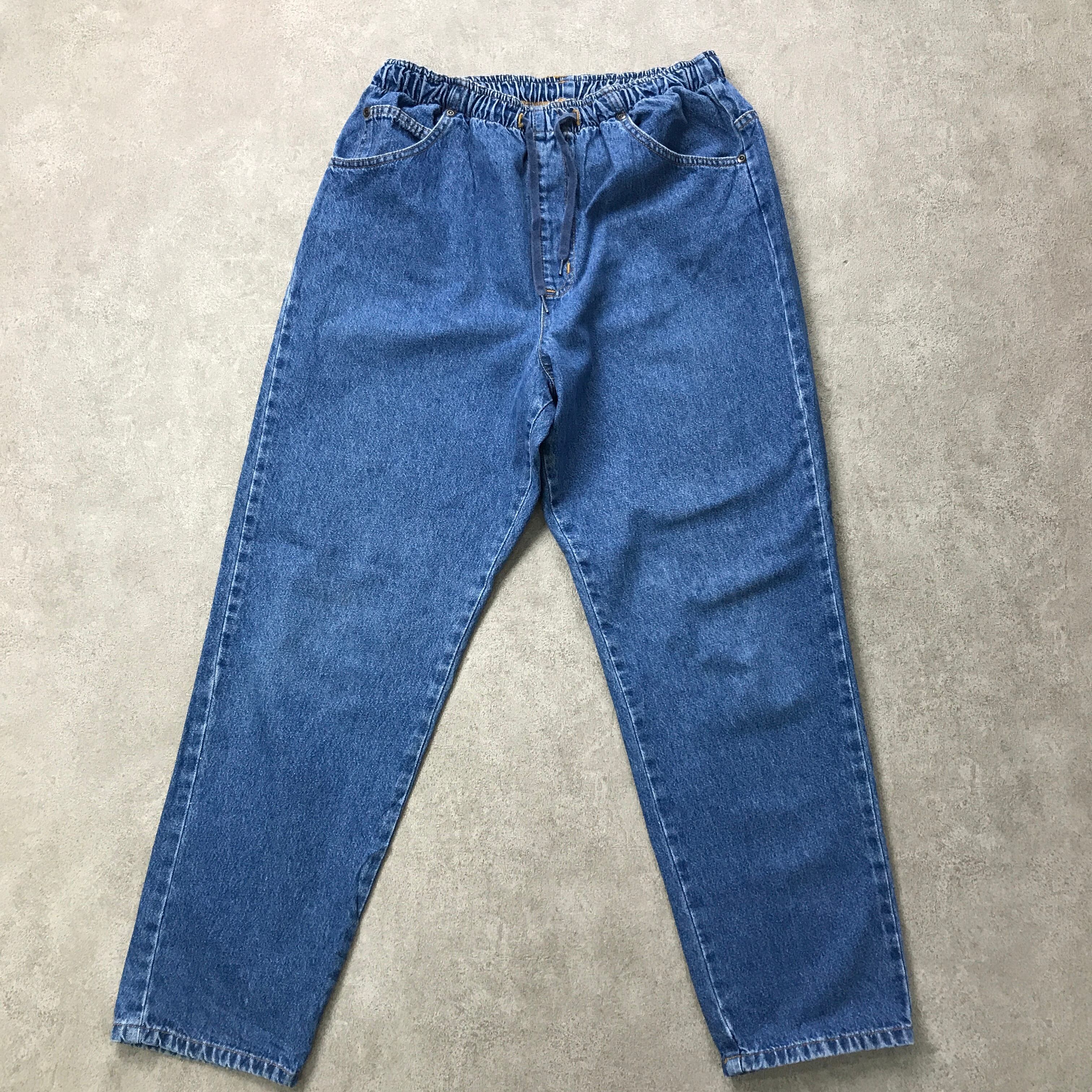 80〜90年代 デニムイージーパンツ ウエストゴムひも付き 80'Sテーパードシルエット