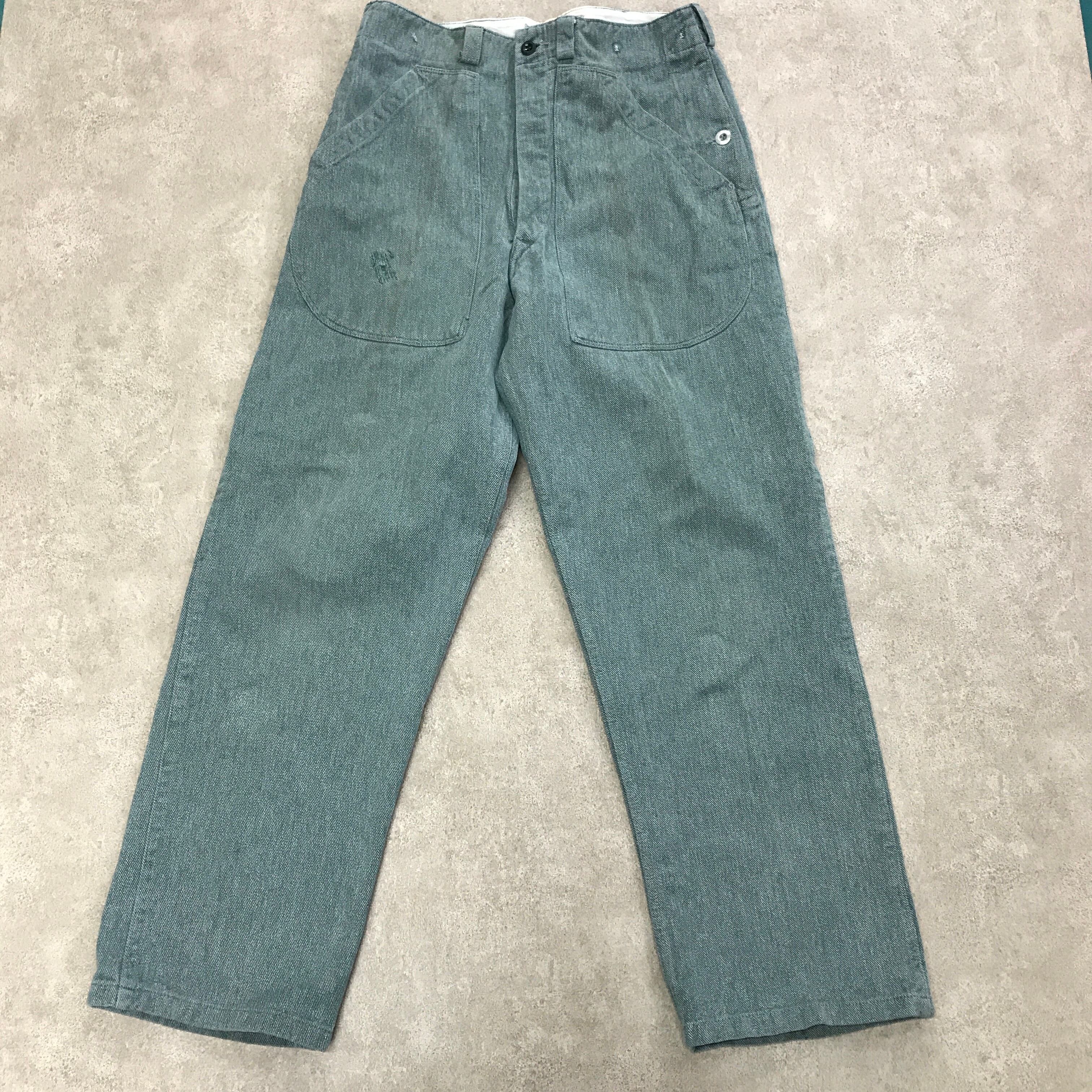 50'S スイス軍 グリーンデニム ヘビーオンスコットンワークパンツ