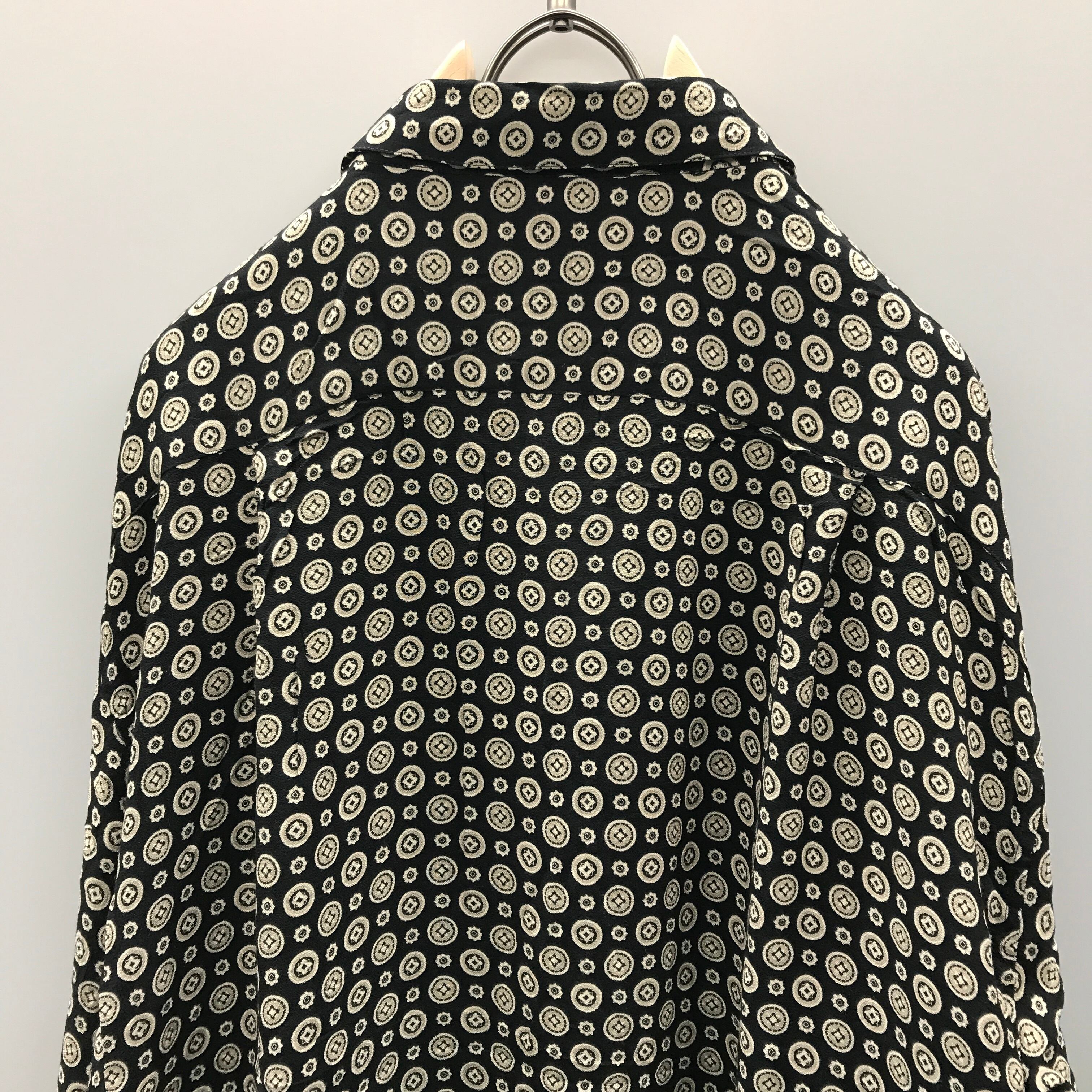 80〜90年代 総柄 MONDI DI MARCO イタリア製 白黒モノグラム柄 長袖 レーヨンシャツ