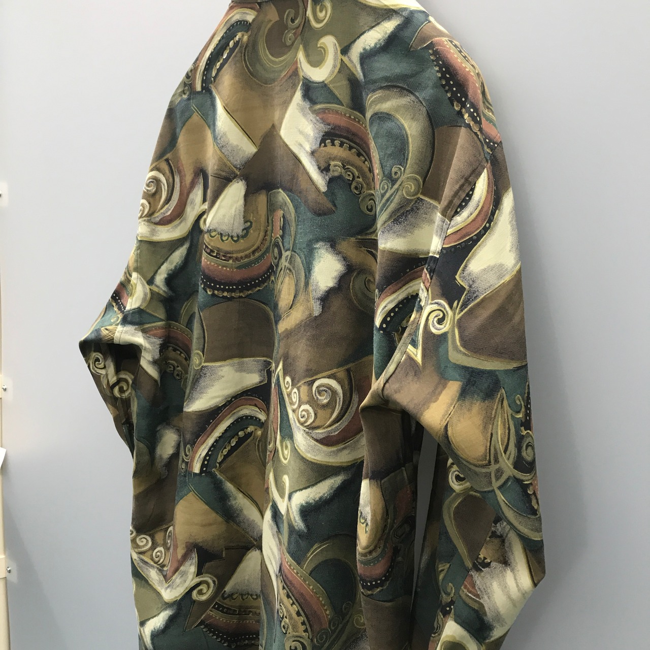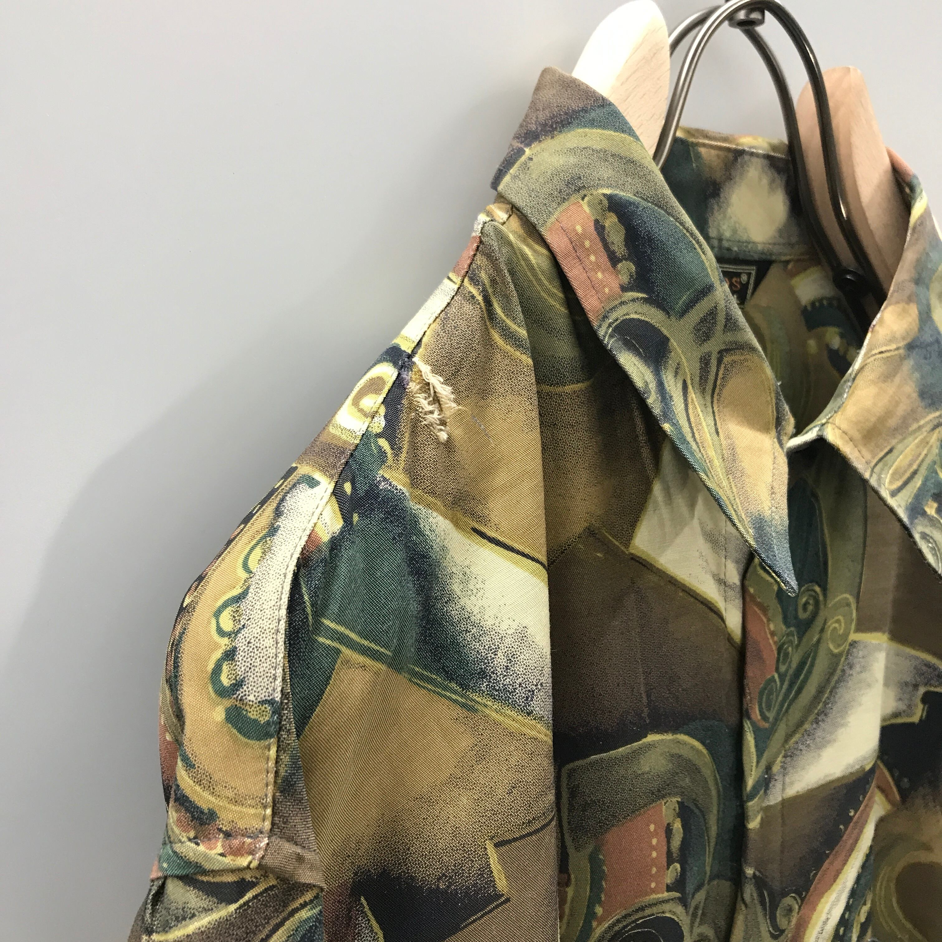 80〜90年代 総柄 LOGOS MOODYなオリエンタル絵画柄 長袖 ポリエステルシャツ