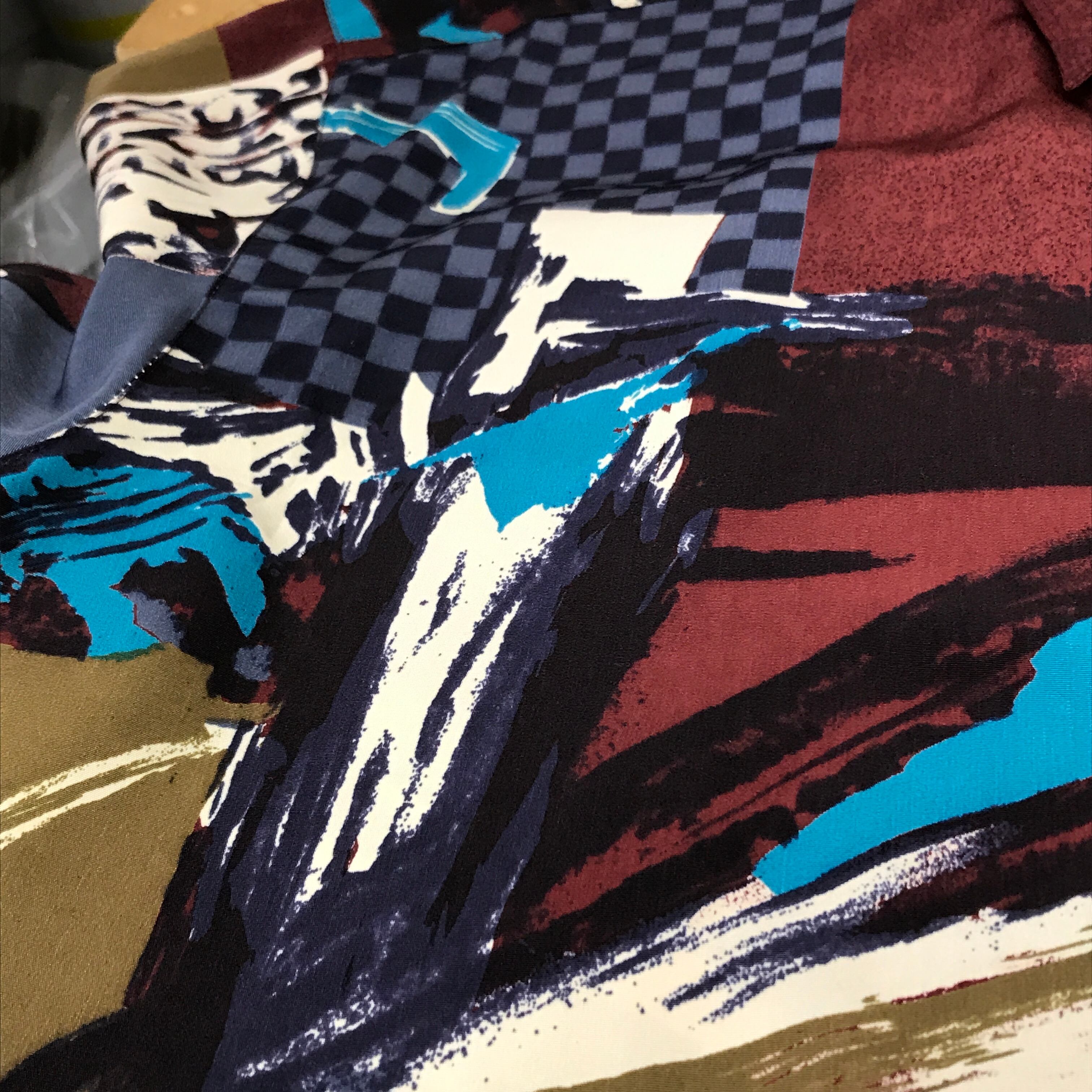 80〜90年代 総柄シャツ JPN NEW PARK 80'S コラージュ HIGH DESIGN ART BURGUNDY ポリエステル シャツ