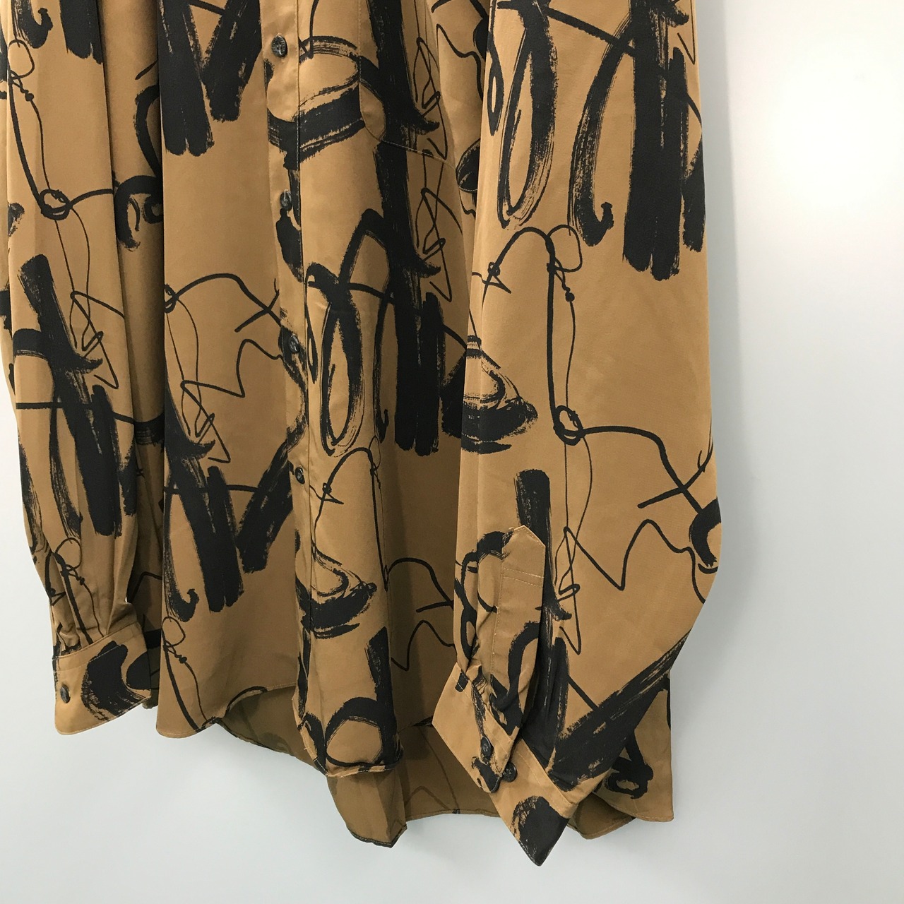 80〜90年代 総柄シャツ JPN mio SIROCCO 躍動感あるドローイング 80'S ART ポリエステル シャツ