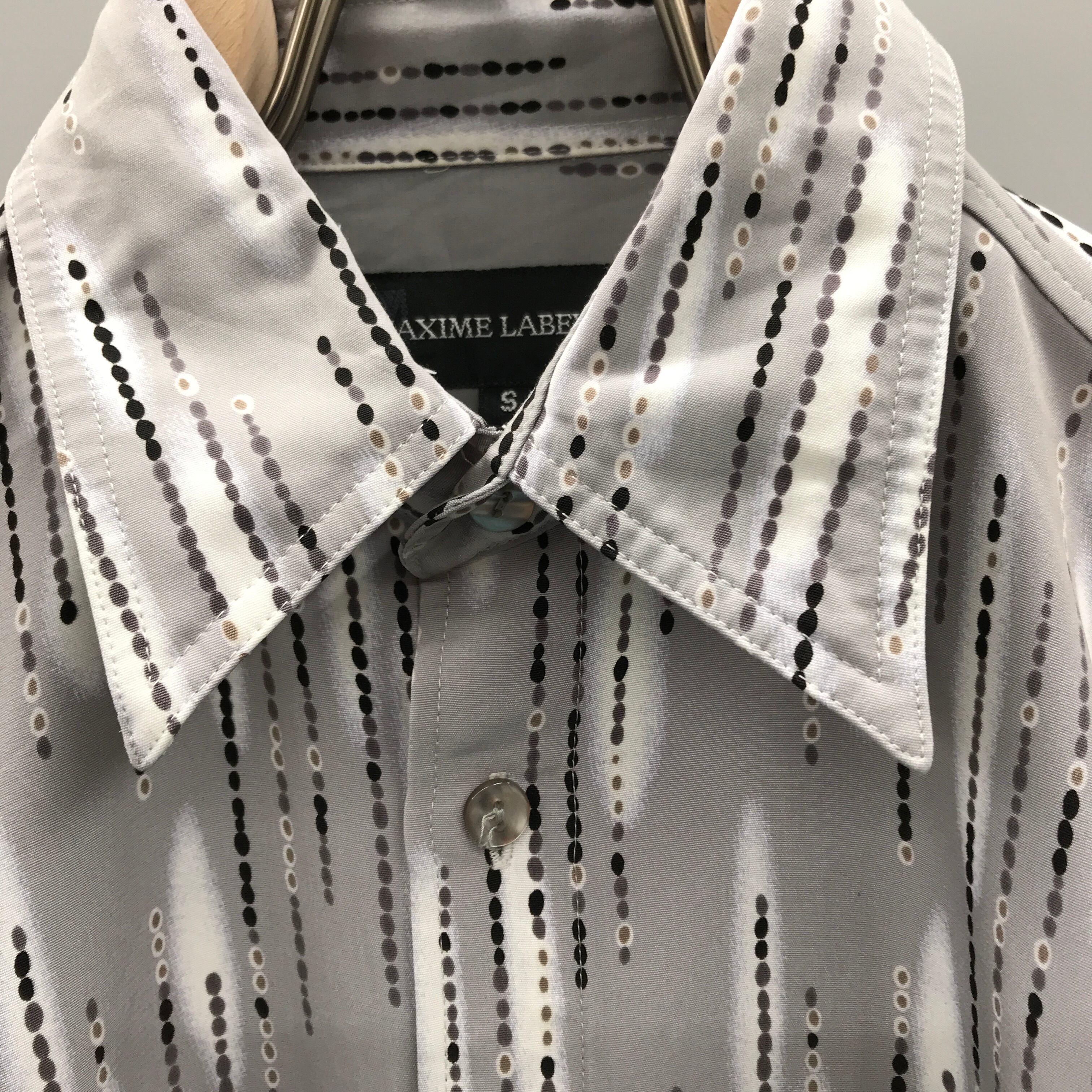 90年代 MAXIME LABEYRIE PARIS JPN 柄シャツ 長袖 モノトーン ポリエステル 柄シャツ