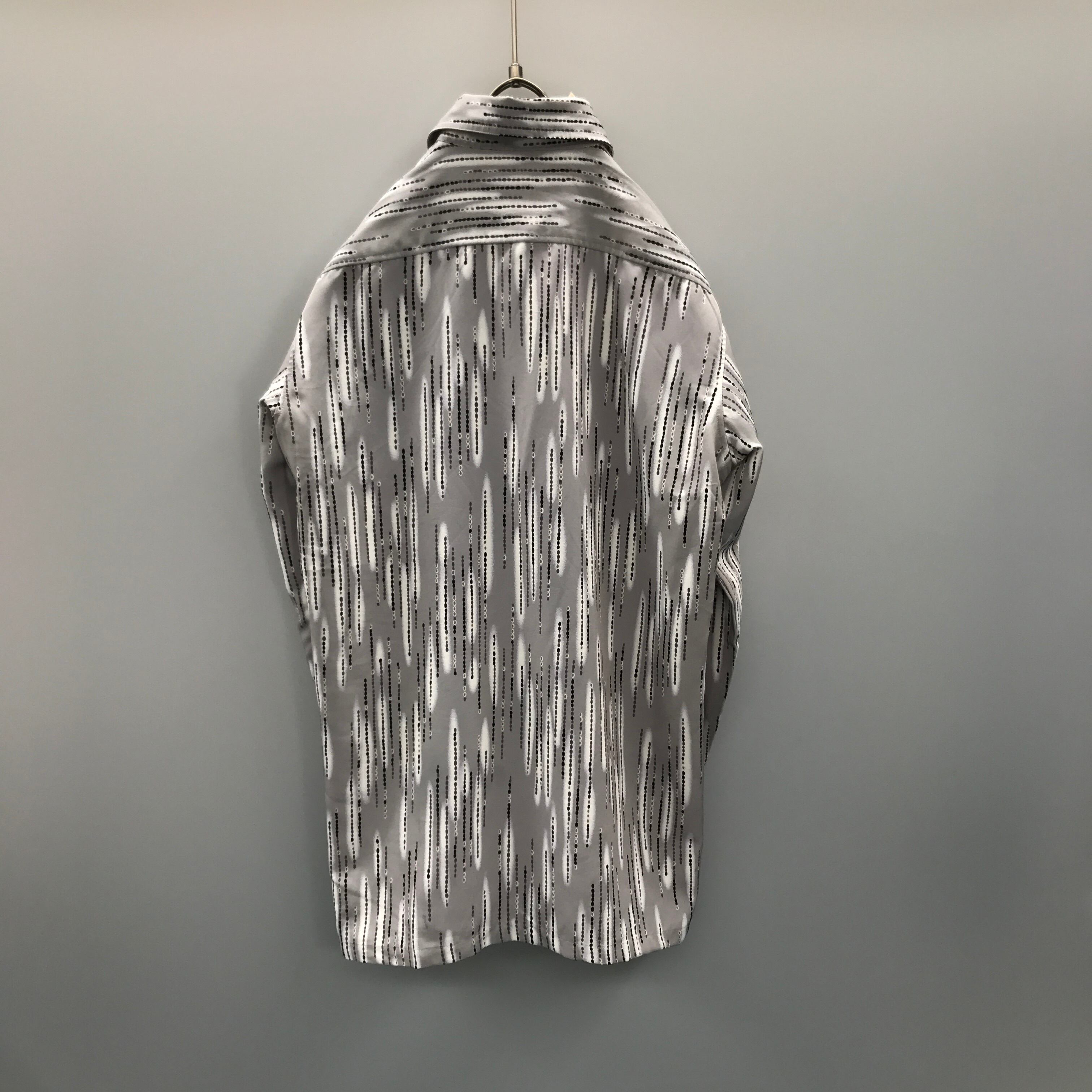 90年代 MAXIME LABEYRIE PARIS JPN 柄シャツ 長袖 モノトーン ポリエステル 総柄 シャツ 白黒グレー S