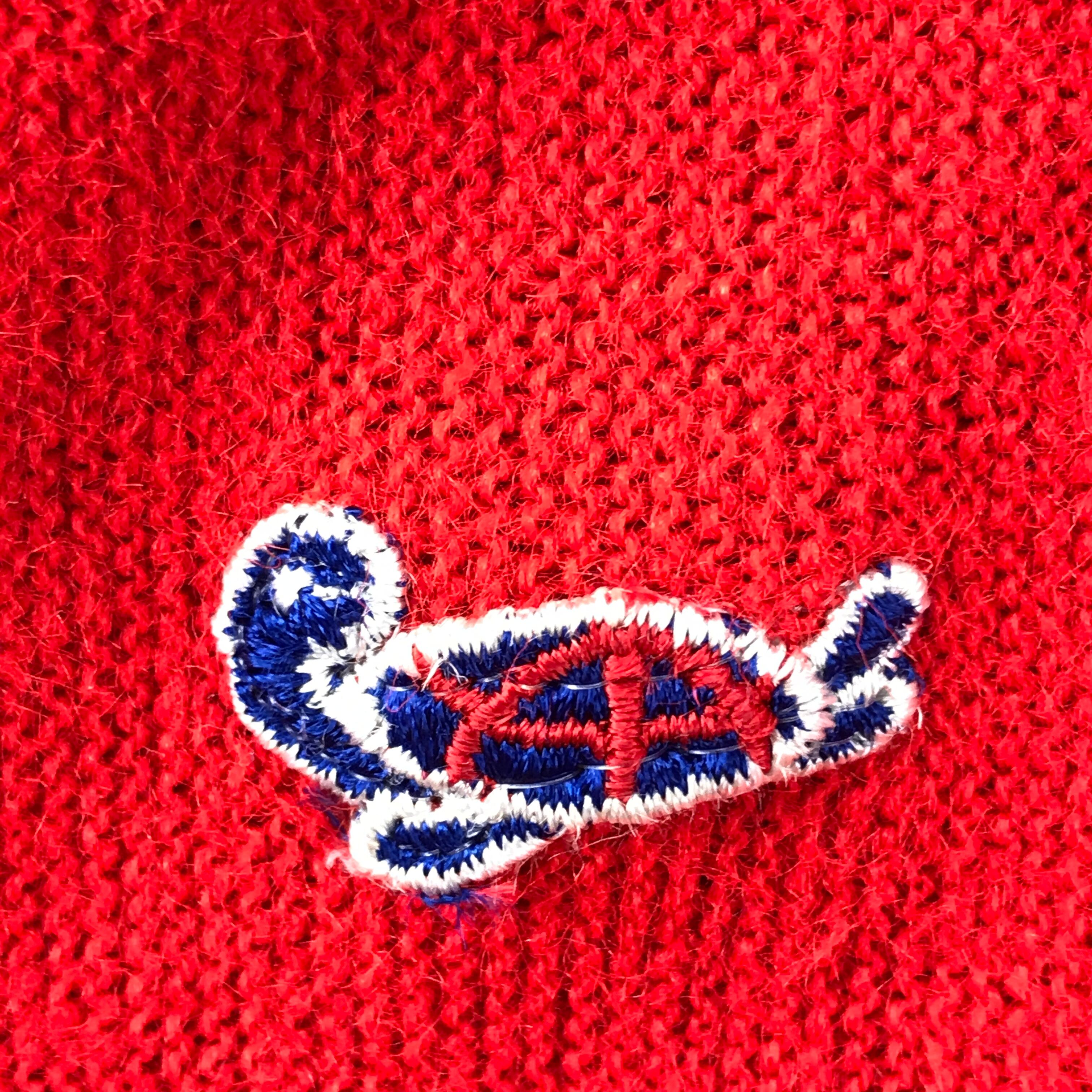 70年代 SPORTS WEAR ORLON ACRIC アクリルカーディガン レッド タートル L 42 44