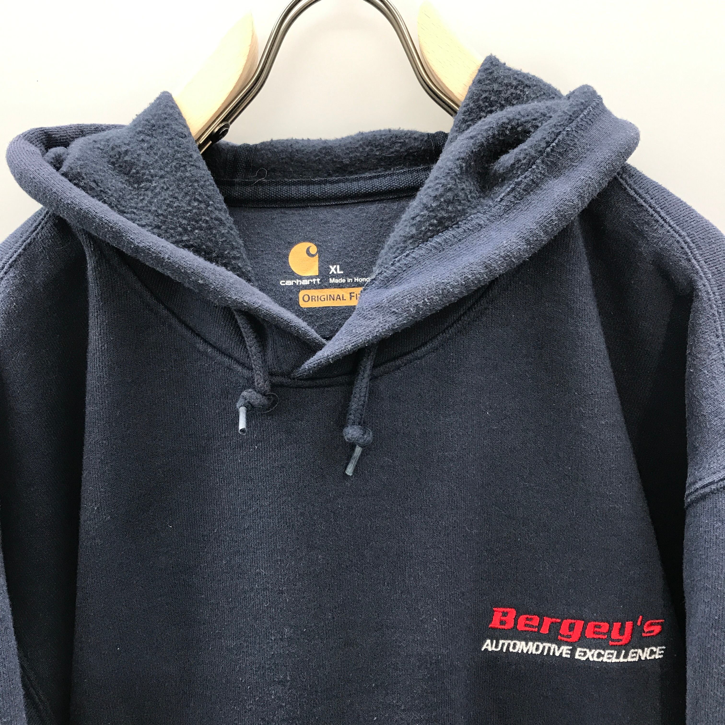 CARHARTT カーハート ヘビーウエイト コットン Bergey's Auto Dealers の 刺繍入り 紺 ネイビー プルオーバー パーカ XL