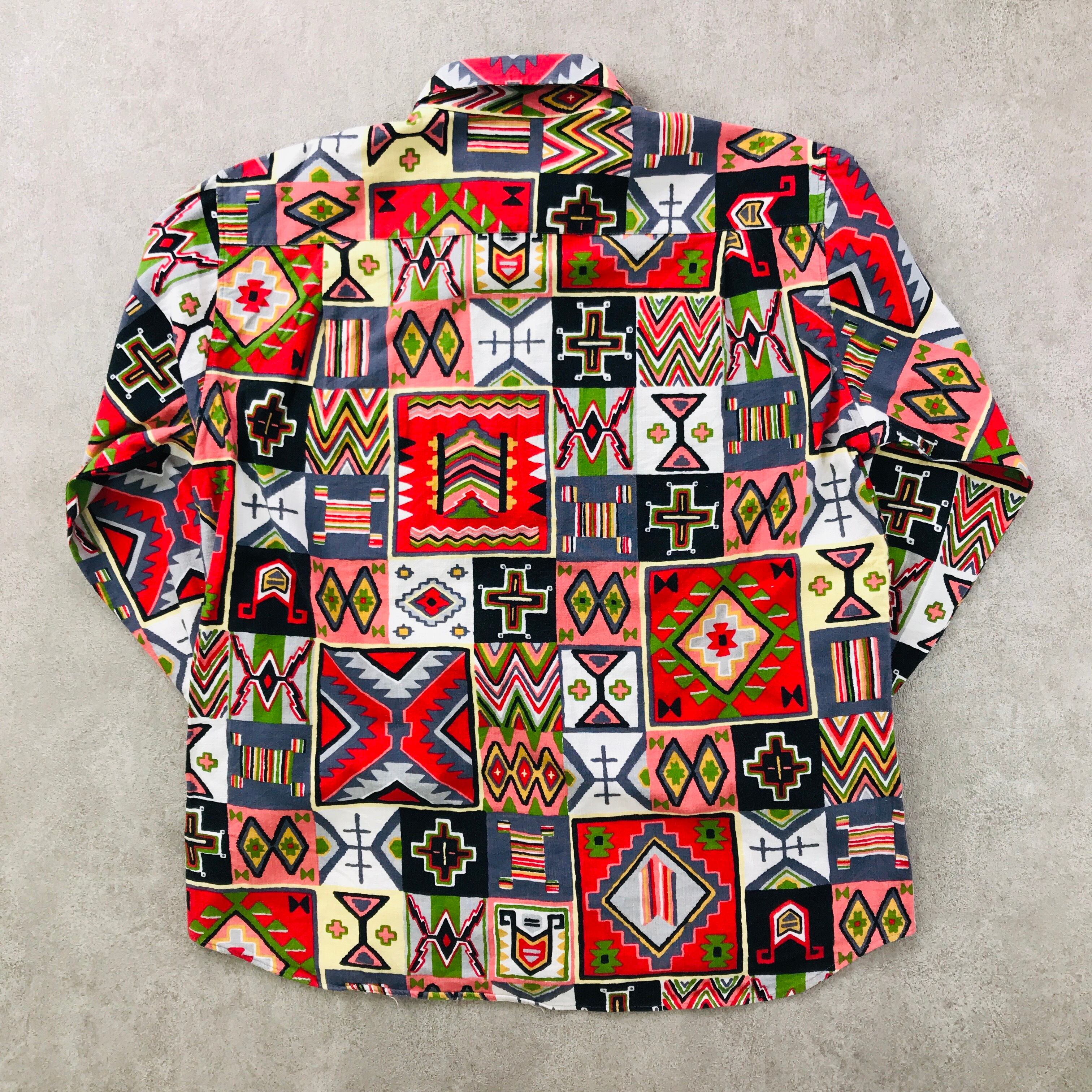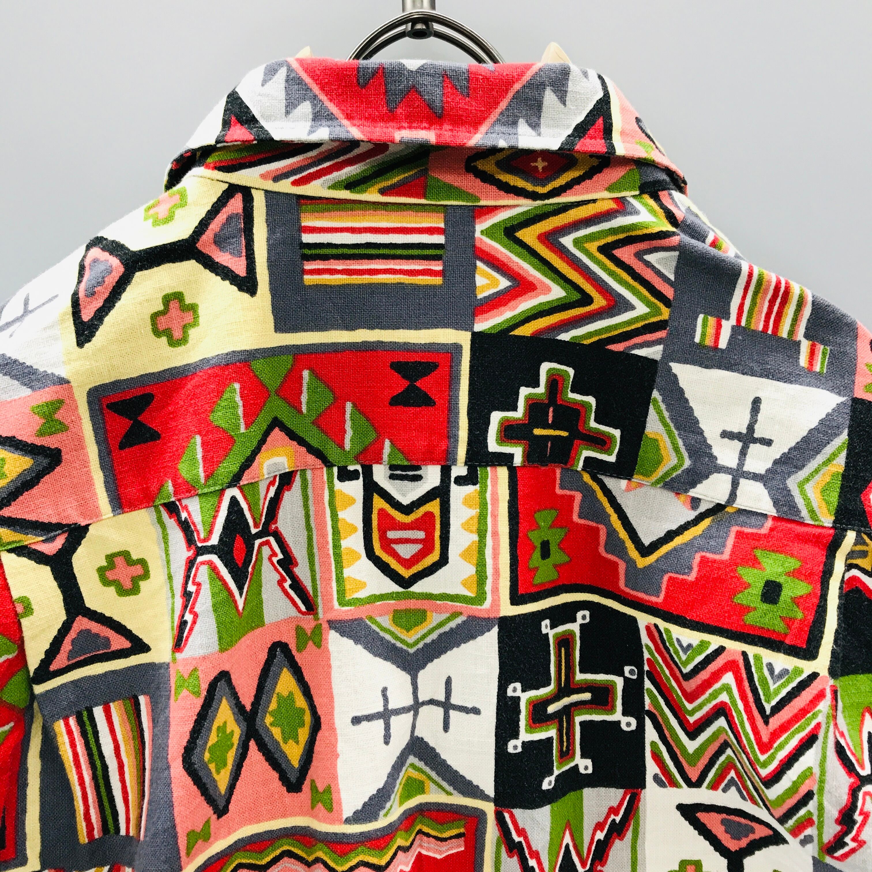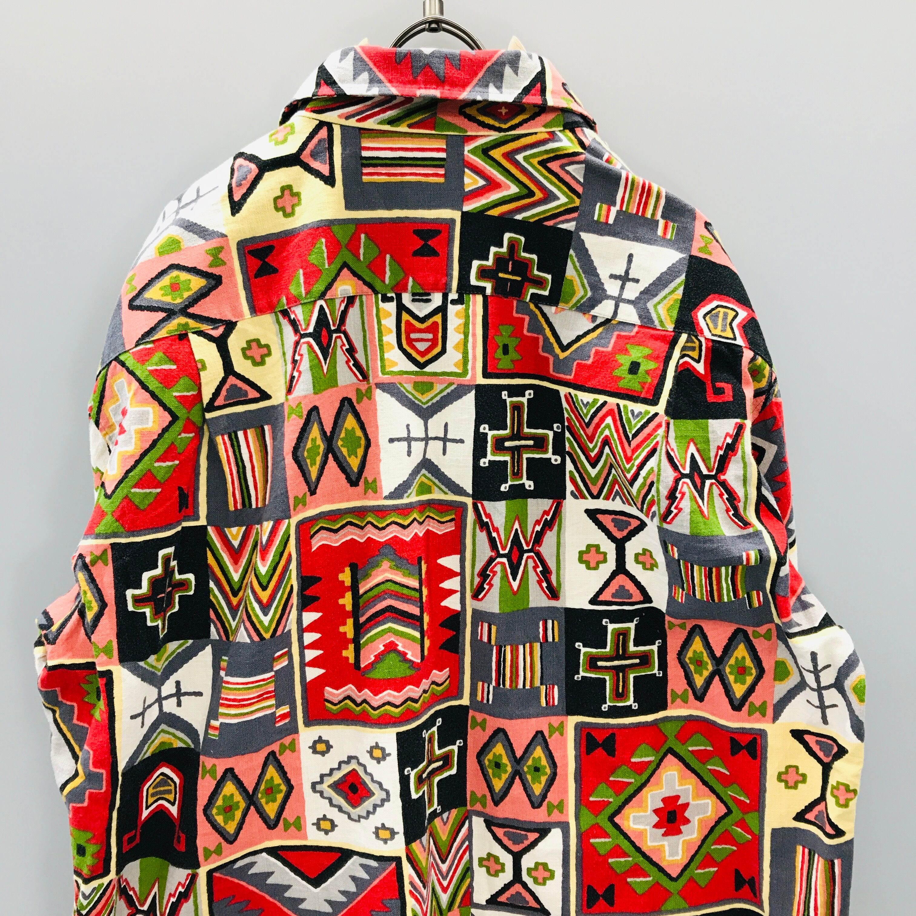 80年代 JPN ネイティブ柄 CANDY FANTSI かなり発色のいいコットンシャツ