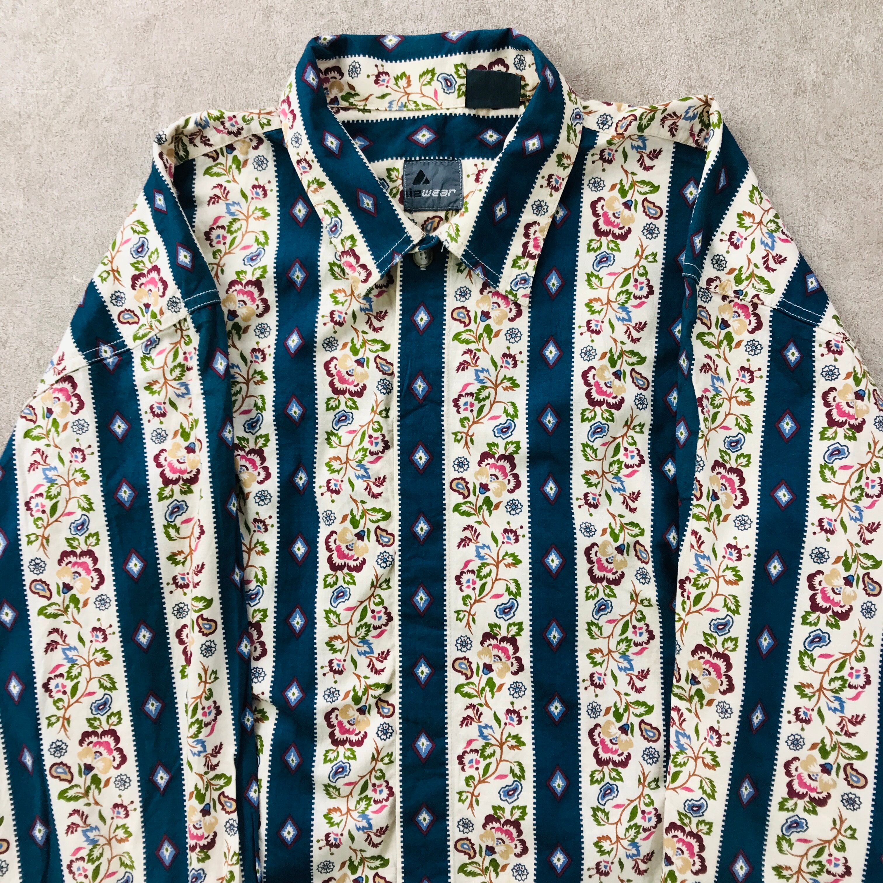 90年代 IMPORT LIZ WEAR ロココ柄 コットン柄シャツブラウス