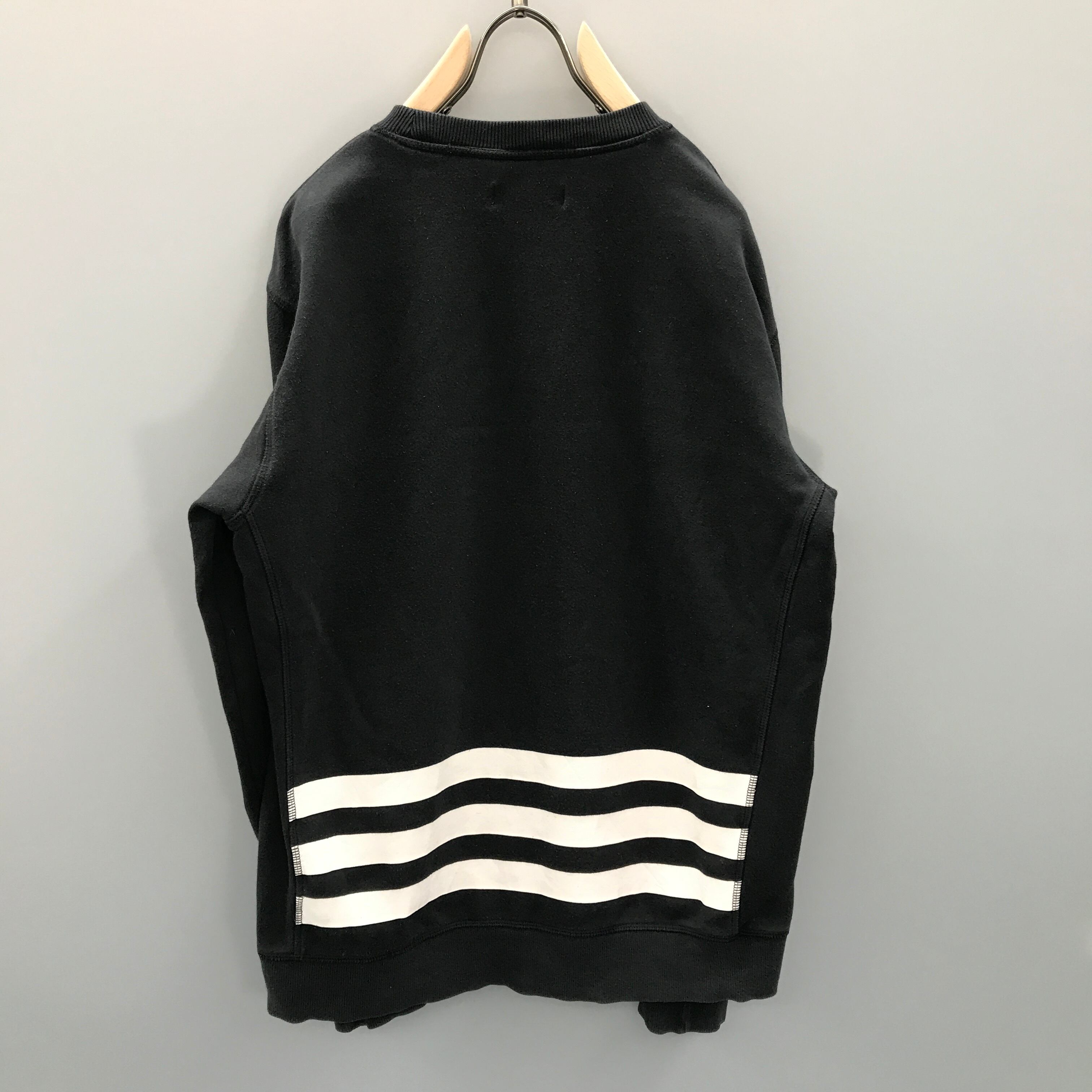 00年代 adidas アディダスオリジナルズ デカトレフォイル 黒 スウェット リバース ウィーヴ タイプ クルーネック スリーストライプ