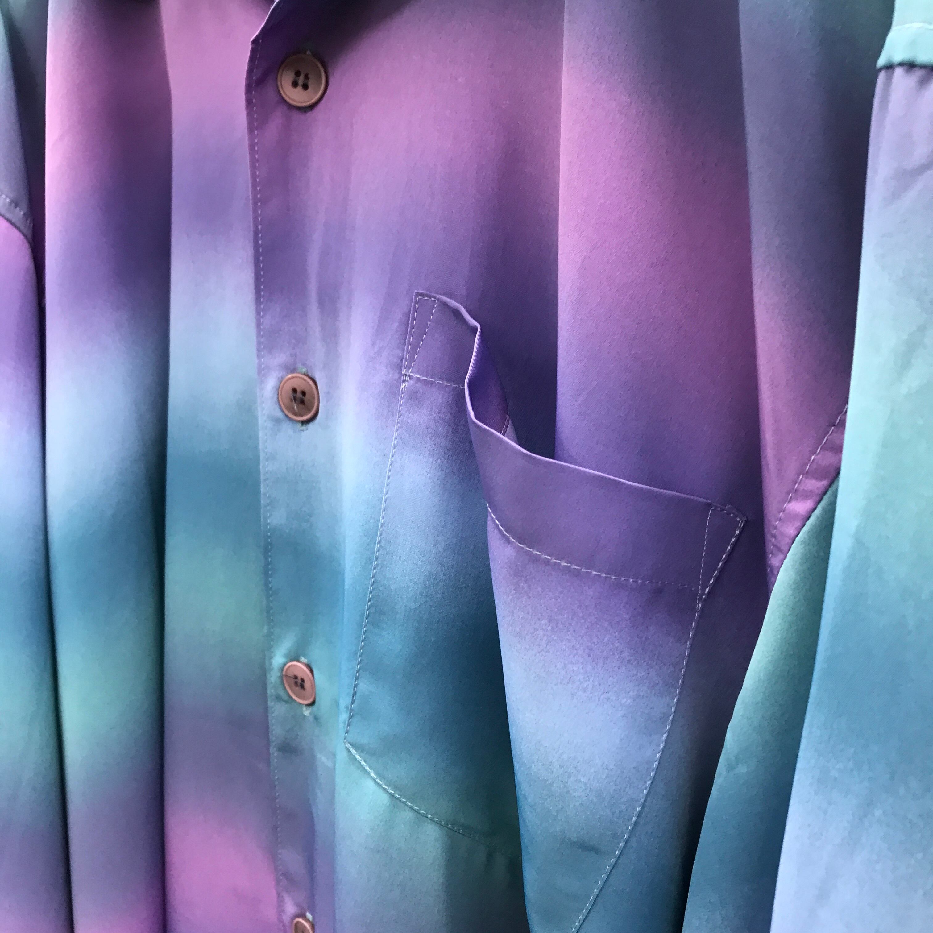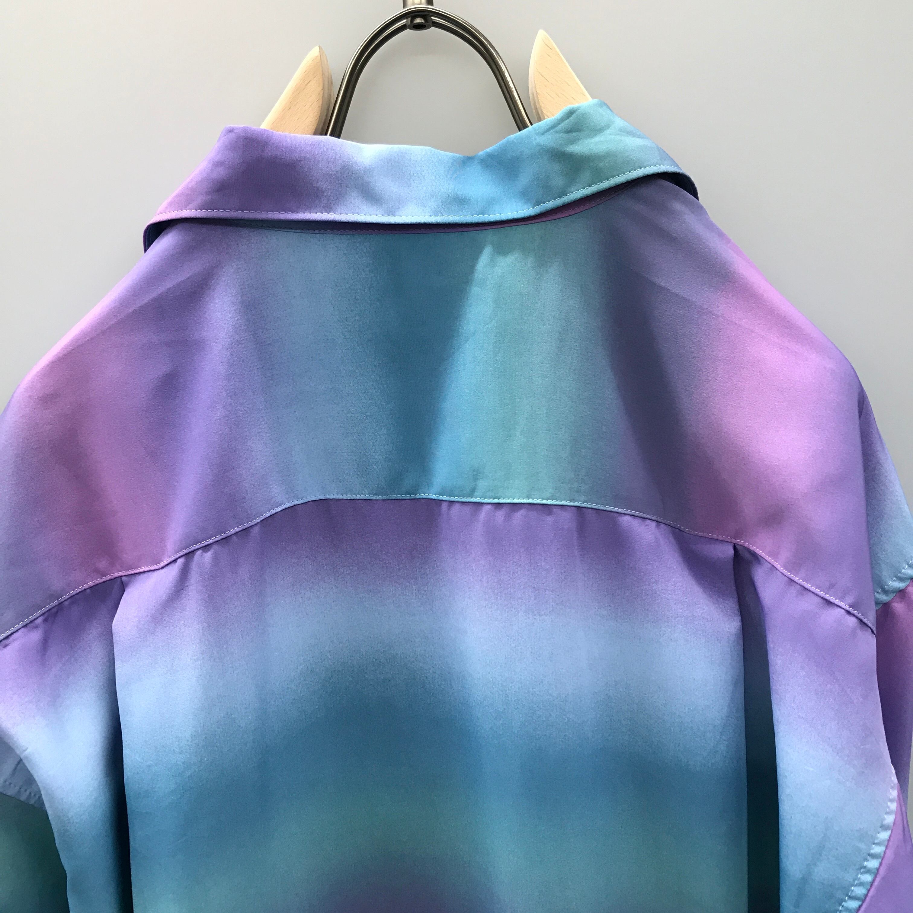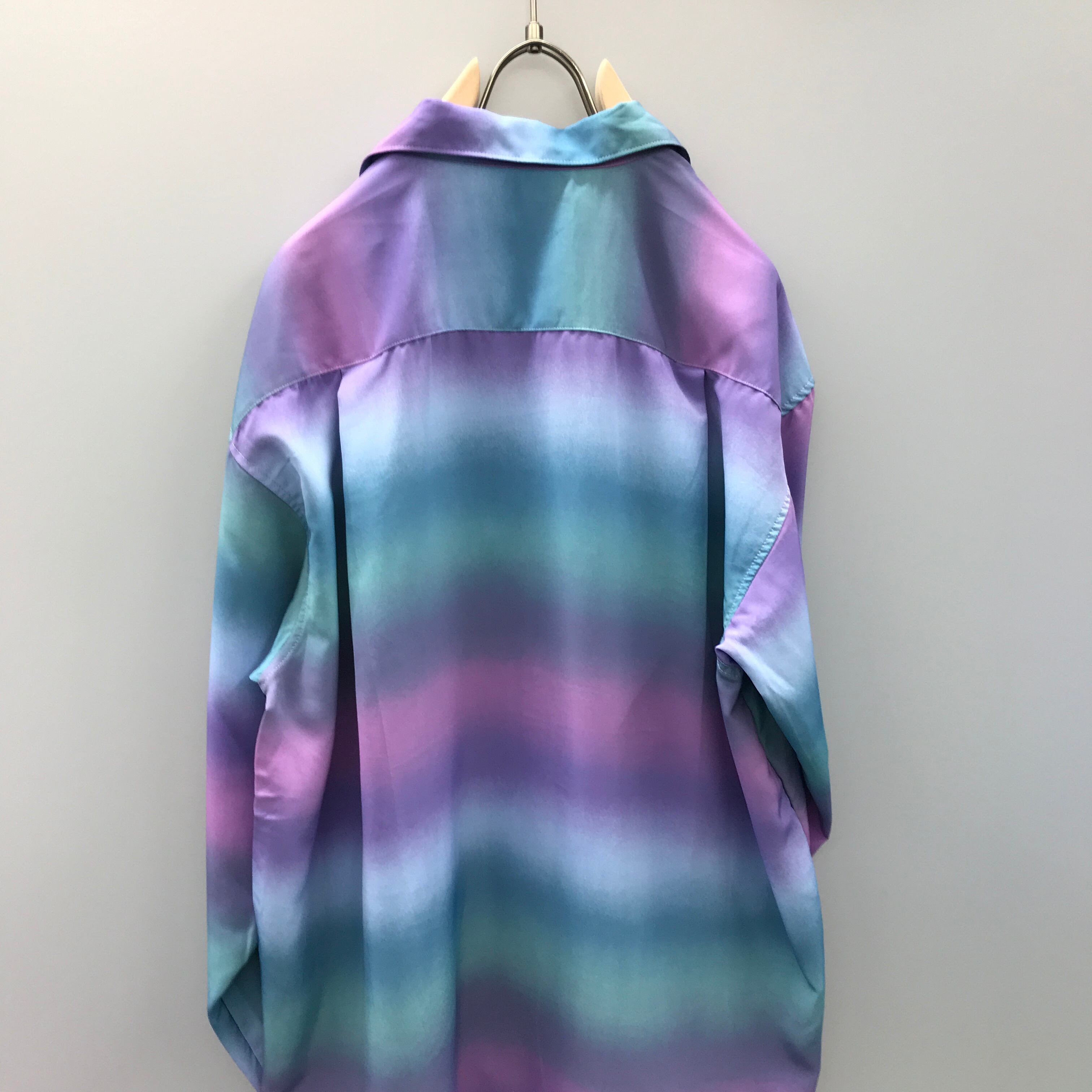 80年代 総柄 JPN ZEN-JAC パステルきれいな グラデーション柄 長袖 ポリエステル 柄シャツ