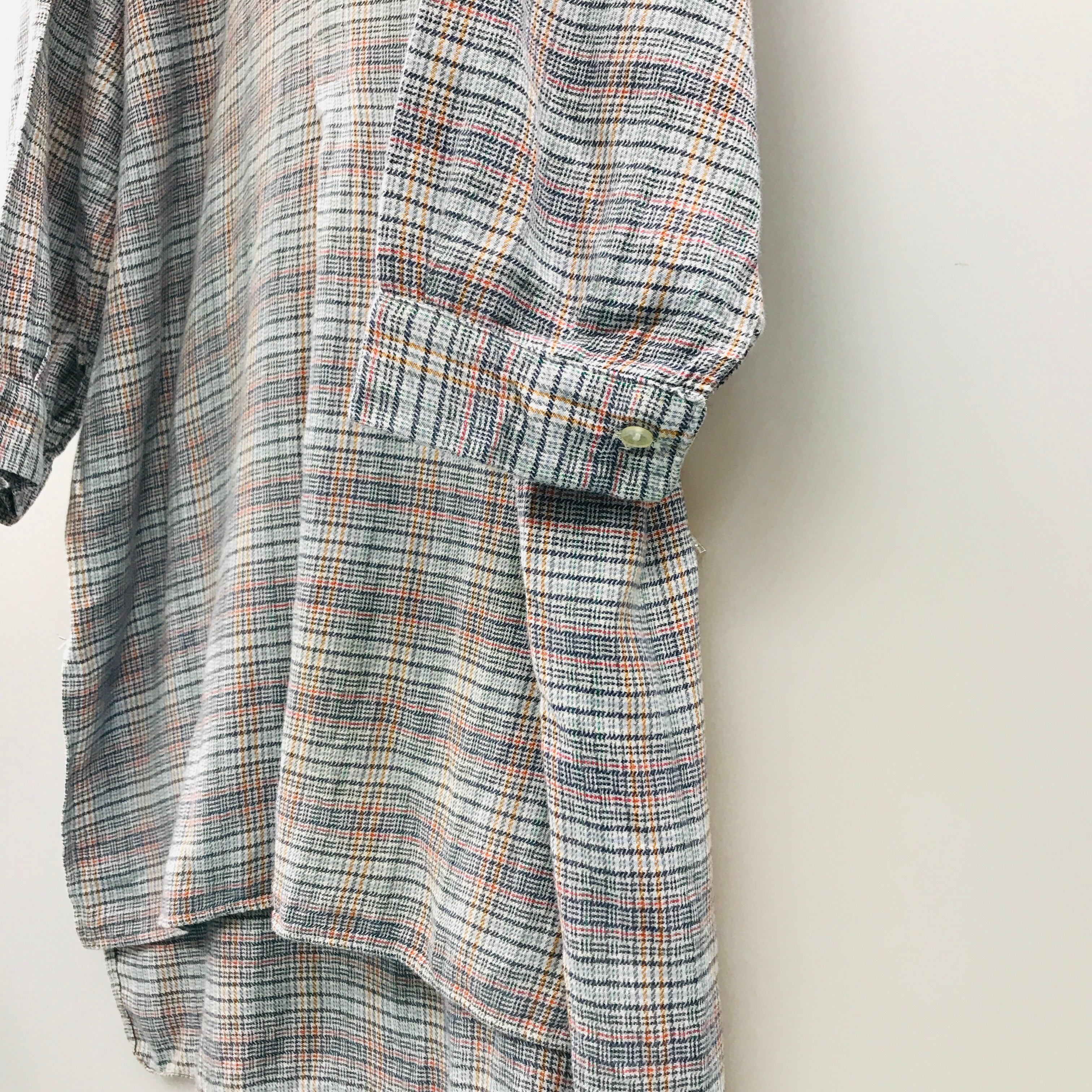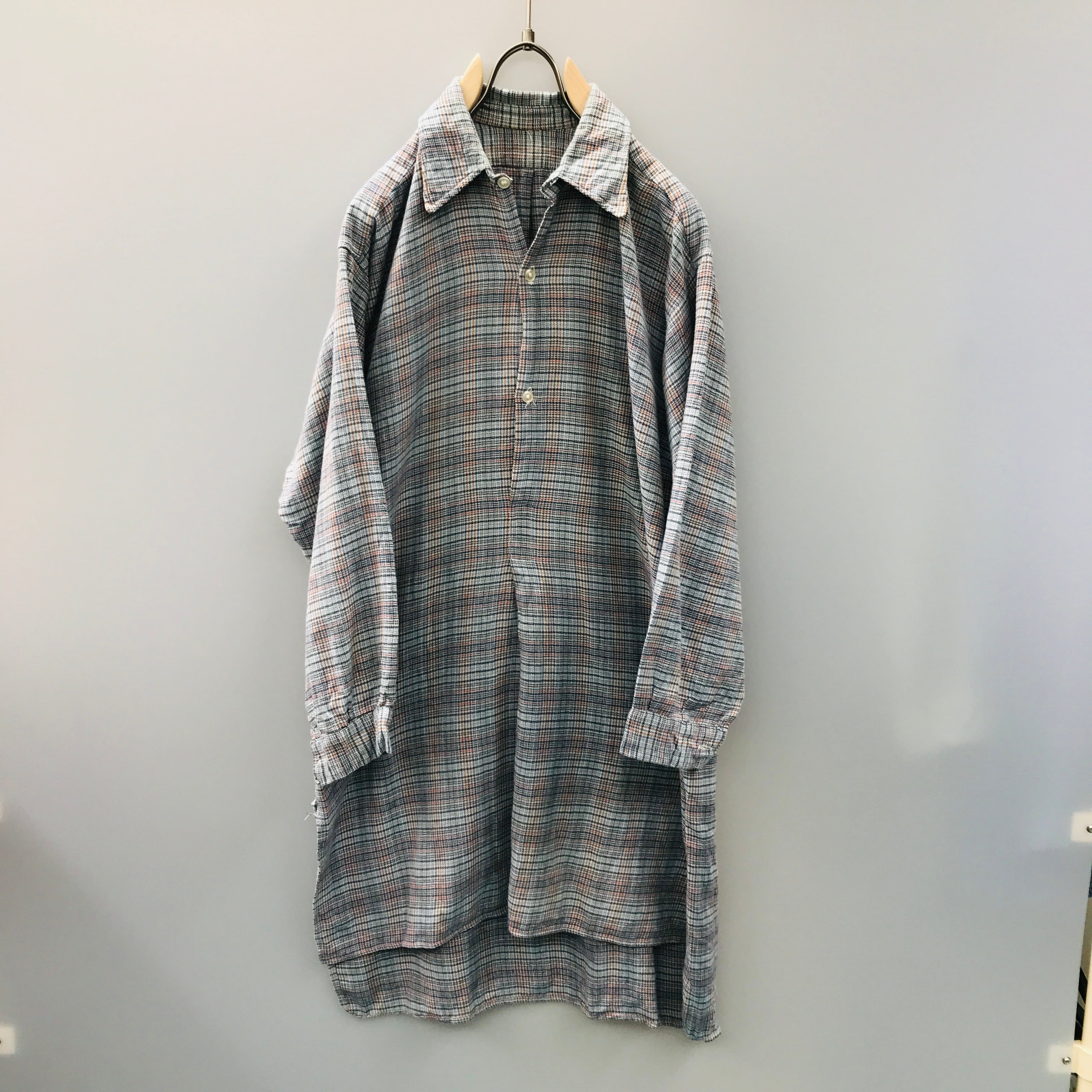 50年代前後 ユーロ ヴィンテージ コットンライトネル プルオーバー グランパシャツ マチ付き グリーンチェック