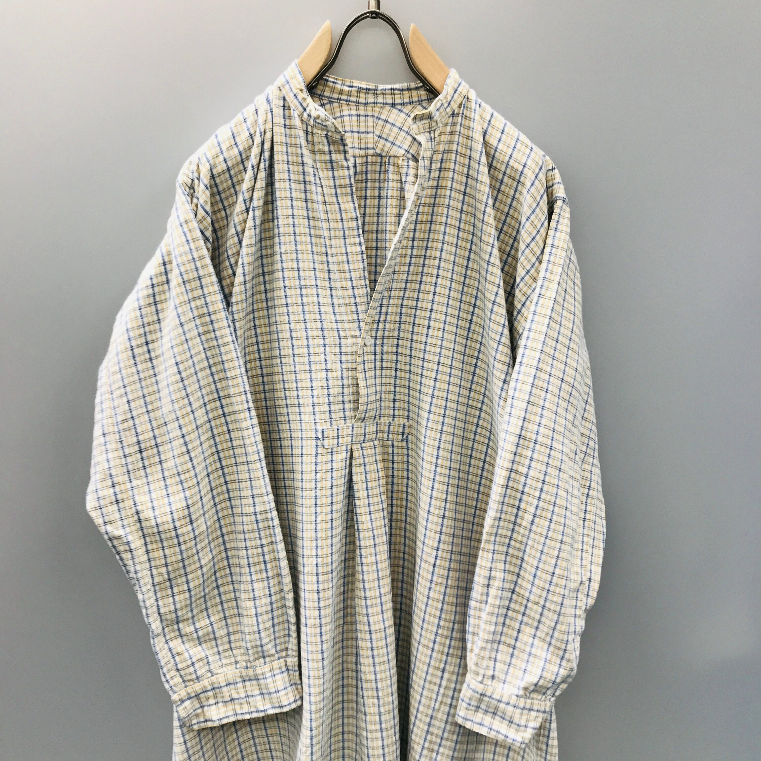 60年代前後 ユーロ ヴィンテージ コットンライトネル プルオーバー グランパシャツ クリームチェック