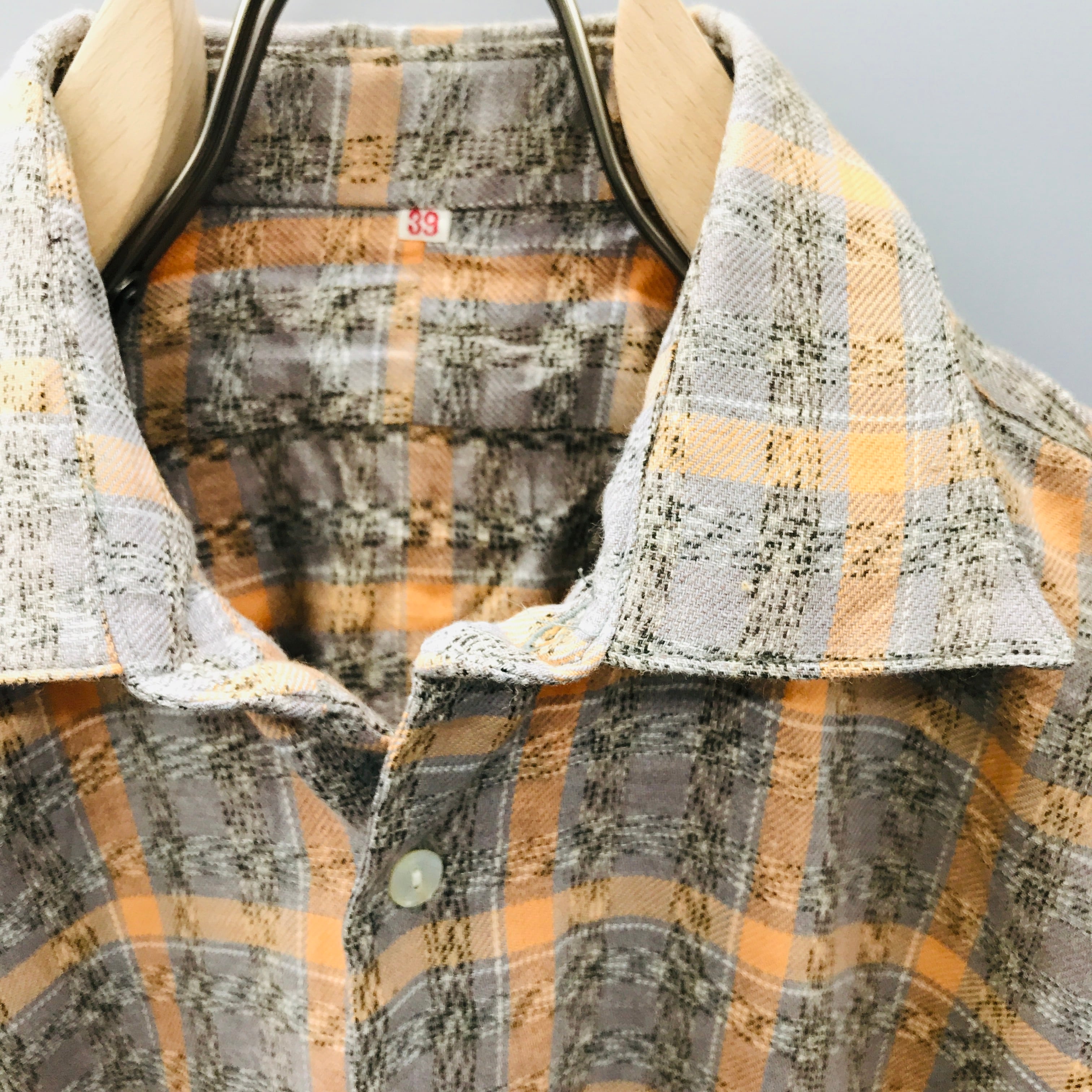 50年代前後 ユーロ ヴィンテージ デッドストックコットンプルオーバー グランパシャツ マチ付き ジャガードオレンジチェック