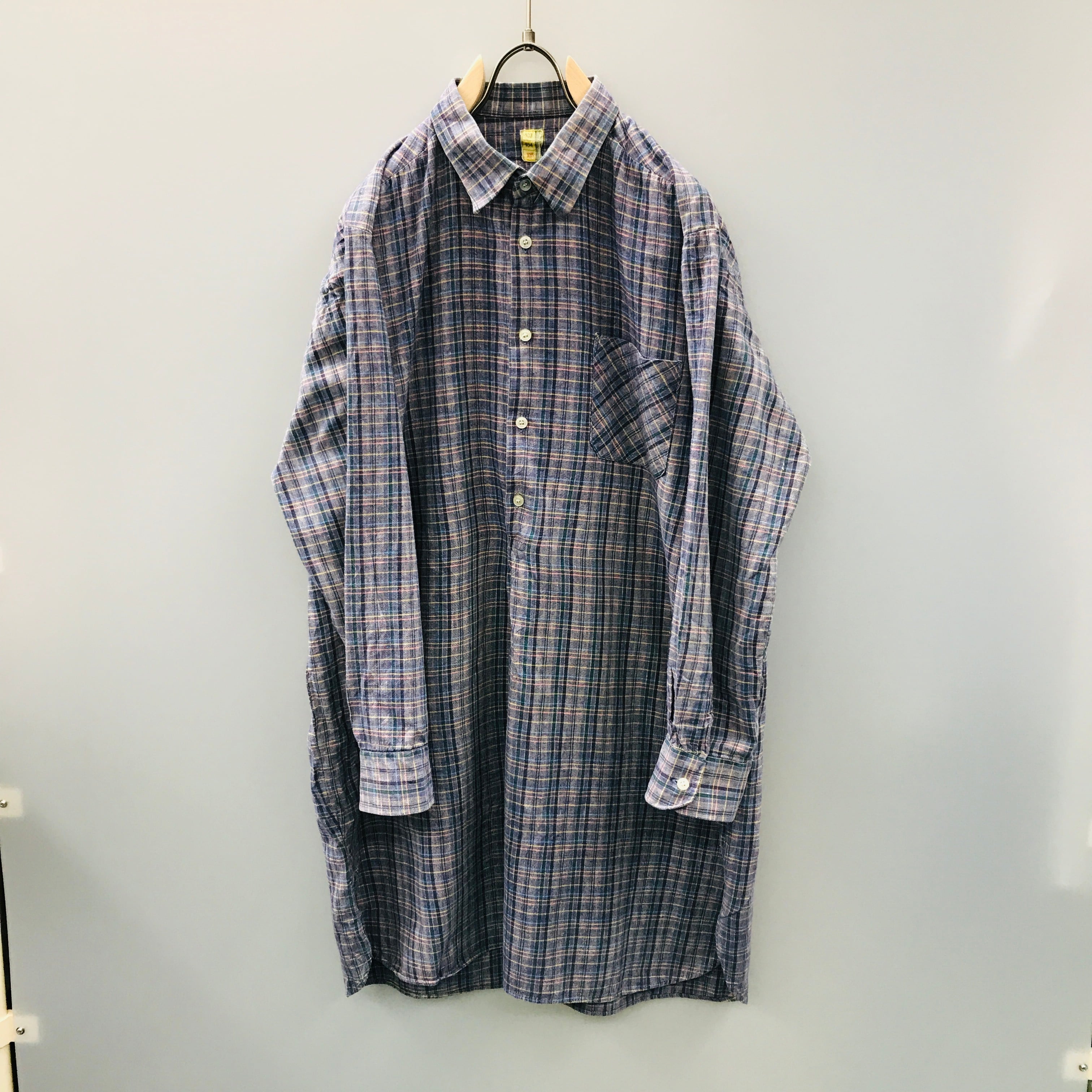 60年代前後 ドイツ GERMANY ユーロ ヴィンテージ コットンプルオーバー グランパシャツ パープルチェック