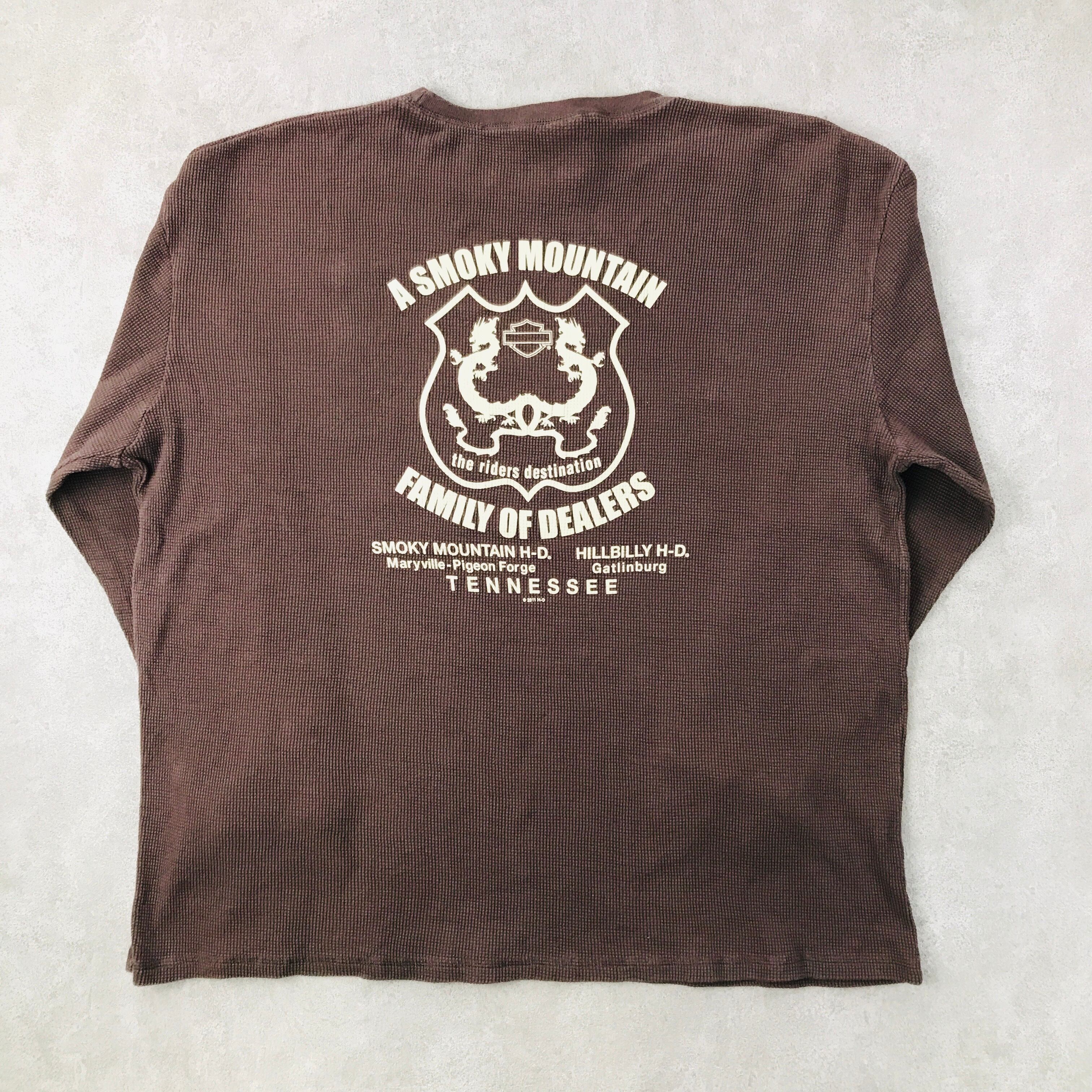00年代 ハーレーダビッドン A SMOKY MOUNTAIN H-D TENESEE HARLEY-DAVIDSO 長袖Tシャツ サーマルロンT モーターサイクル バイクTシャツ バイカー