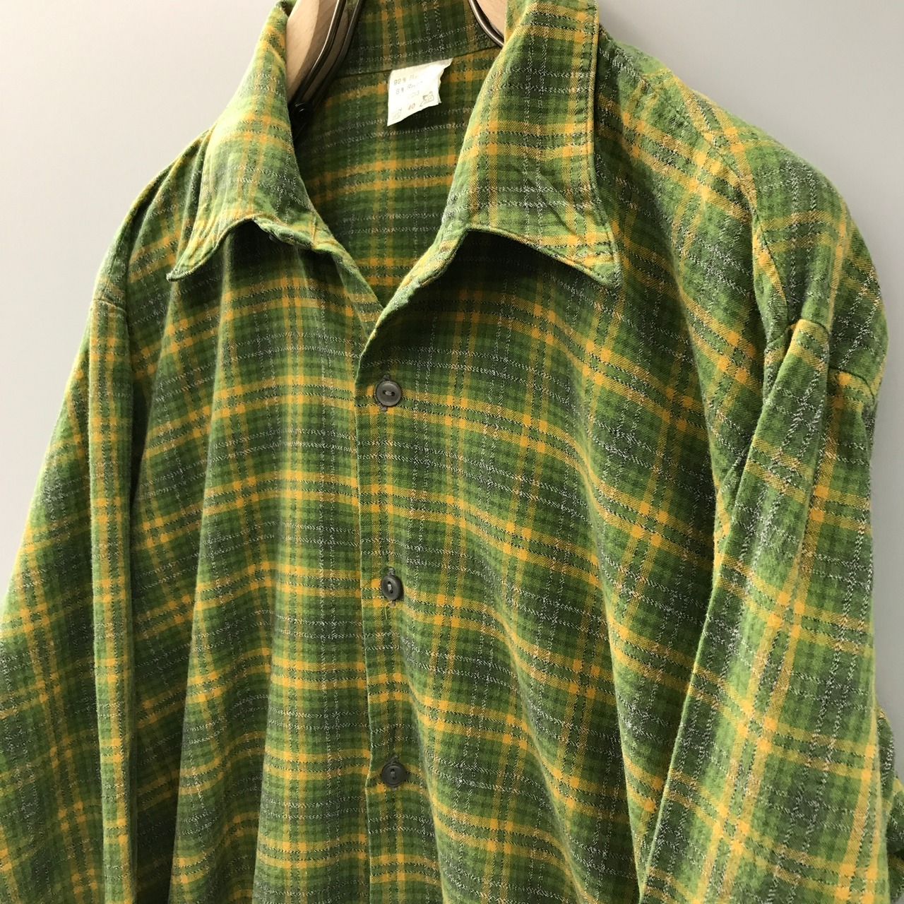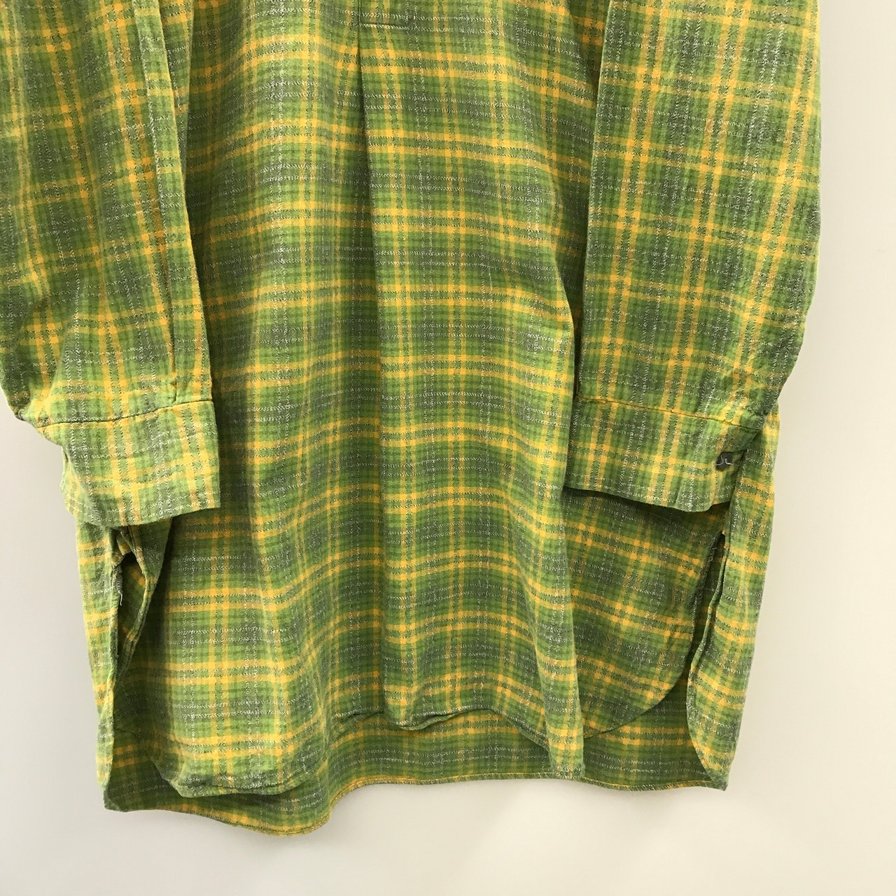 60年代前後ドイツ ユーロ ヴィンテージ プルオーバー グランパシャツ マチ付き グリーン・イエロー レトロチェック