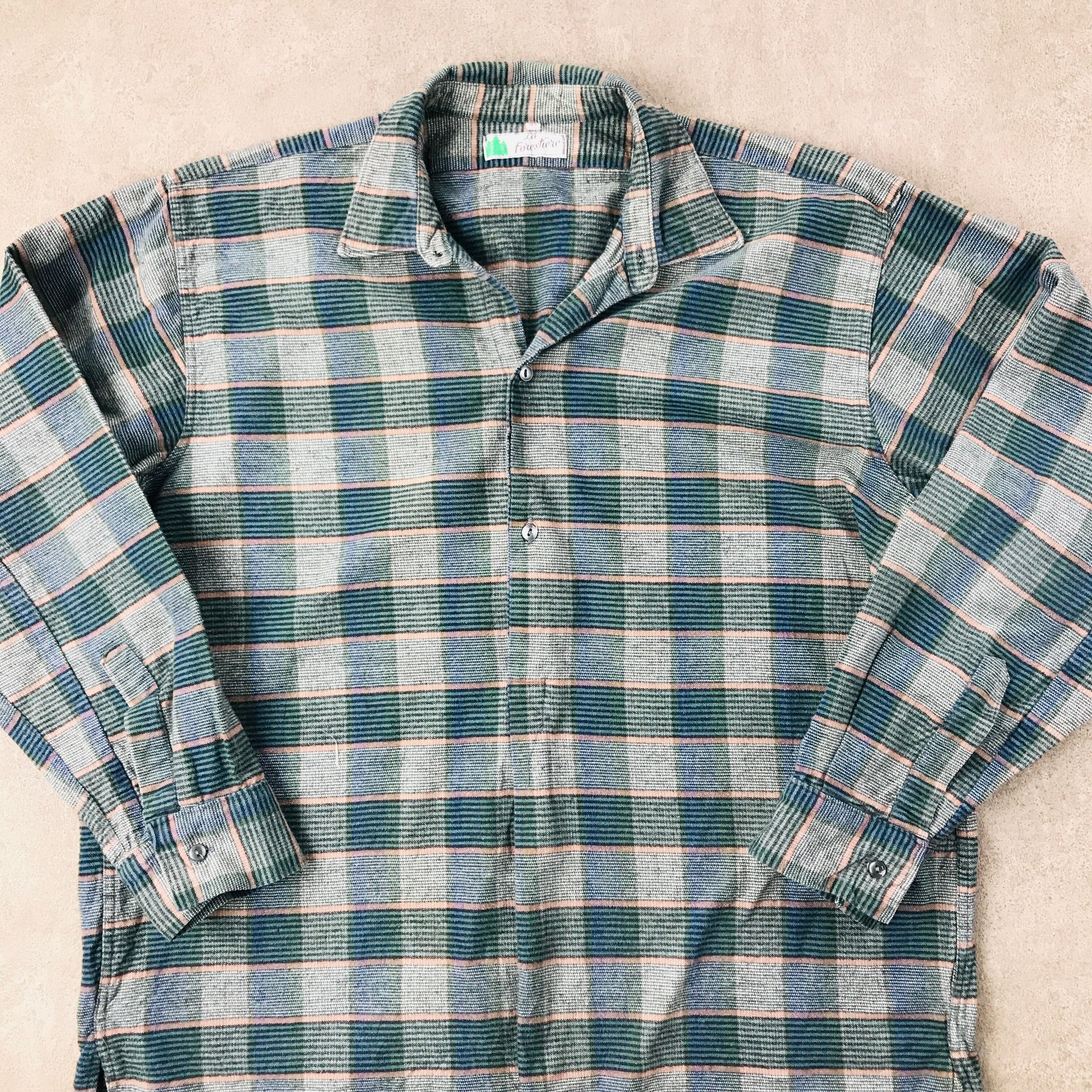 60年代前後 フランス製 La Forestiere ユーロヴィンテージ プルオーバー グランパシャツ マチ付き グリーンチェック