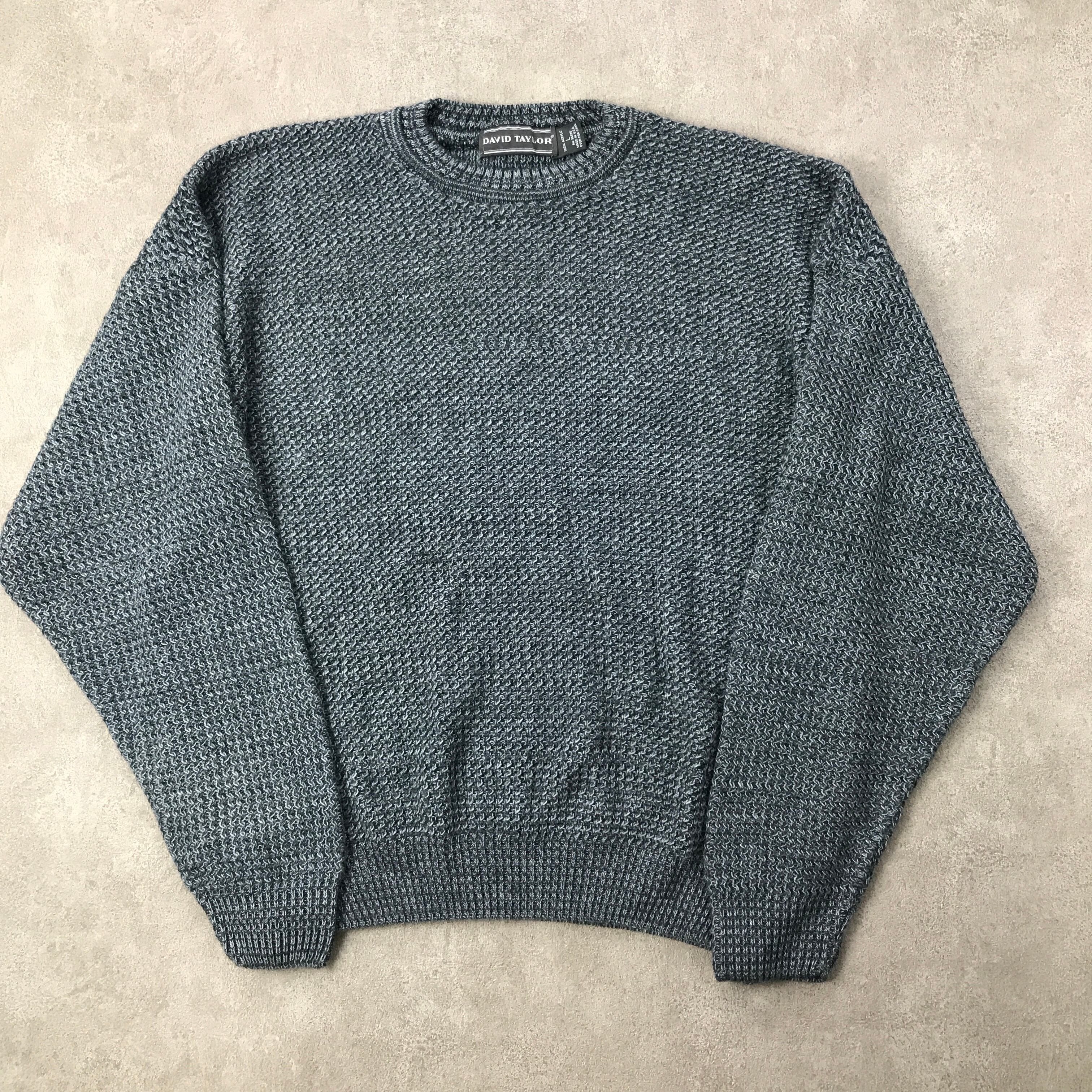 80年代 DAVID TAYLOR 米国製 ライトニット アクリルニット グレー