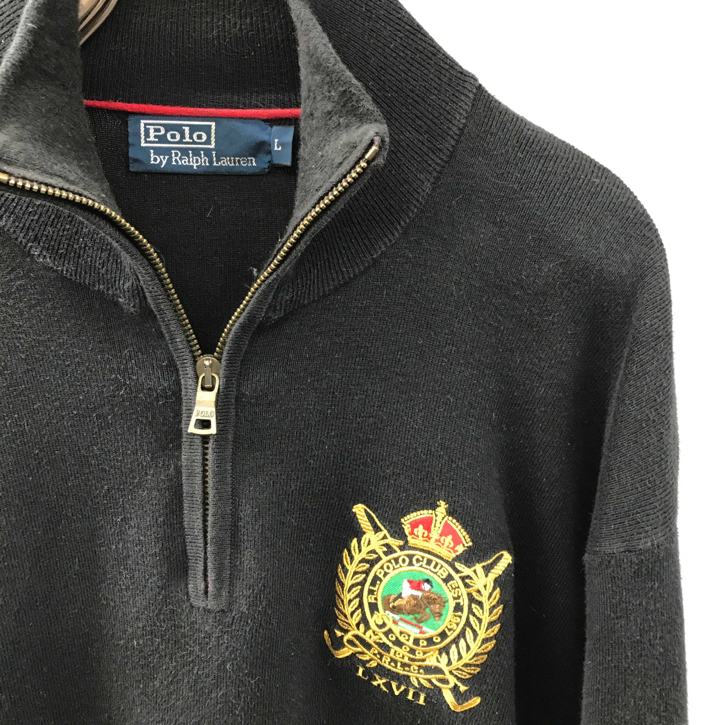 90年代 POLO by Ralph Lauren ポロバイ ラルフローレン POLO RETAIL EUROPE LTD ラルフローレン ヨーロッパ企画 ハーフジップ コットンセーター エンブレム付き ブラック