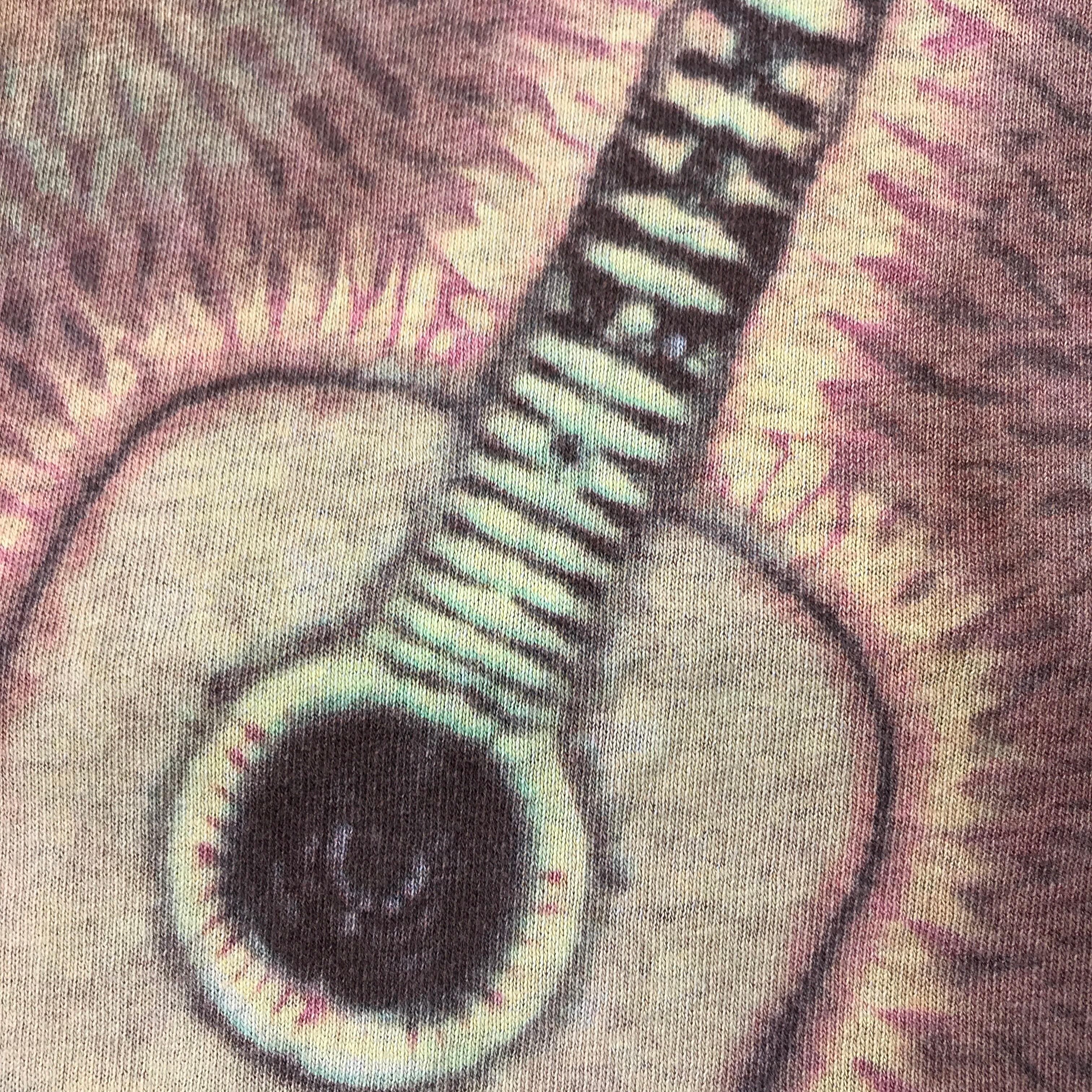 THE MOUNTAIN の ACOUSTIC GUITAR ギタープリント タイダイ染めTシャツです