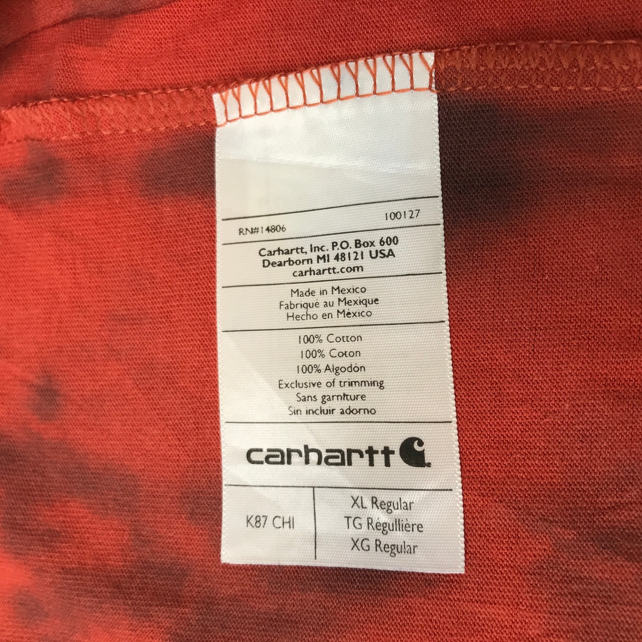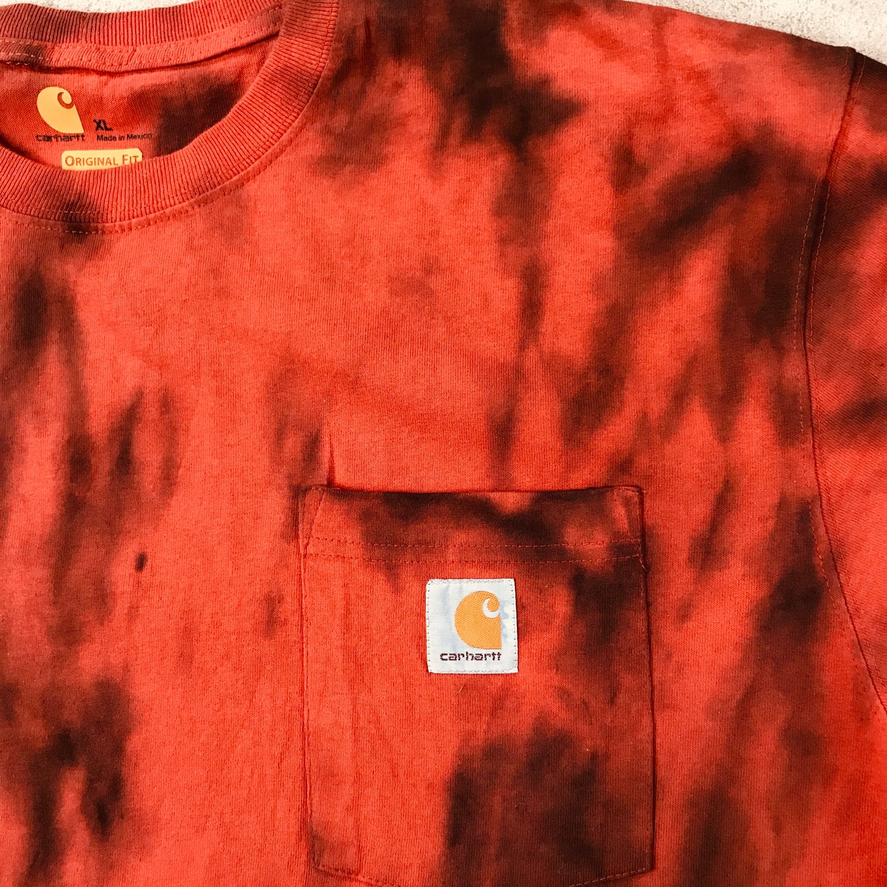 カーハート レア・タイダイCarhartt 「ORIGINAL FIT」 ワンポイントロゴ ポケットTシャツ ポケT 半袖 ブランド Tシャツ 胸ポケット コットン クルーネック バーミリオン サイズXL