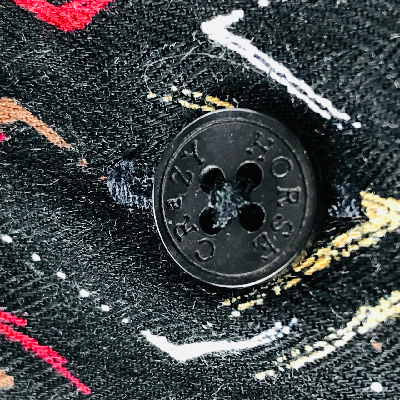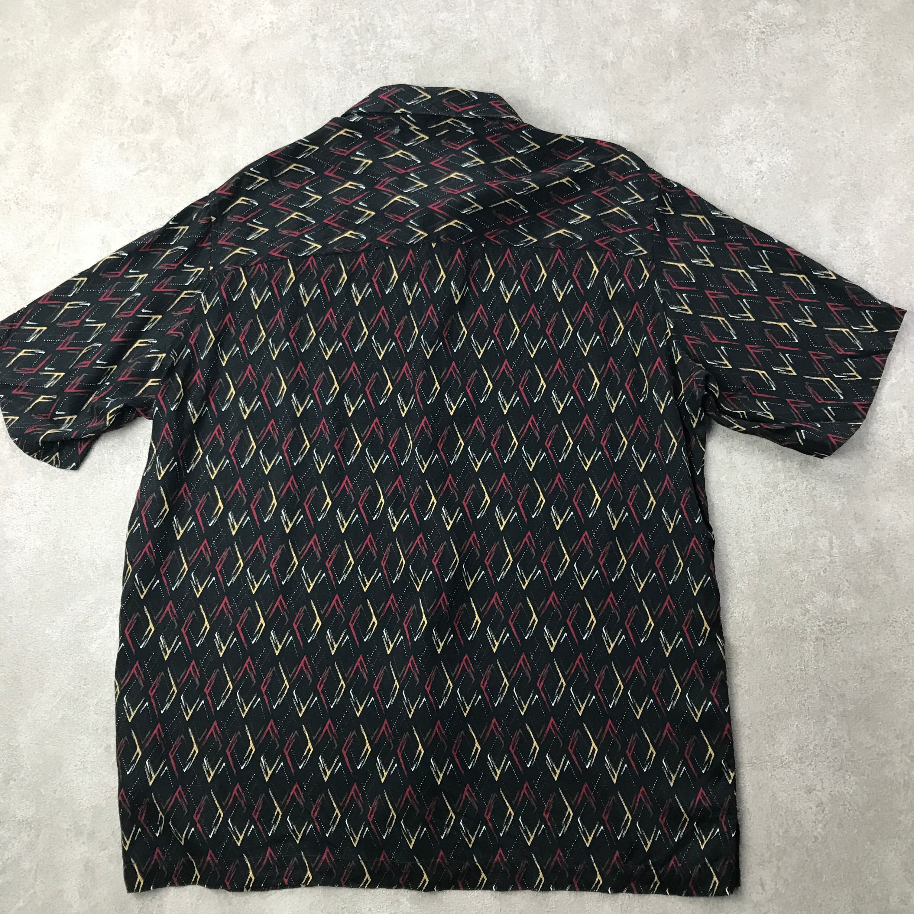 L 90年代 CRAZY HORSE 総柄 ひし形柄 半袖 レーヨン 柄シャツ ブラック