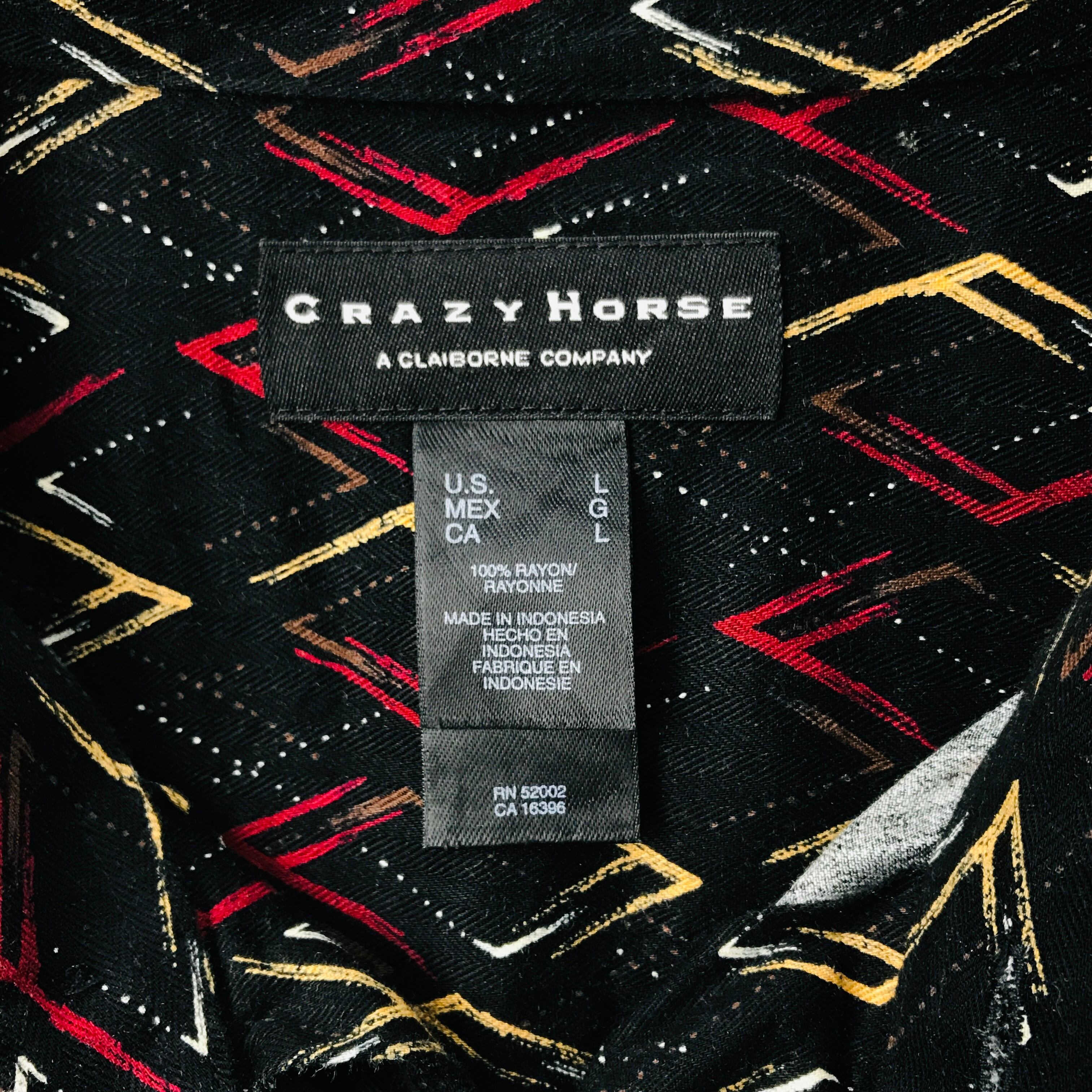 L 80年代 CRAZY HORSE 総柄 ひし形柄 半袖 レーヨン 柄シャツ ブラック