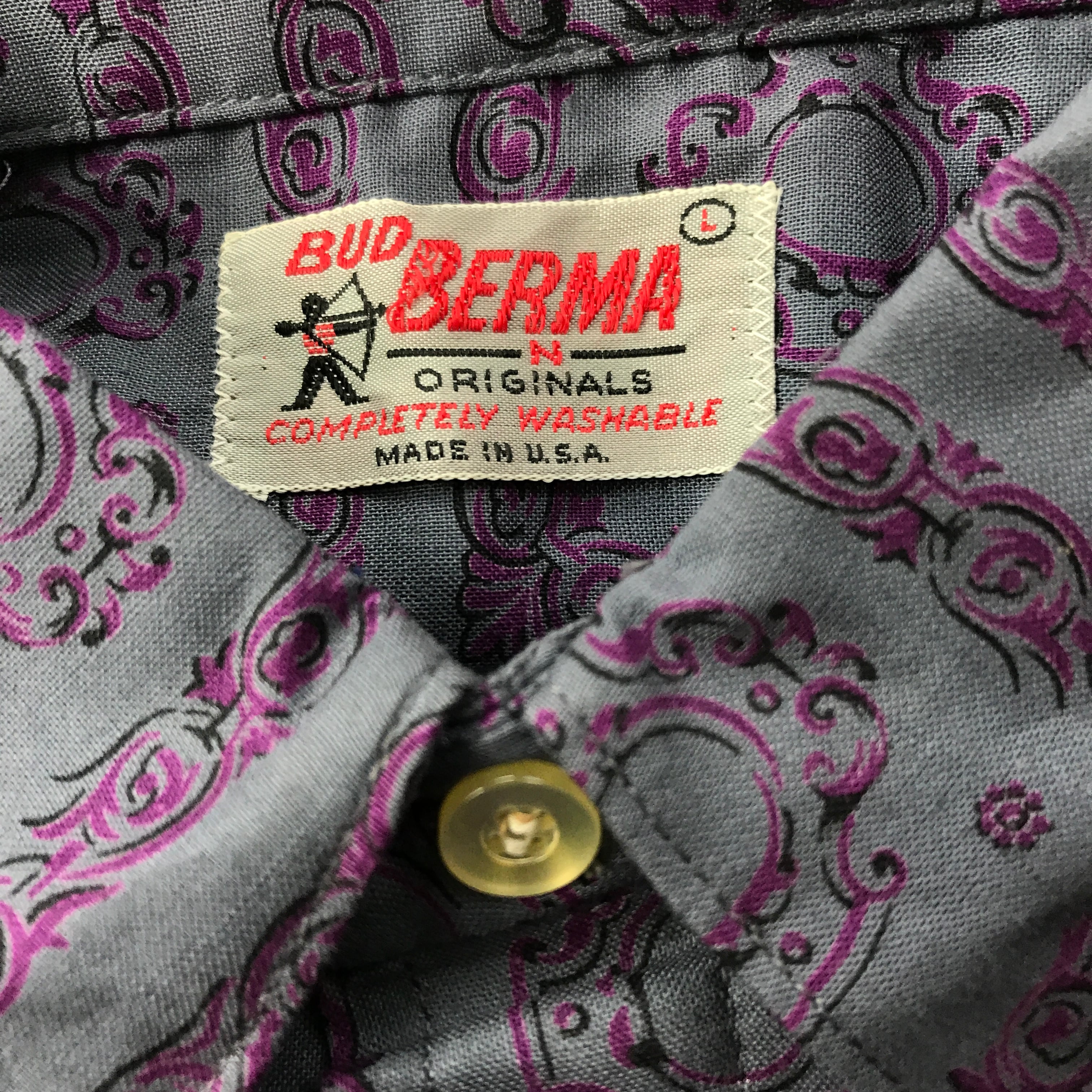 L 60年代 デッドストック米国製 BUD BERMA 総柄 レトロ柄 7分袖 コットン柄シャツ
