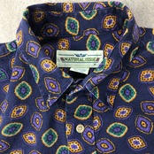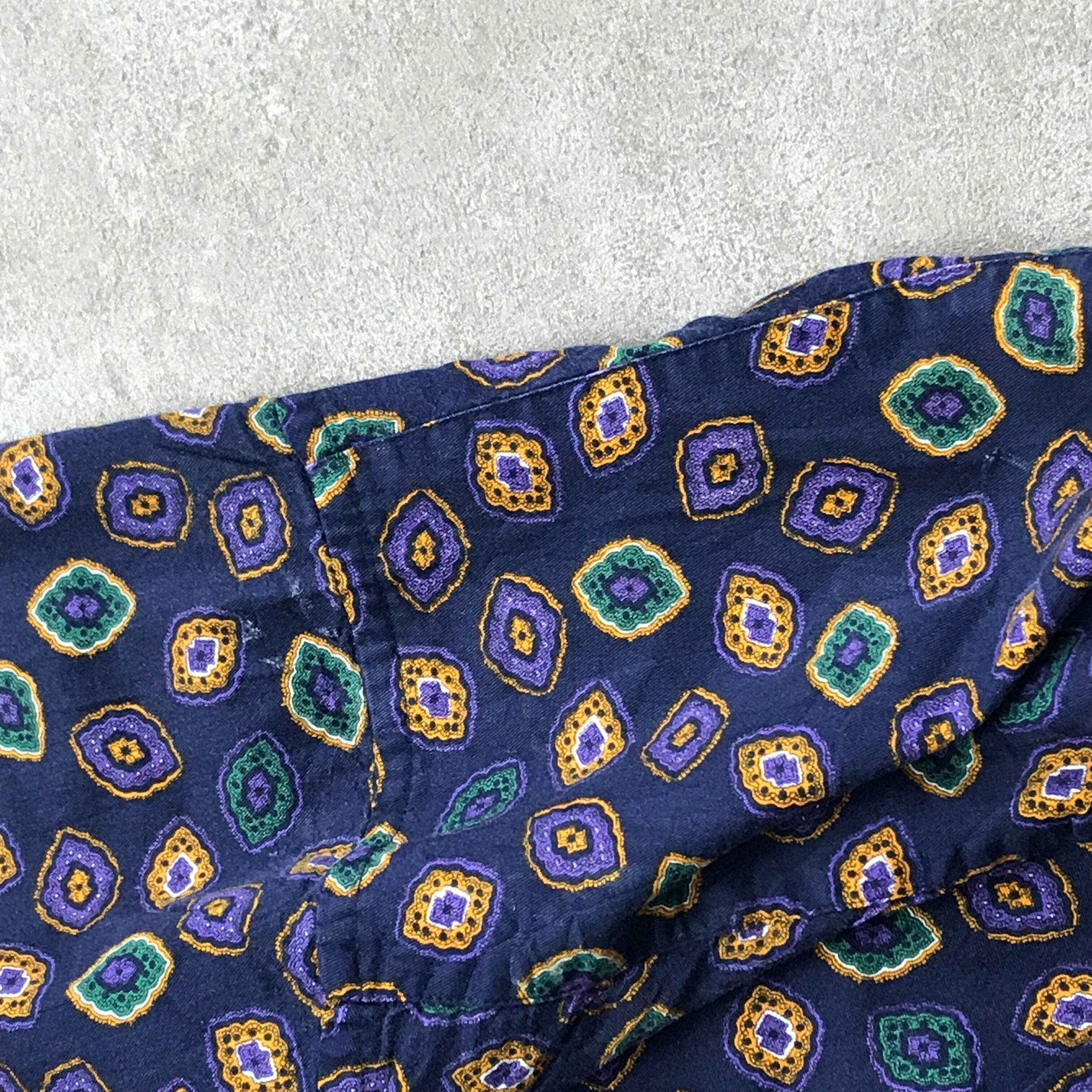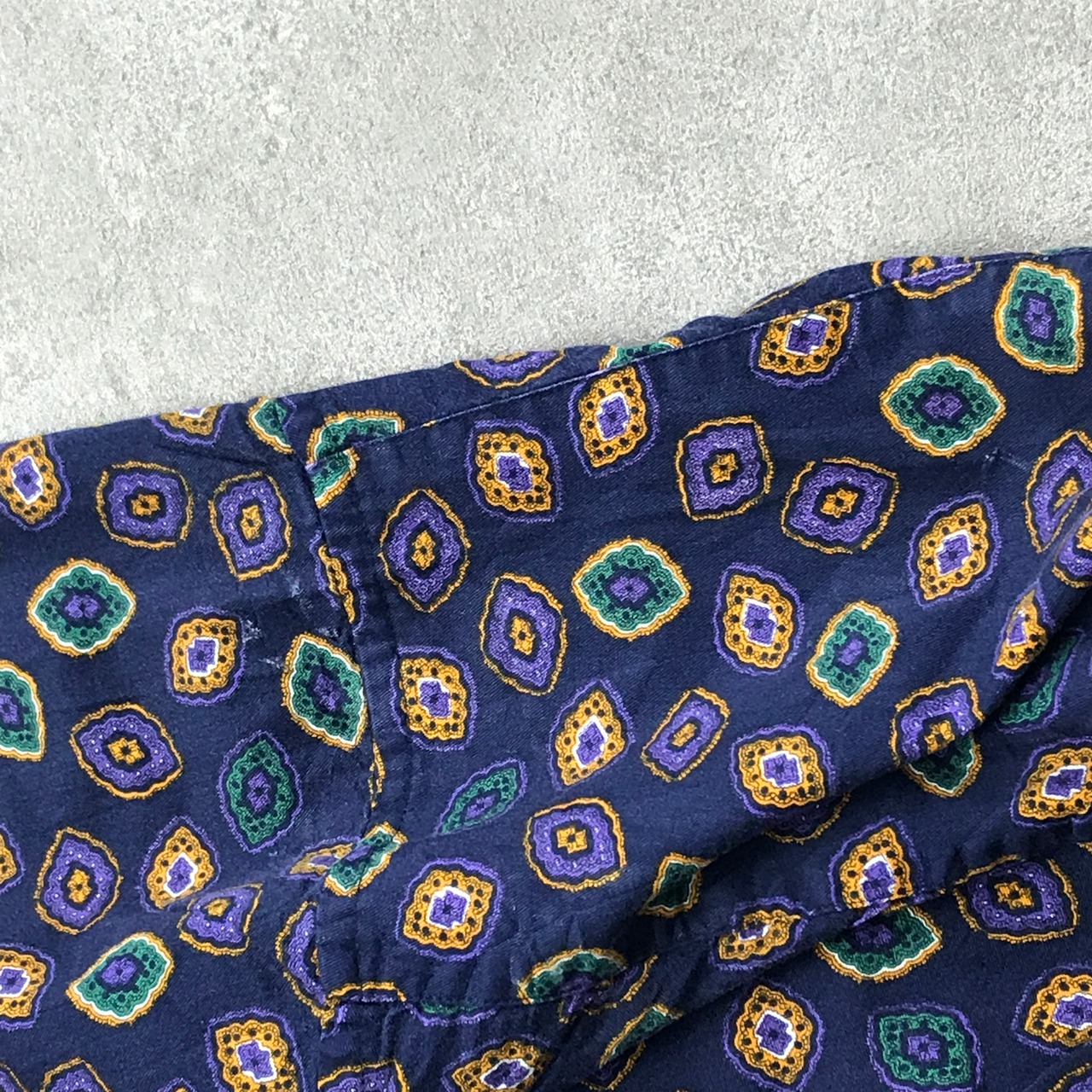 L 80年代 NATURAL ISSUE 総柄 柄 半袖 コットン 柄シャツ ネイビー