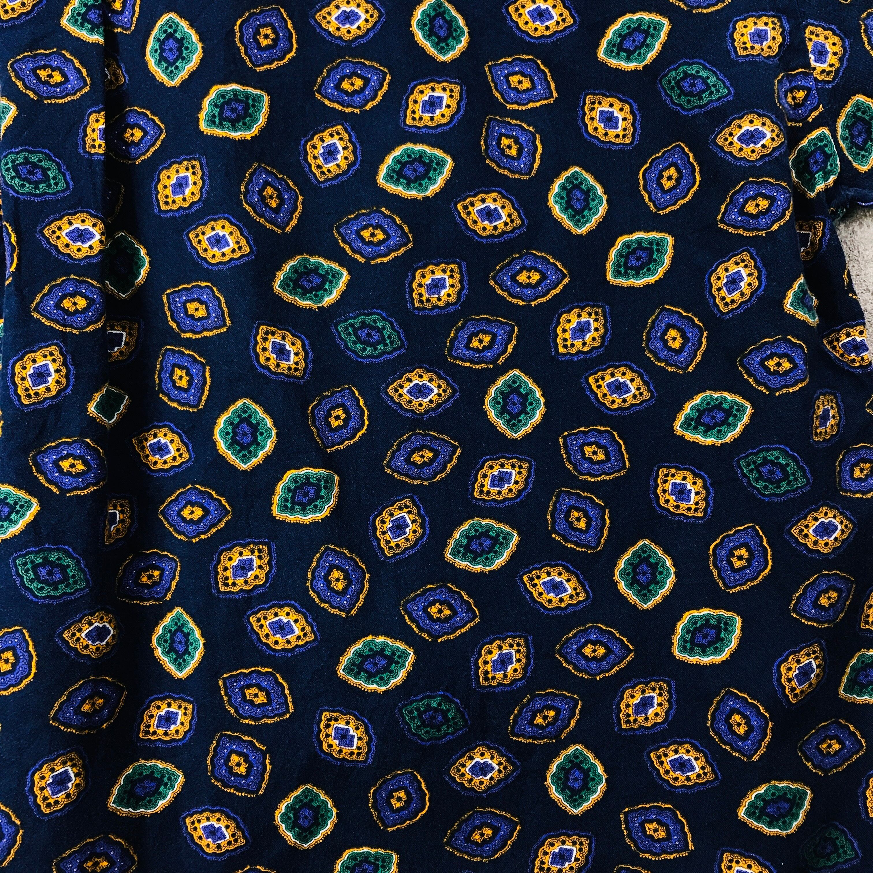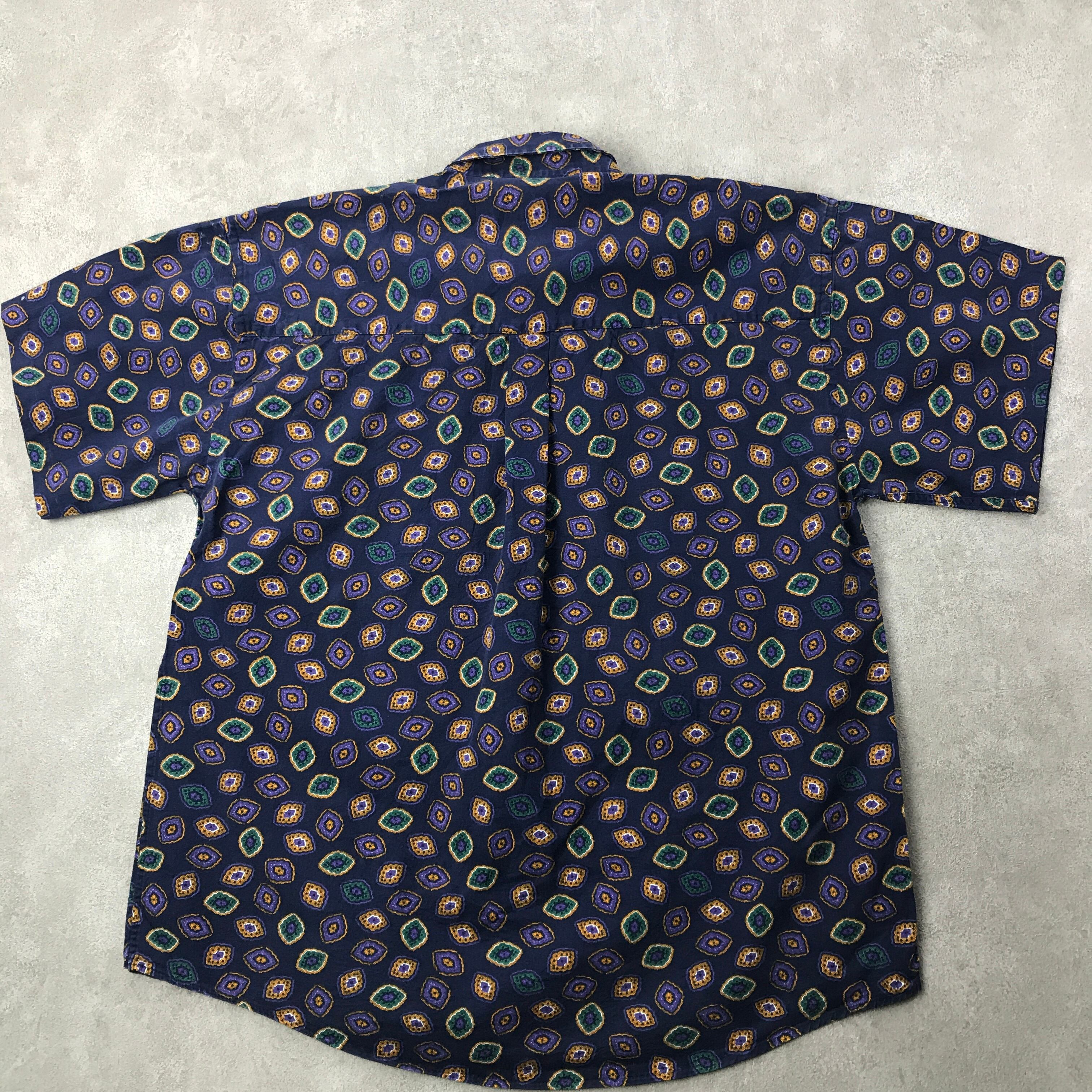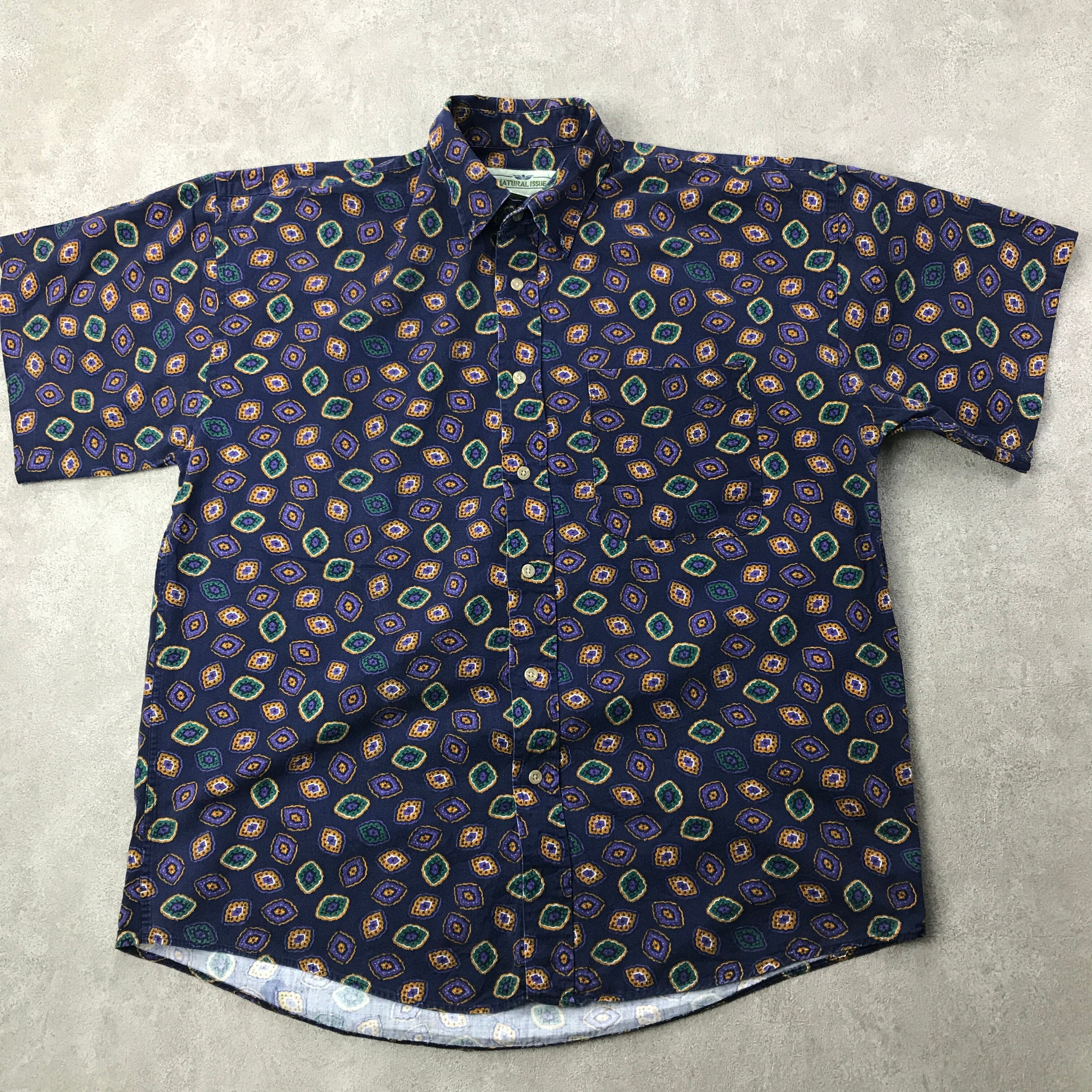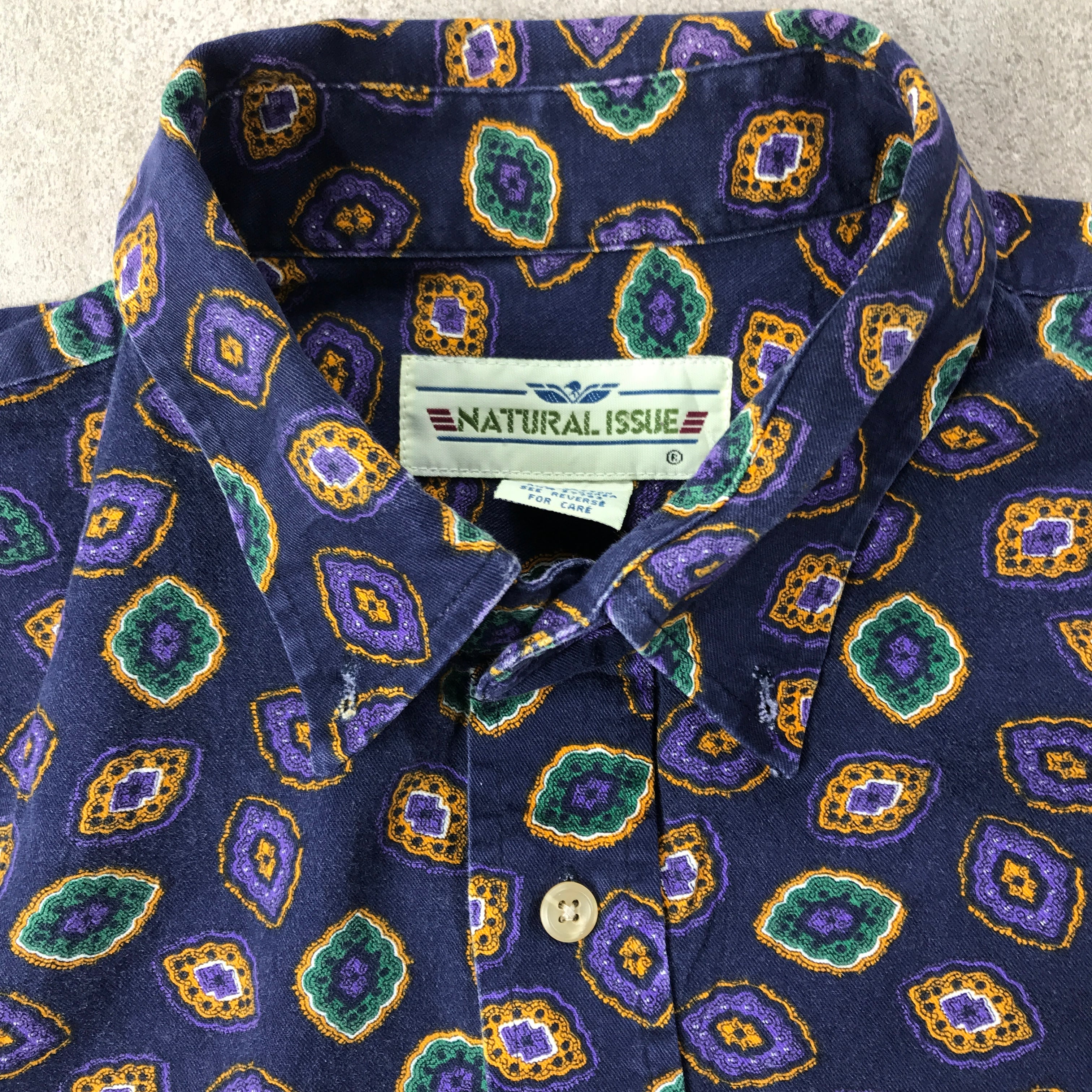 L 90年代 NATURAL ISSUE 総柄 柄 半袖 コットン 柄シャツ ネイビー