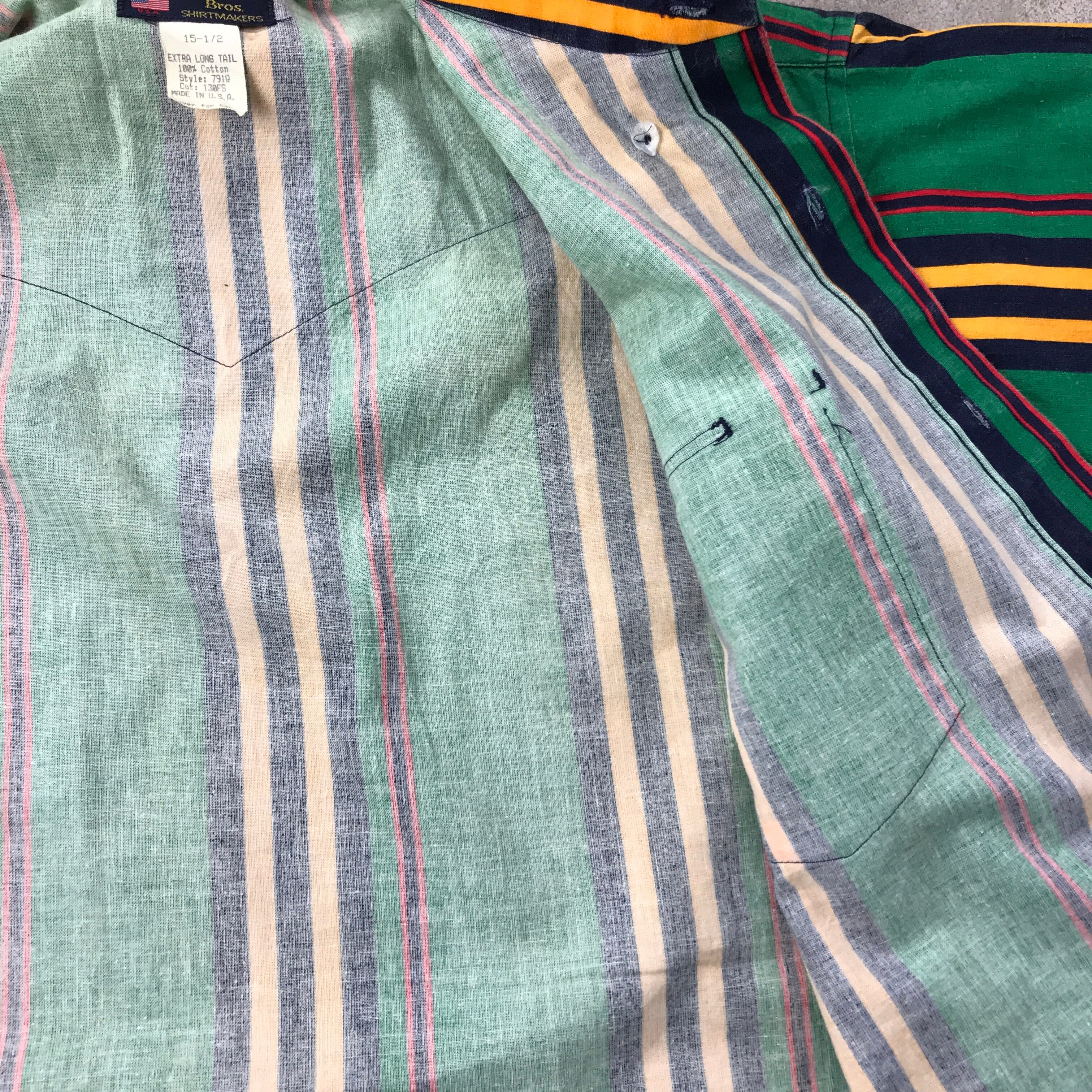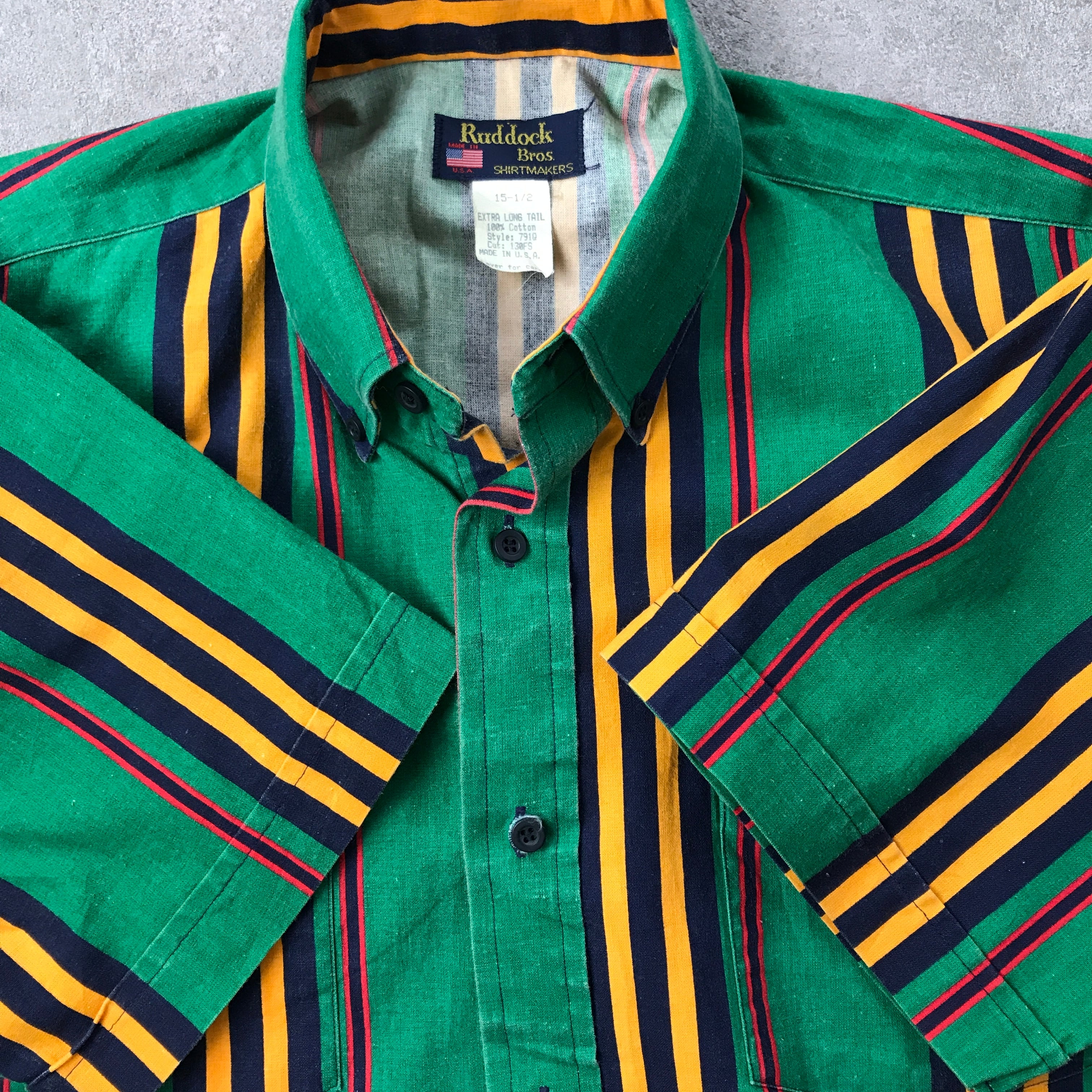 80年代 米国製 Ruddock Bros 太ストライプ柄 半袖 コットン ウエスタン調