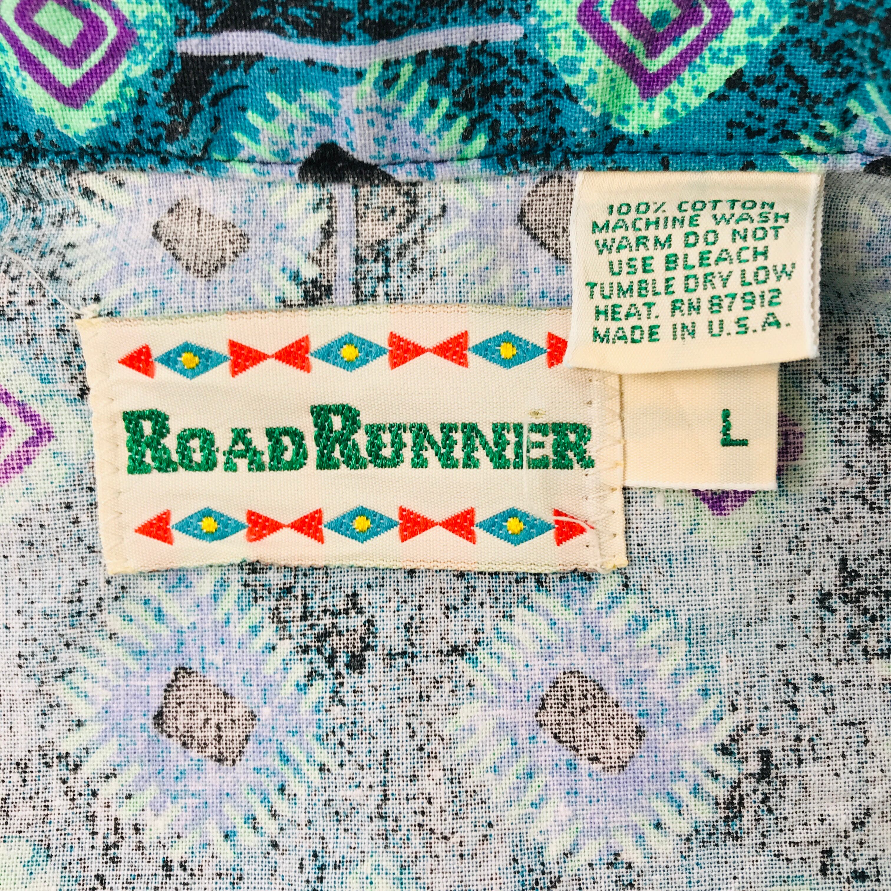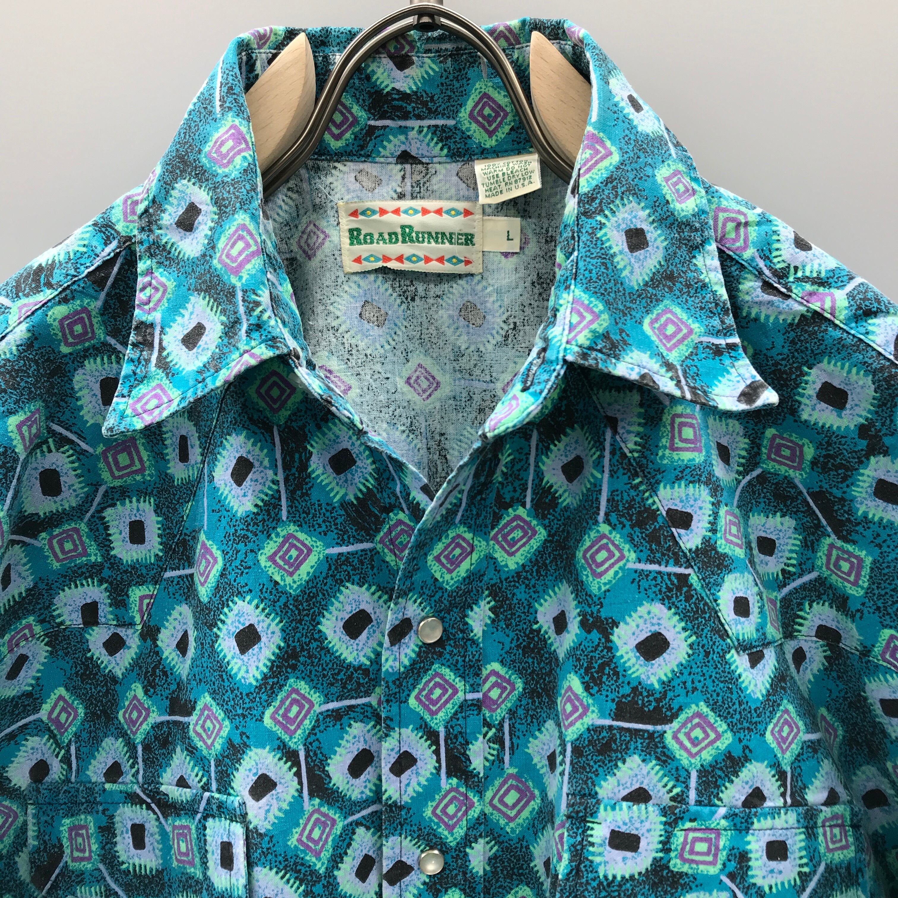L 80年代 米国製 ROAD RUNNER 80'S POP モノグラム柄 半袖 コットン ウエスタンシャツ MADE IN USA