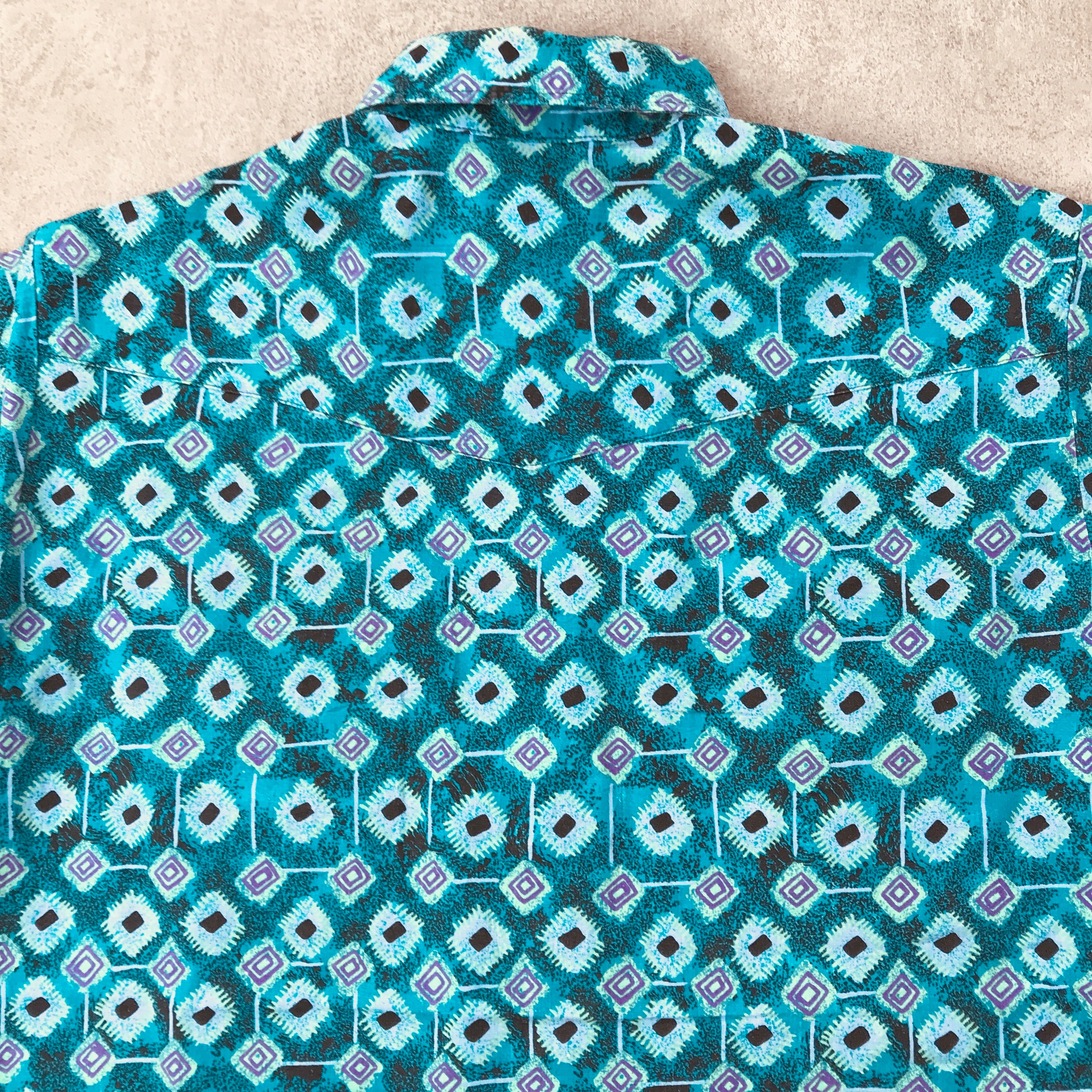 L 80年代 米国製 ROAD RUNNER 80'S POP モノグラム柄 半袖 コットン ウエスタンシャツ