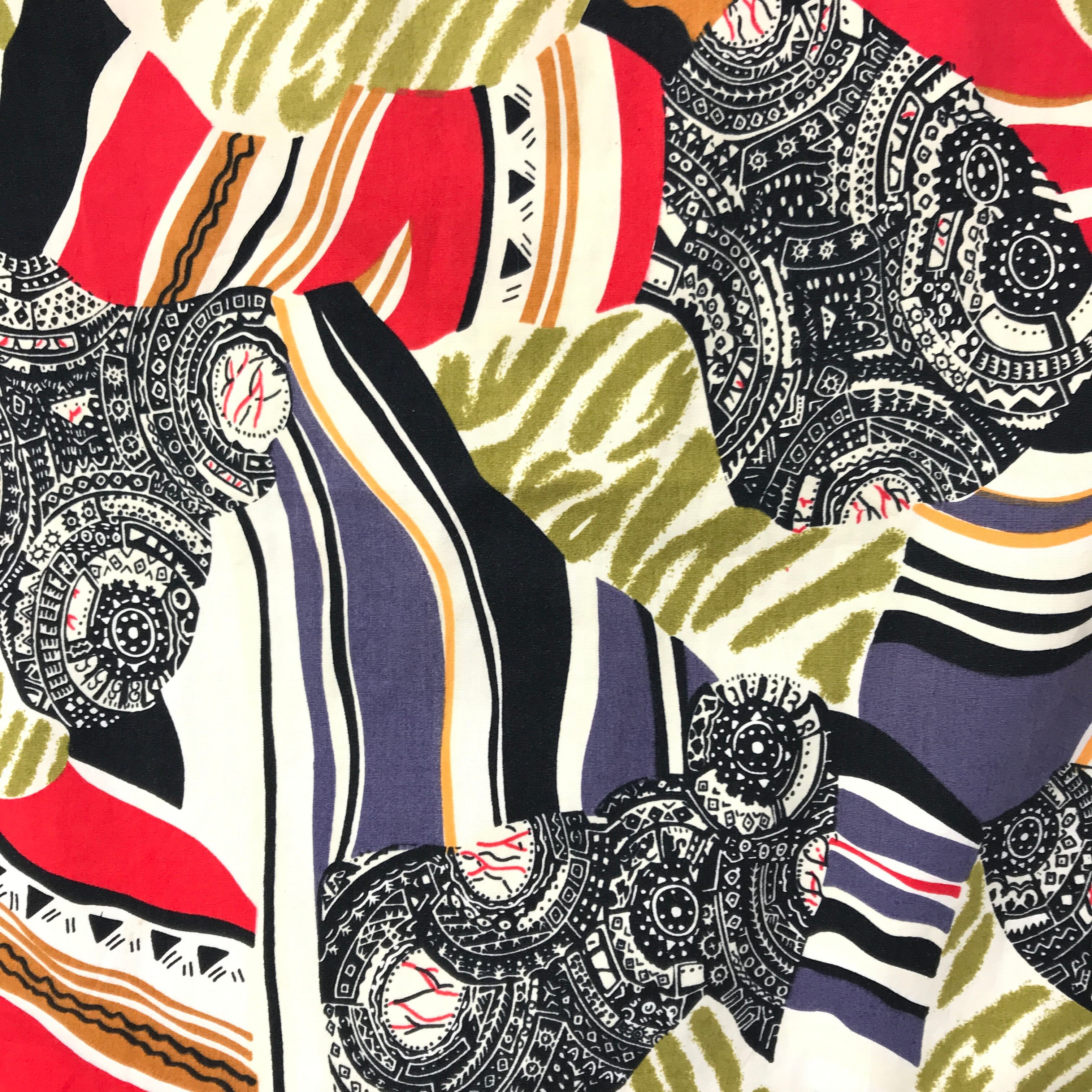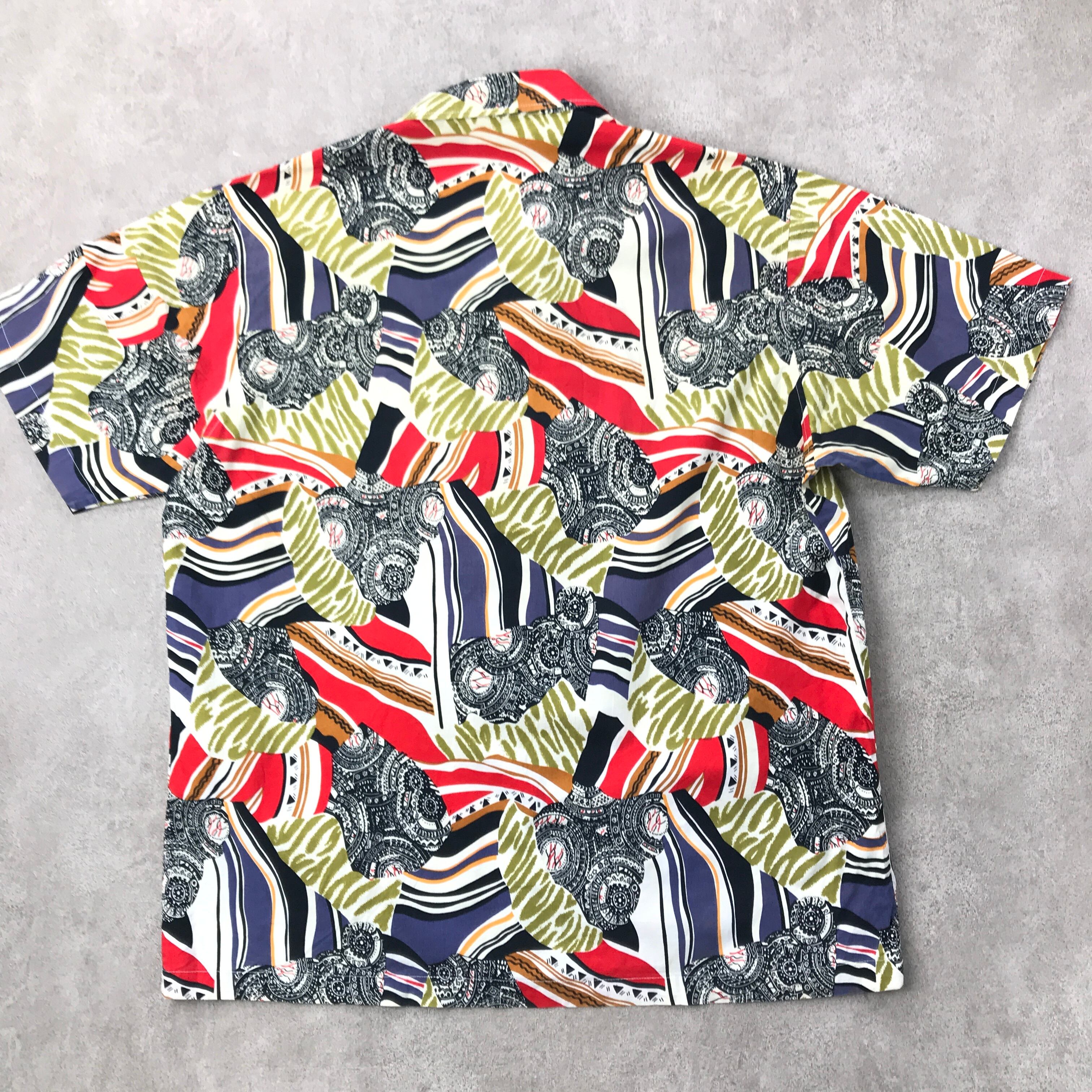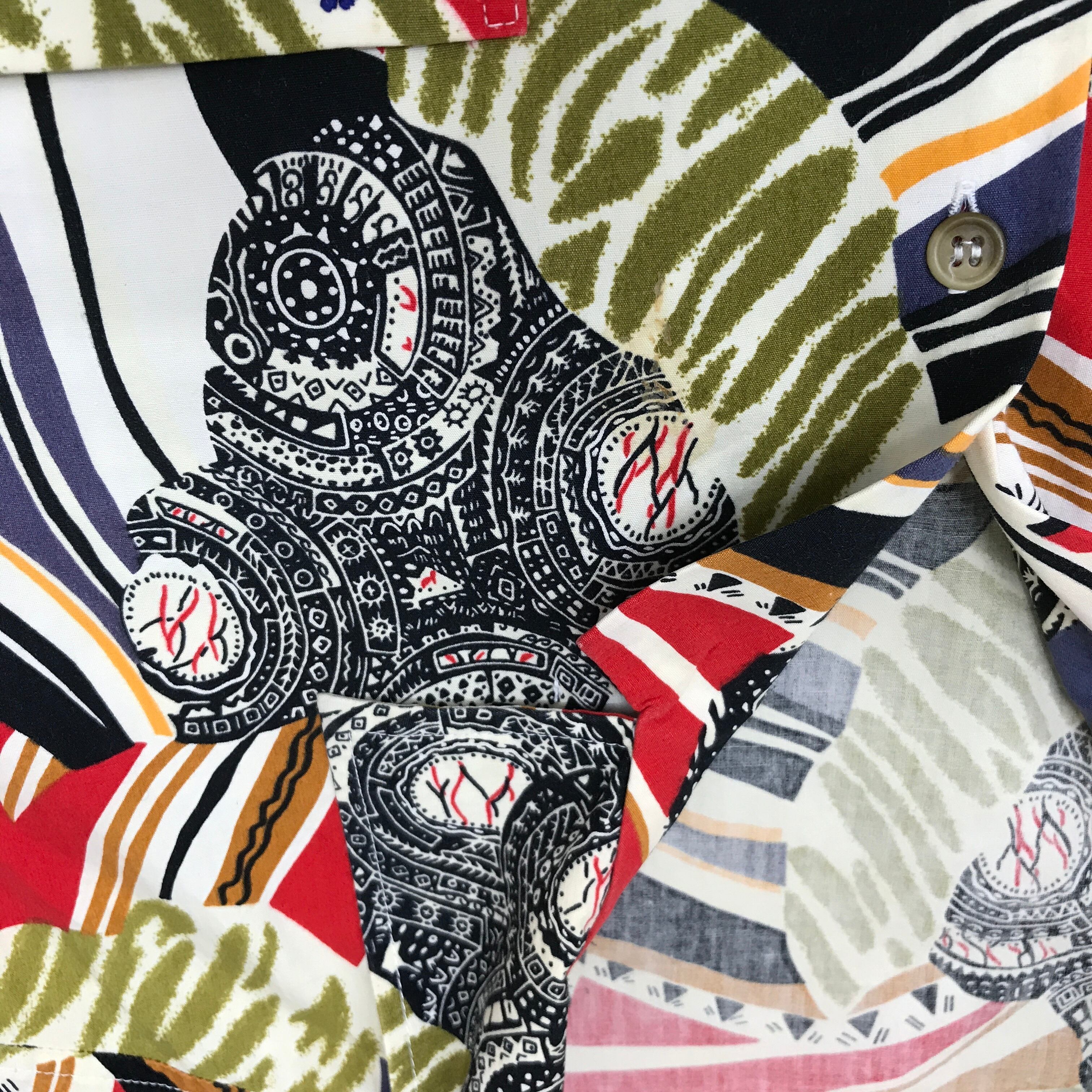80年代 HI-FIVE 総柄 CRAZY柄 半袖 コットン系 柄シャツ クレイジー柄 強烈・コラージュ