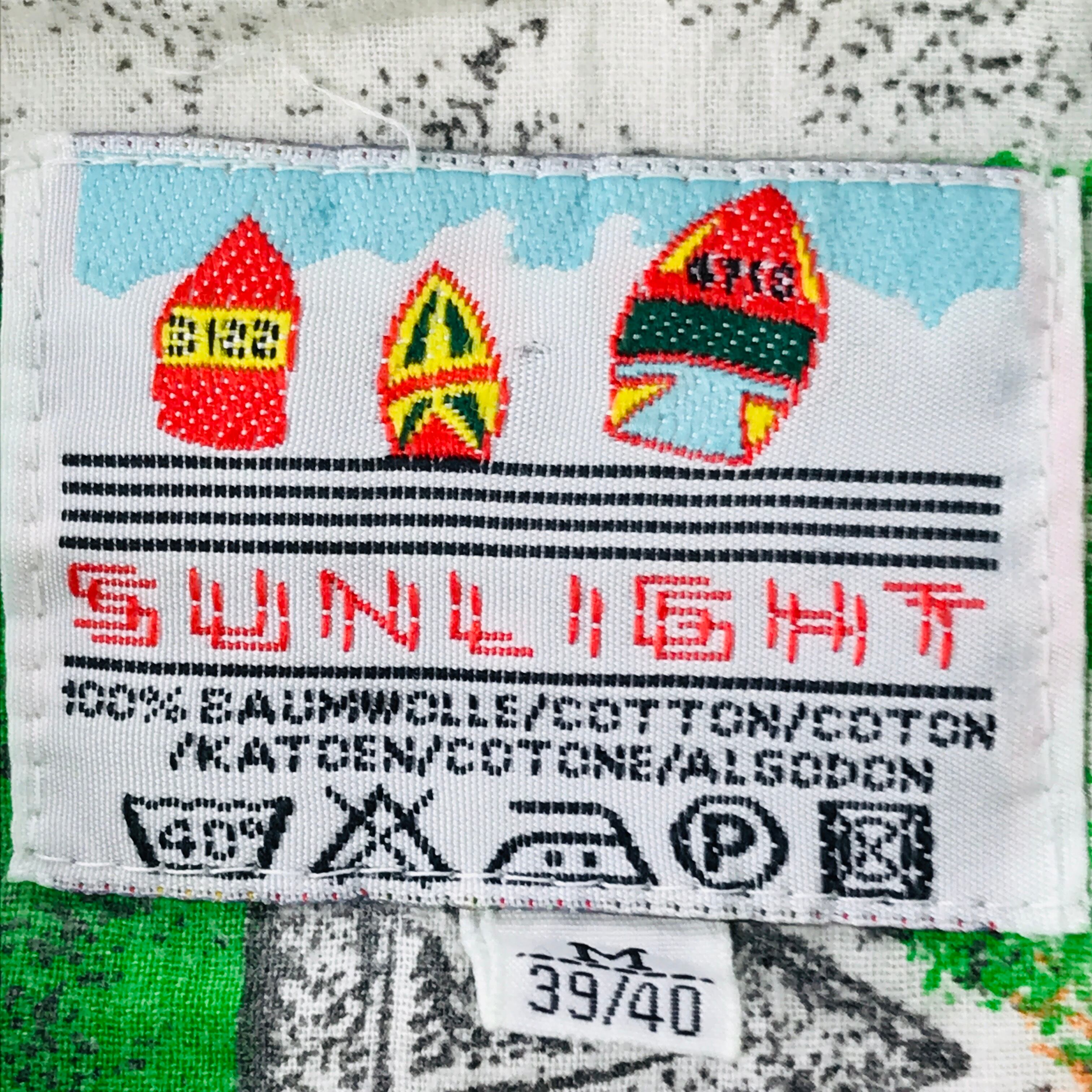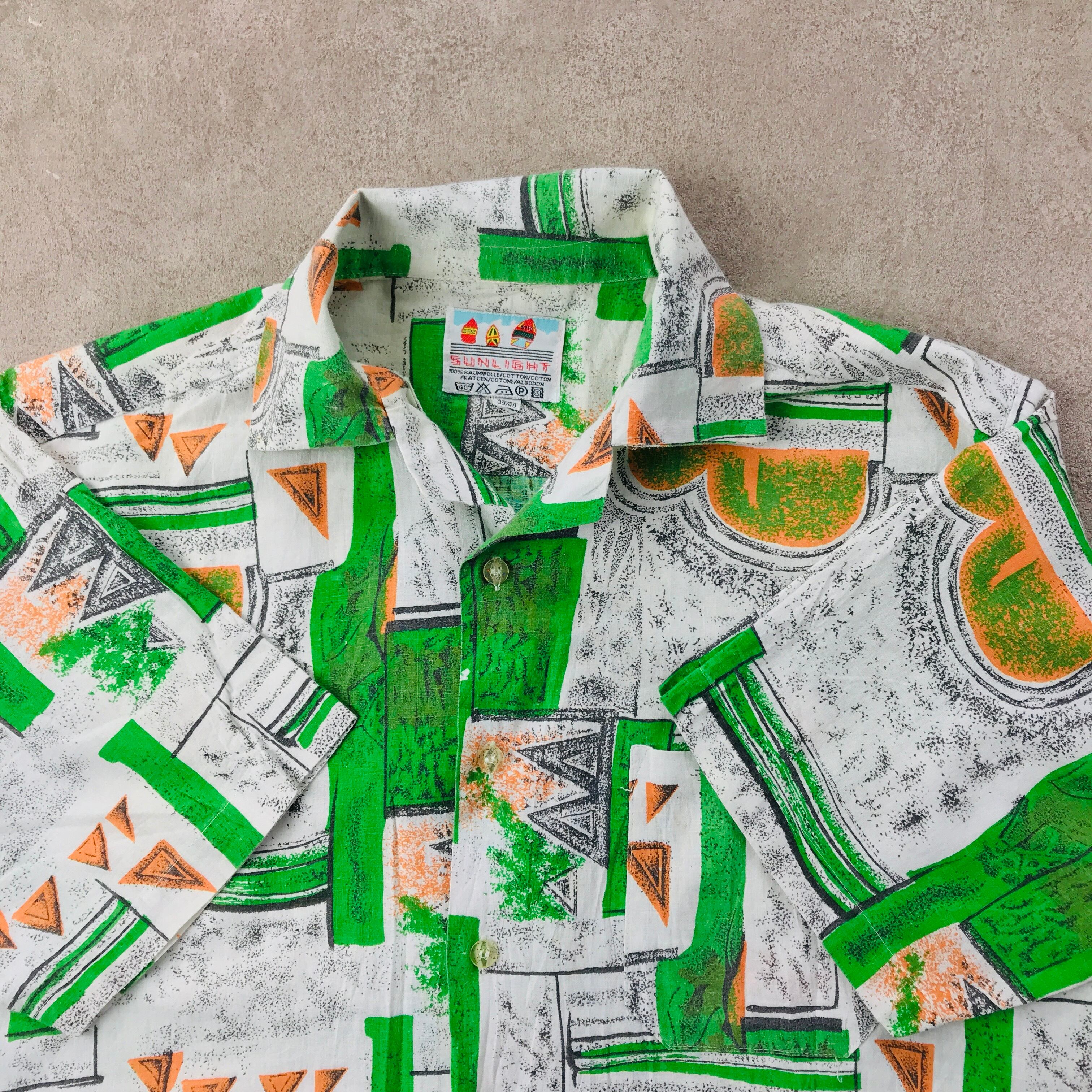 M 80年代 総柄 アロハ ハワイアン風 柄 半袖 うすコットン ヴィンテージ生地調 柄シャツ 淡色