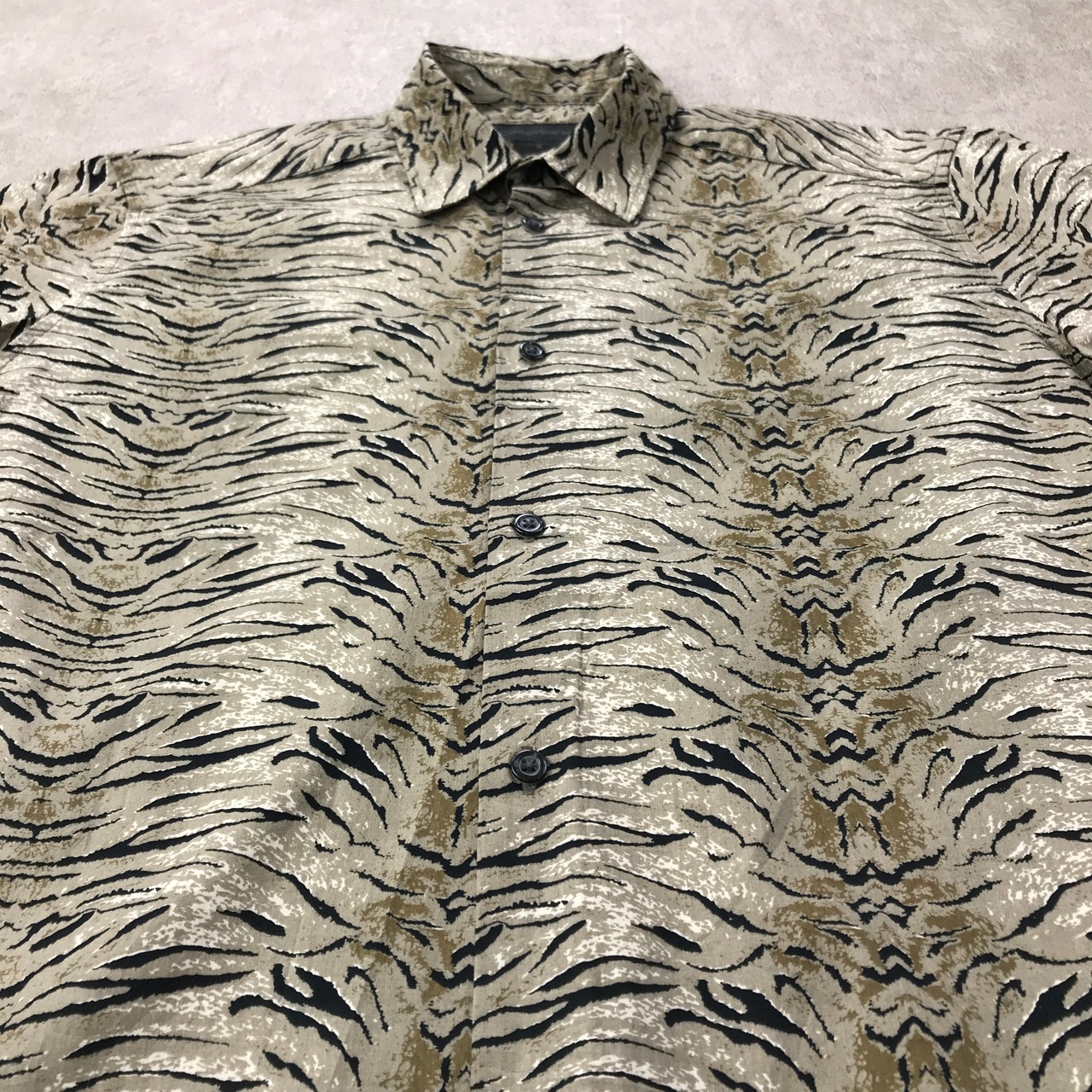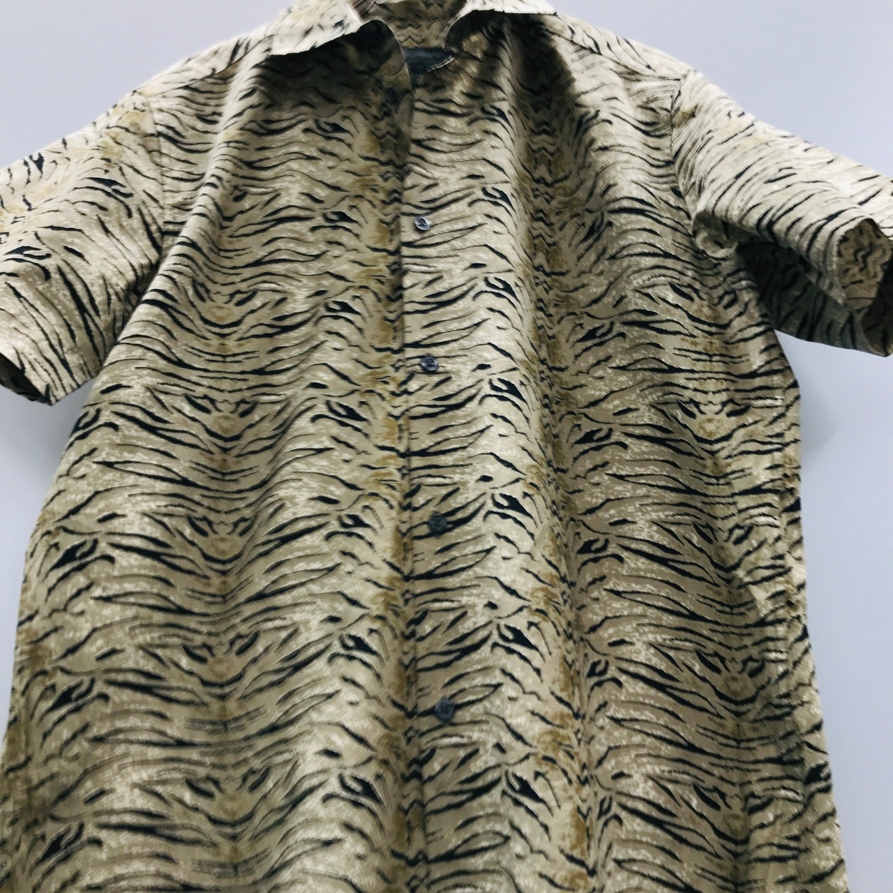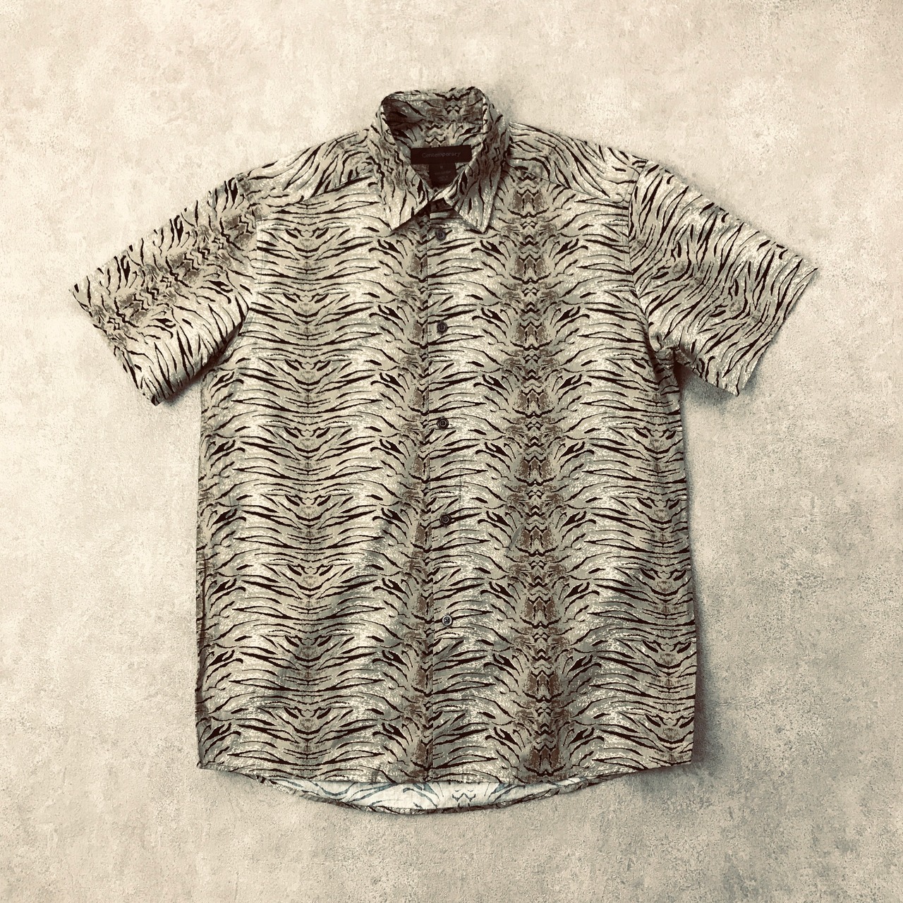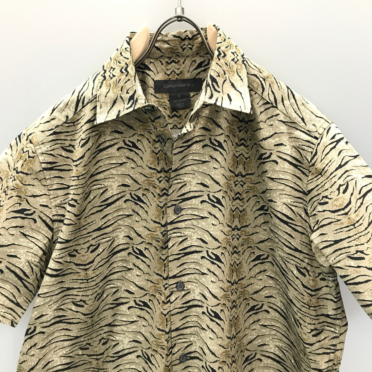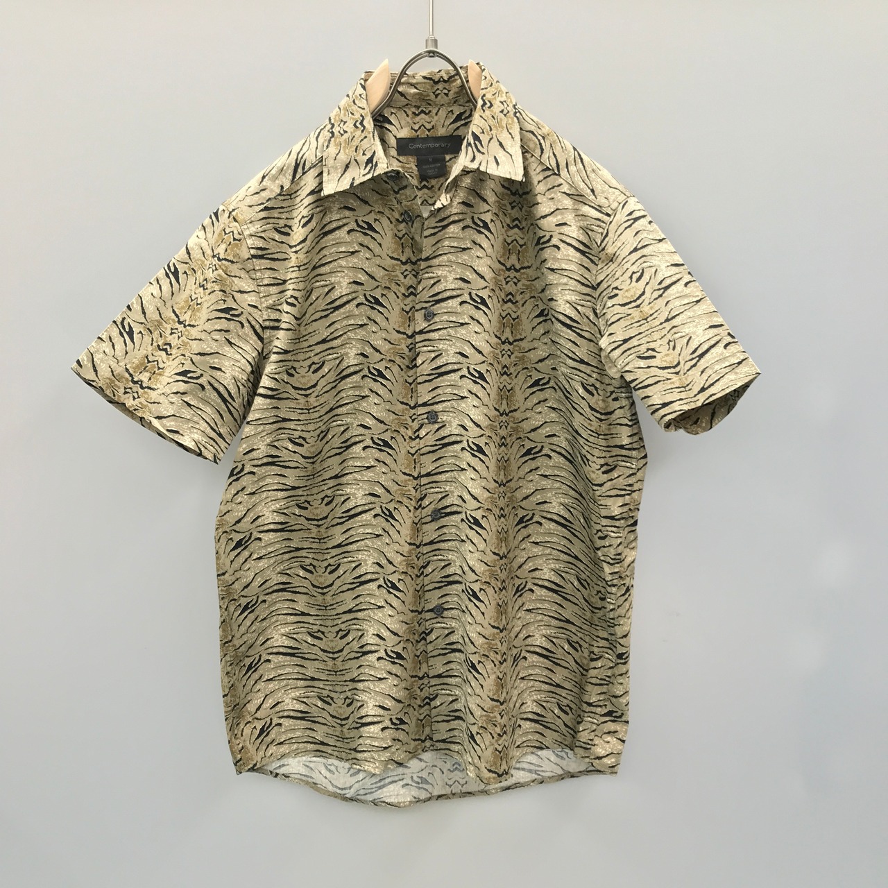 M 80〜90年代 Contemporary デッドストック? コットンシャツ ベージュアニマルパターン柄 ロウブロウ ホットロッド ビンテージ